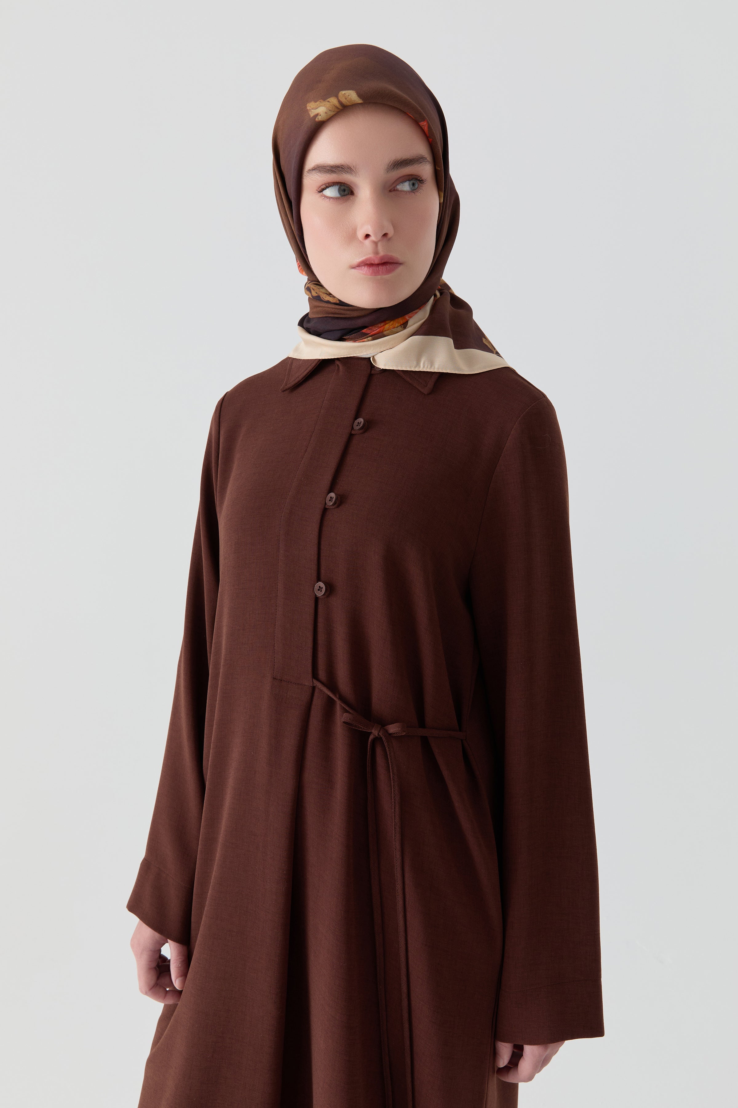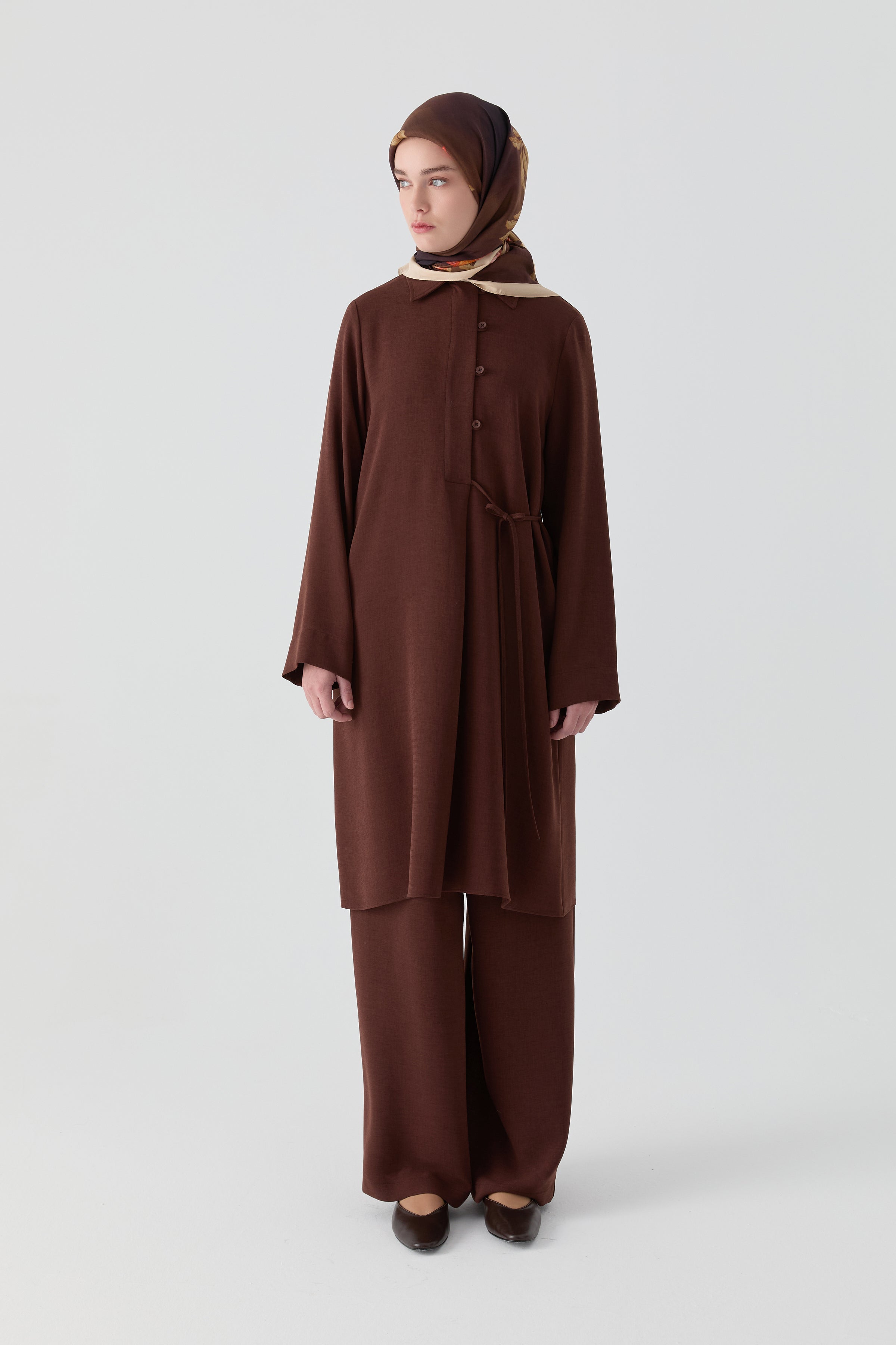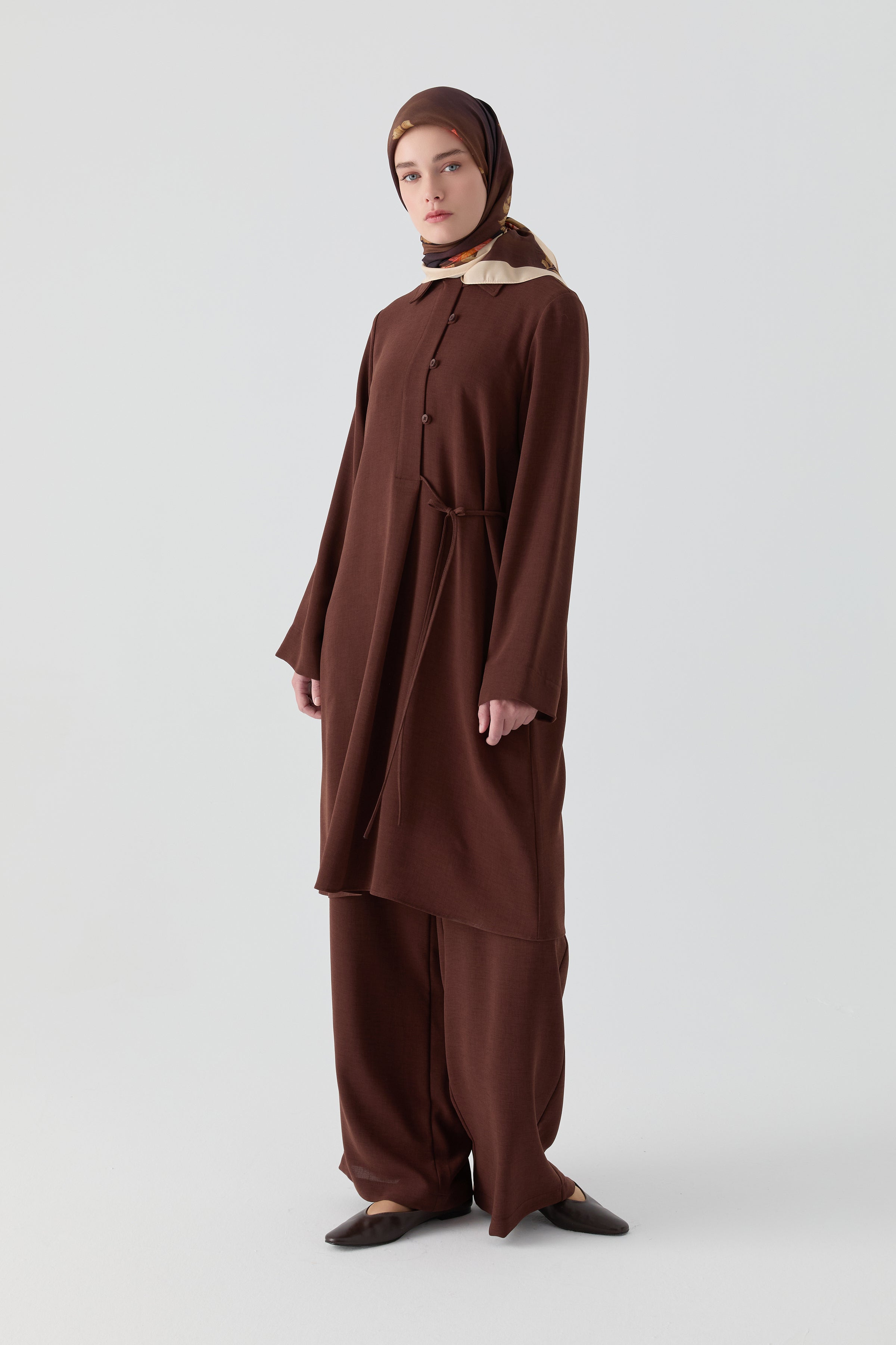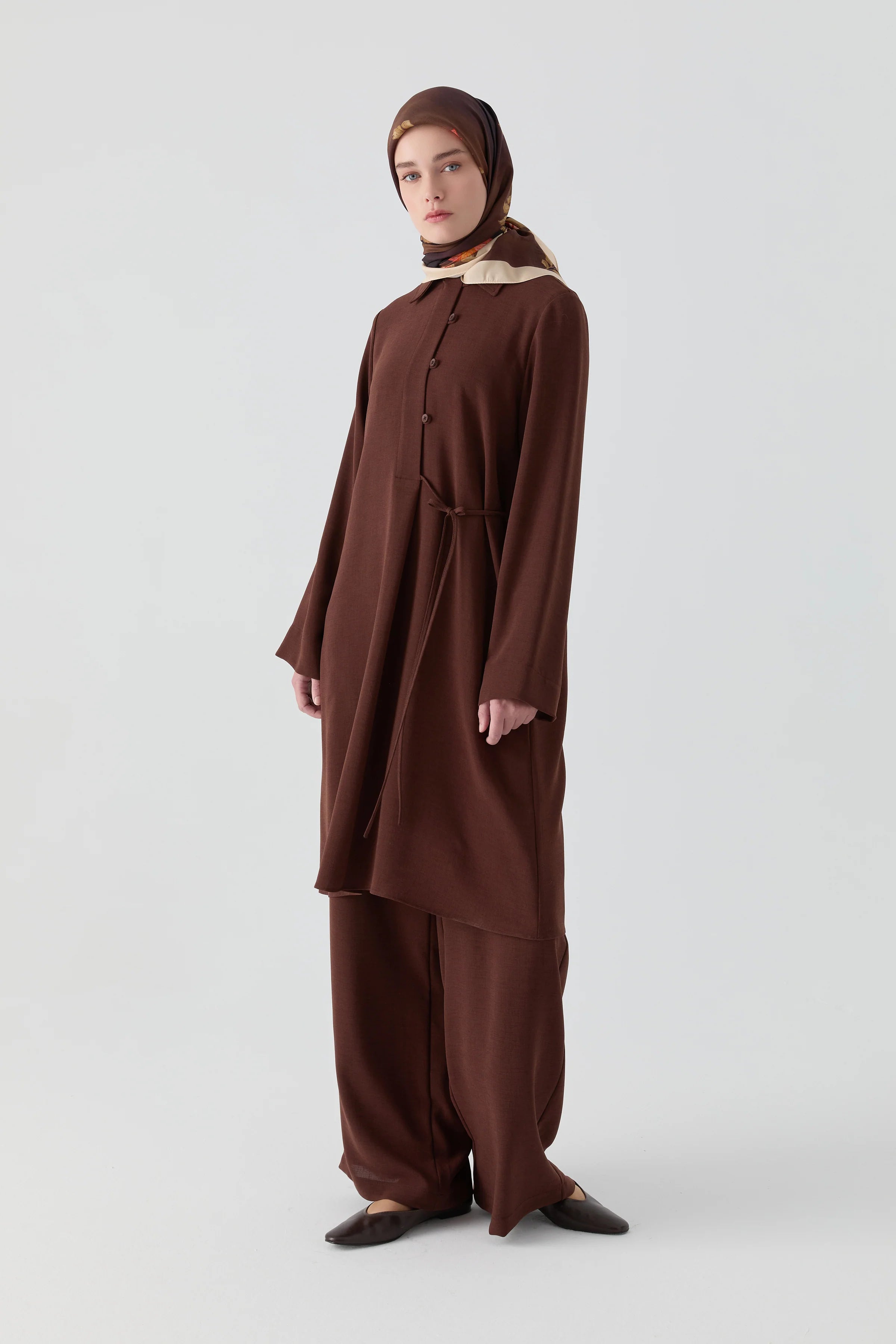 Bağcık Detaylı Tunik Pantolon Takım - Toprak