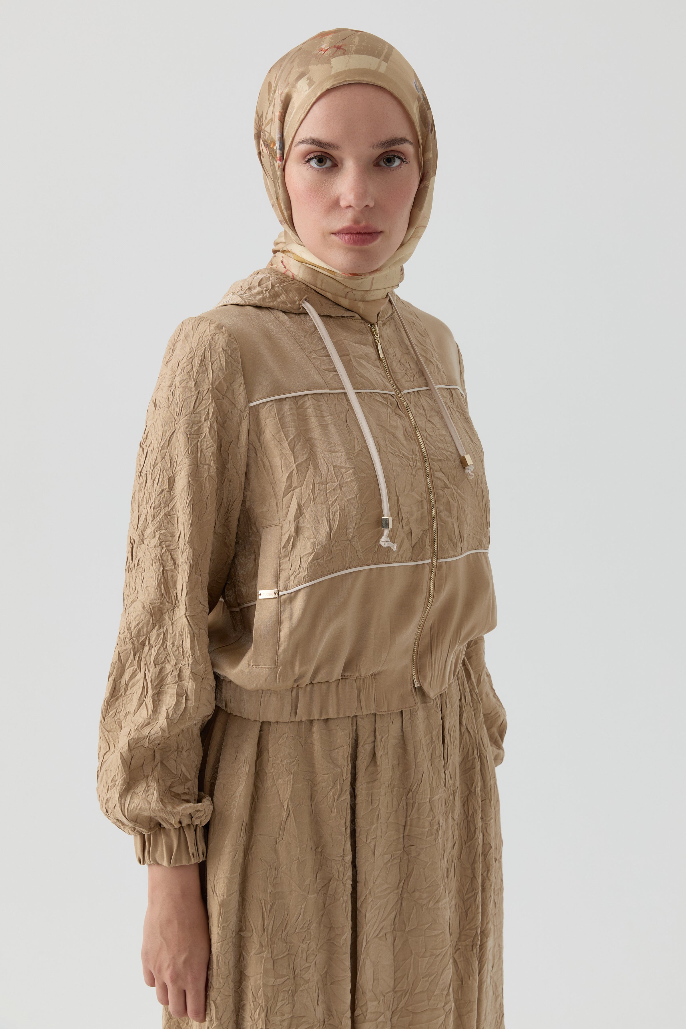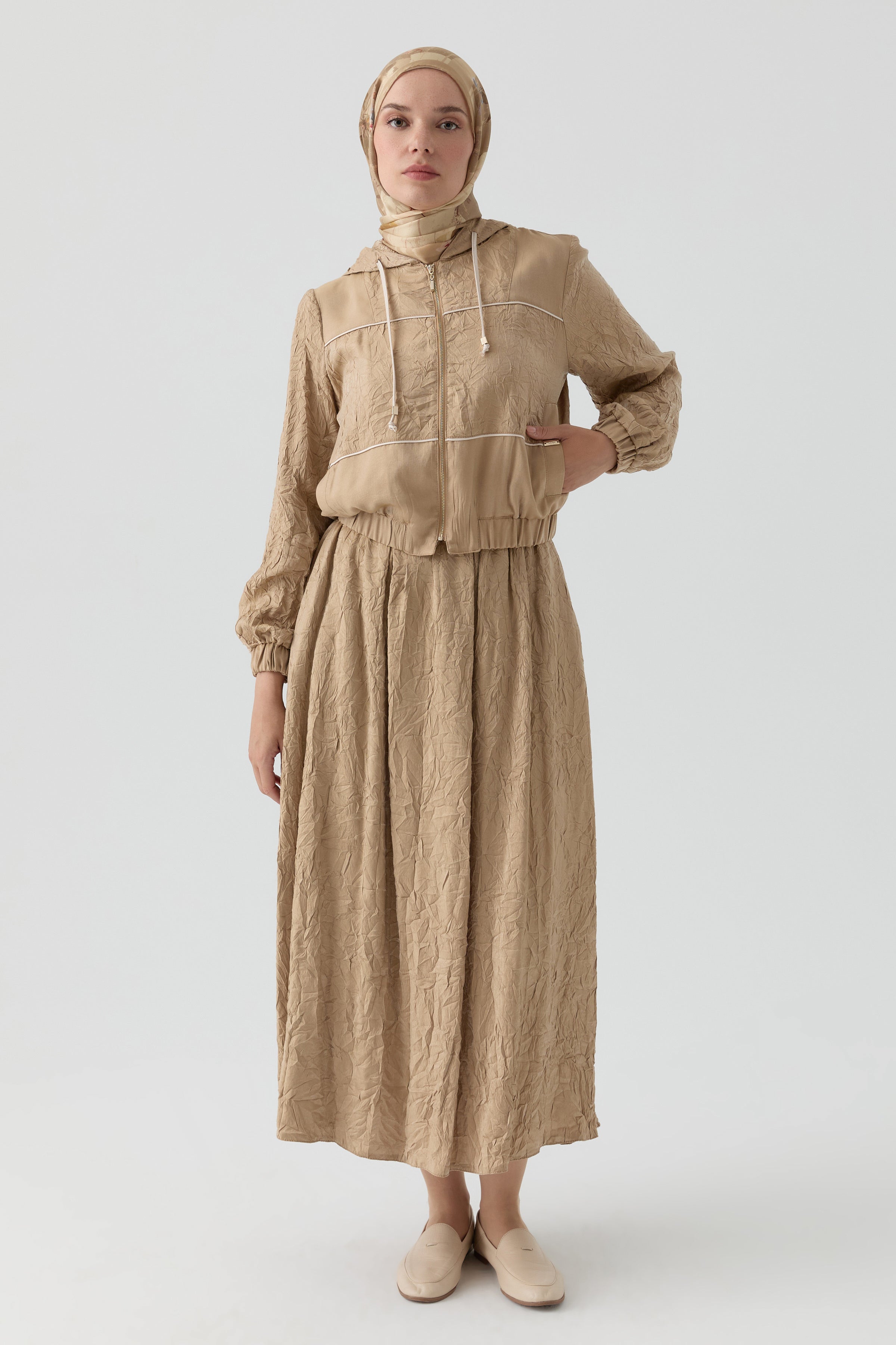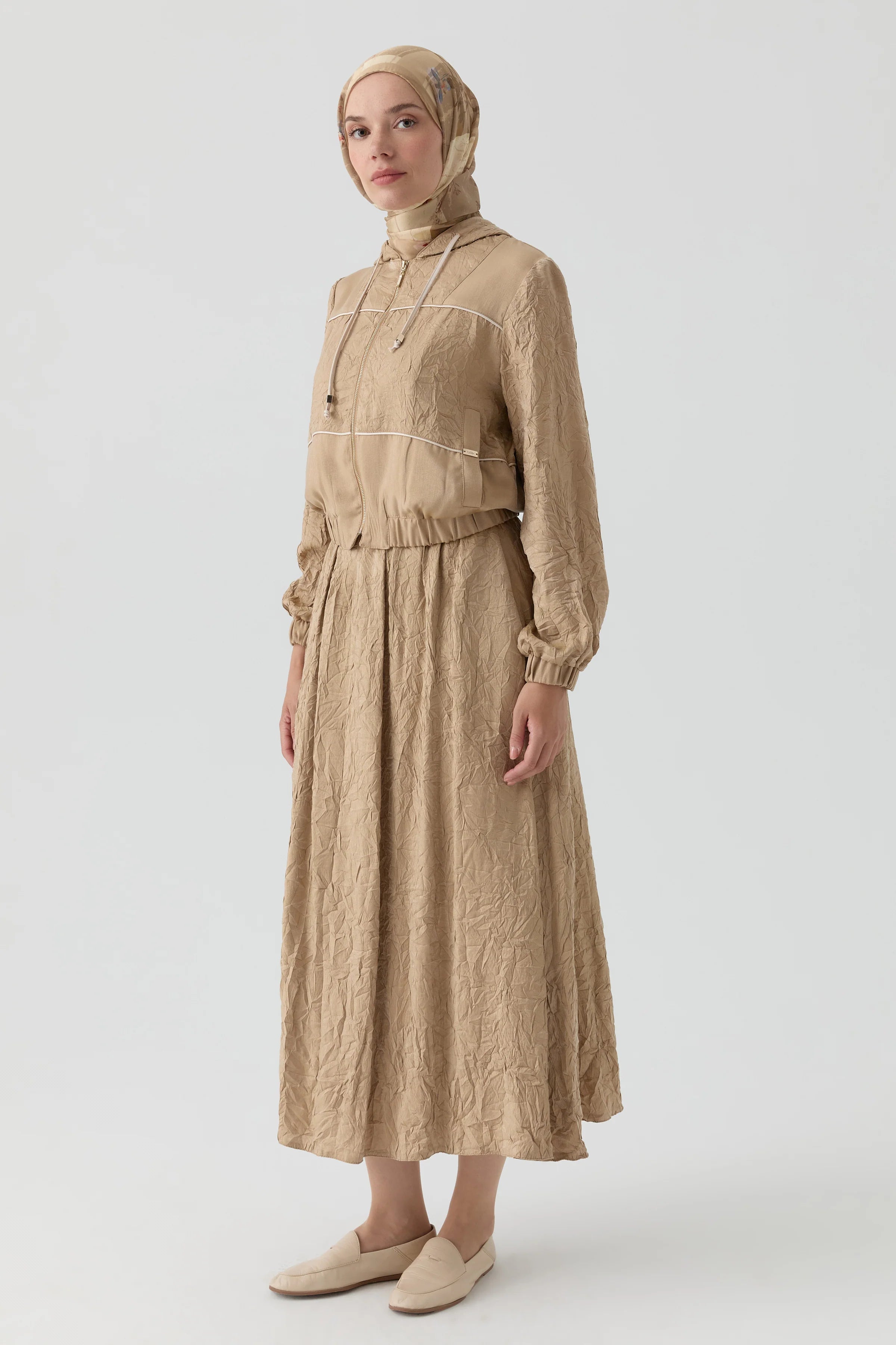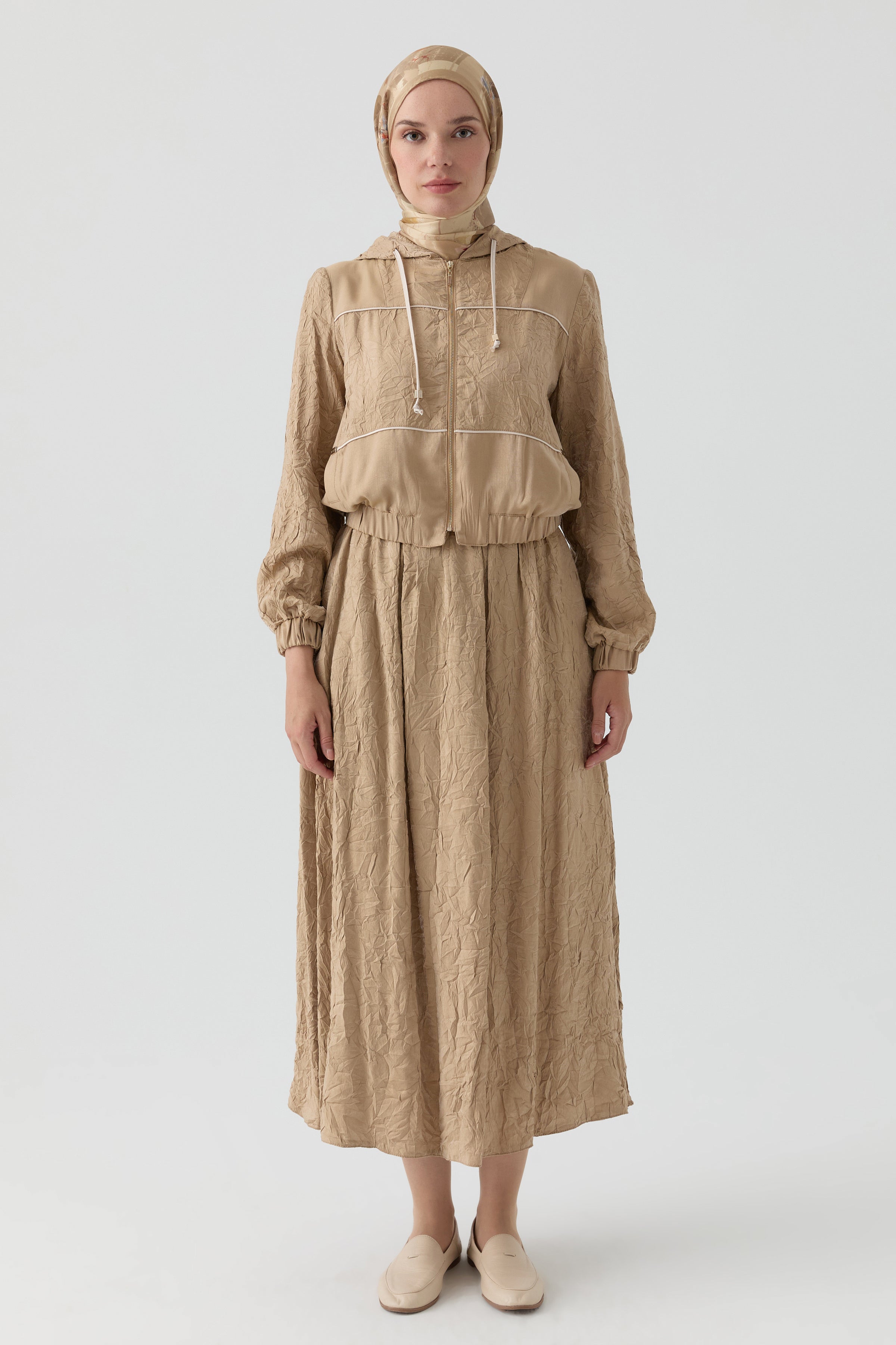 Trend bomber ceket tasarımıyla öne çıkan bu takım, rahat kesimi ve modern çizgileriyle şehir stiline dinamizm katıyor. Hem günlük kullanımlarda hem de şık davetlerde tercih edilebilecek çok yönlü tasarımı, konforu ve şıklığı bir arada sunar.