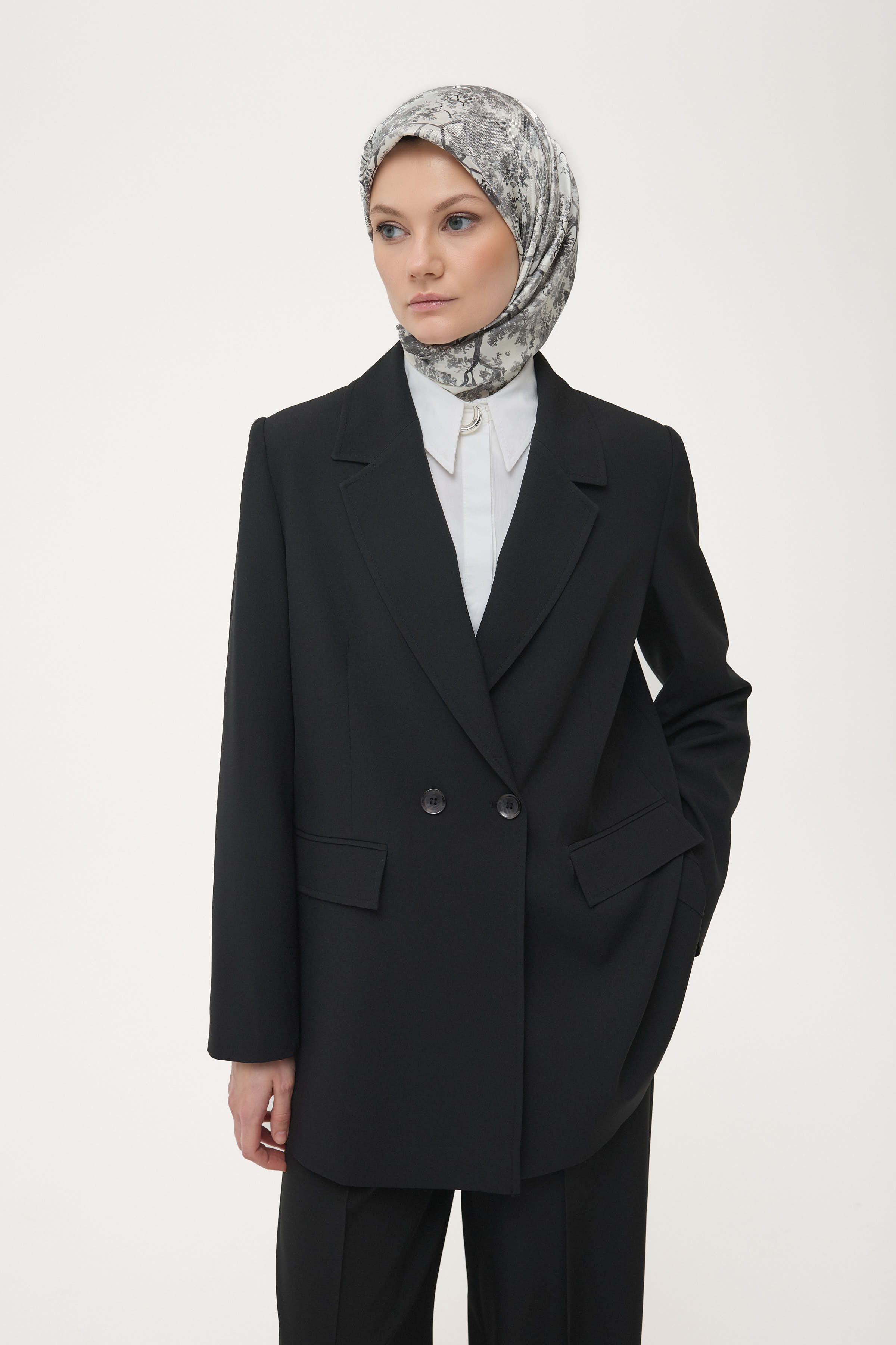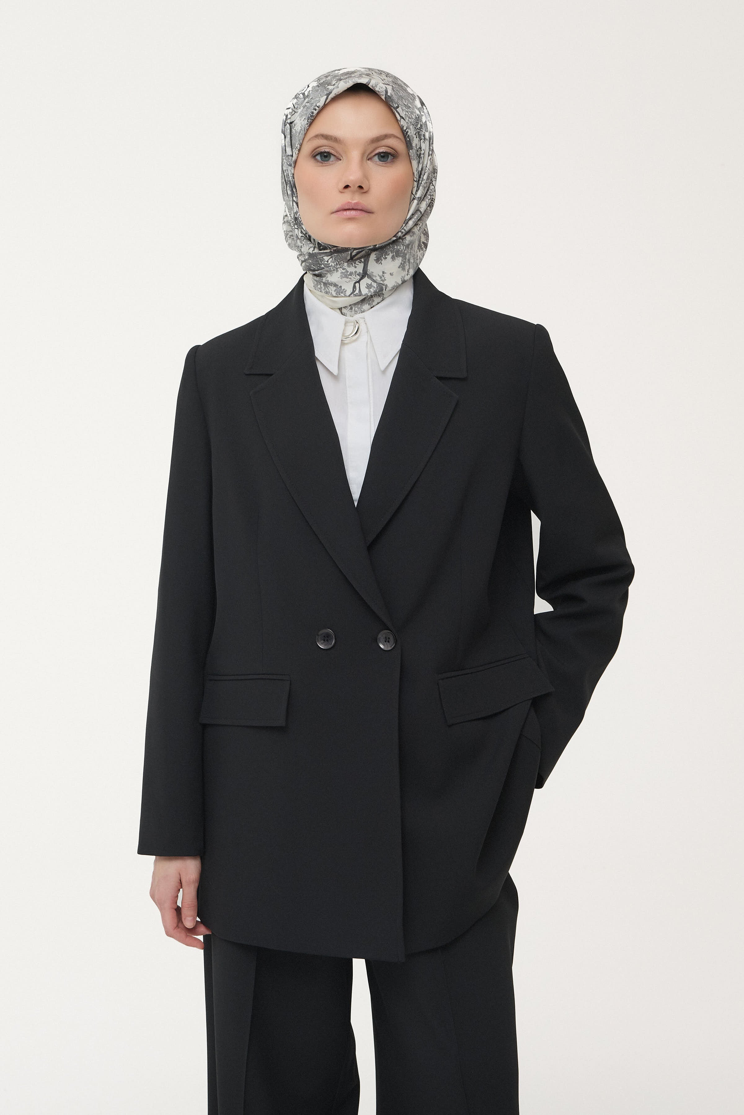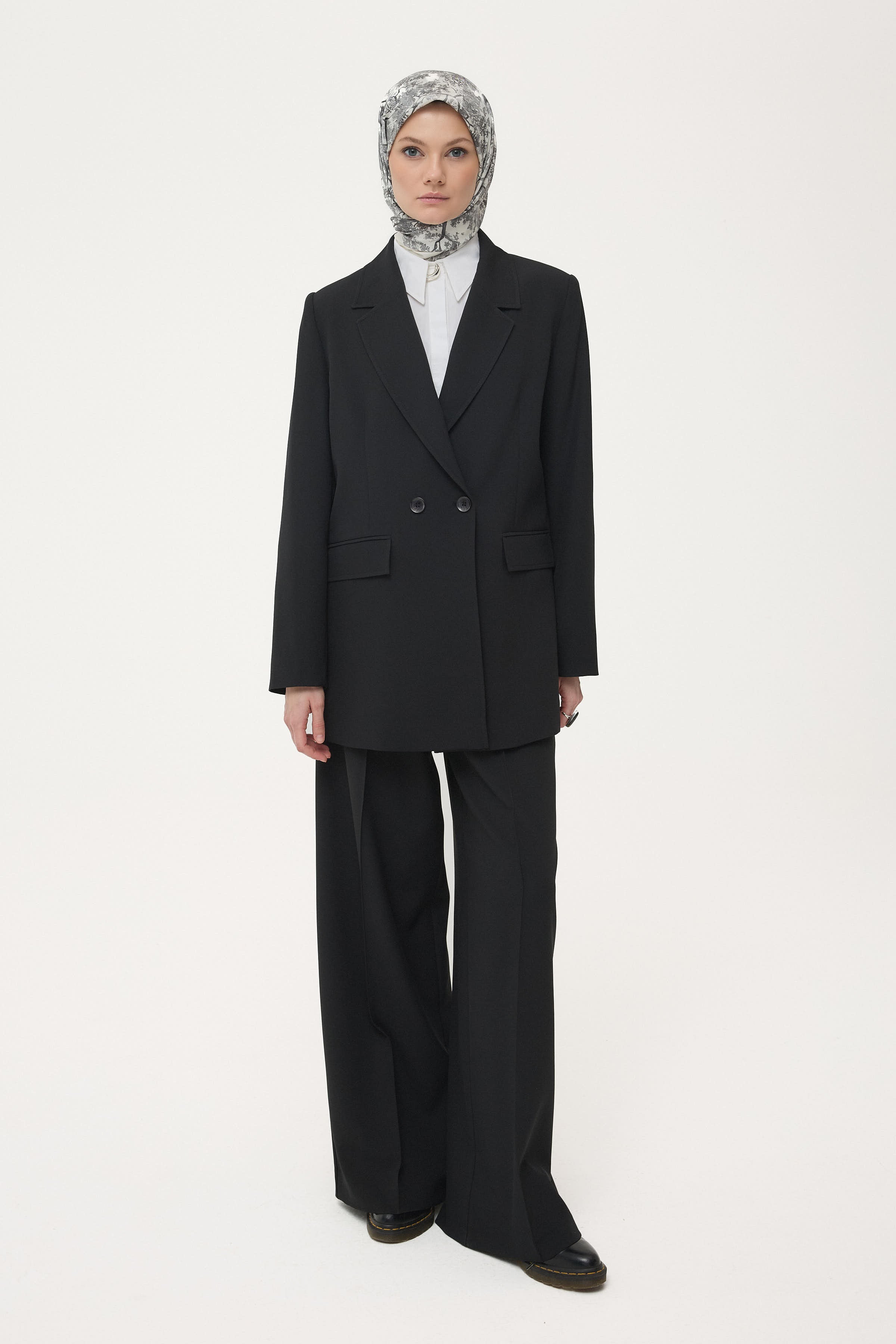 Cep Detaylı Ceket Pantolon Takım - Siyah