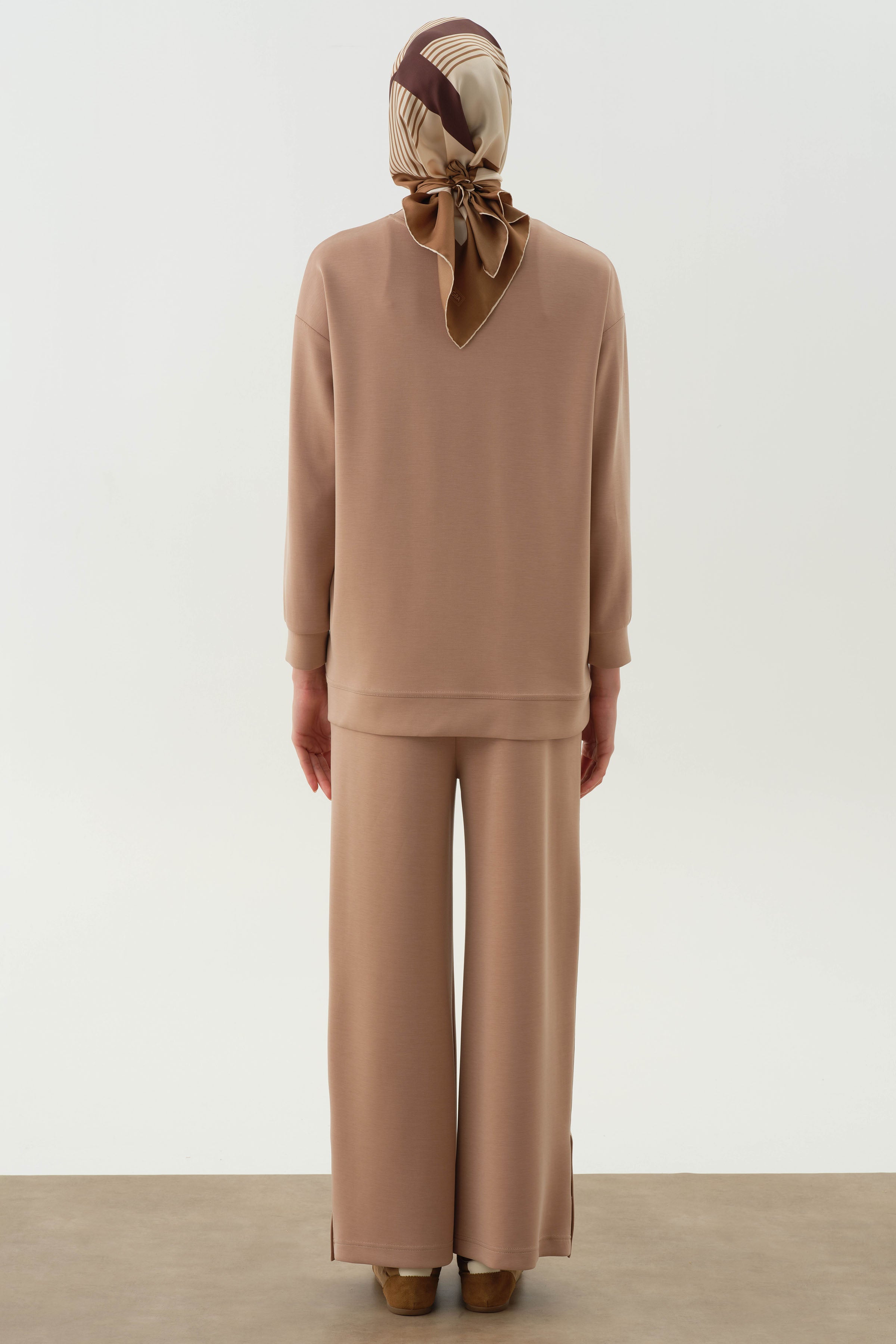 Çıtçıt Yırtmaç Detaylı Örme Tunik - Fındık