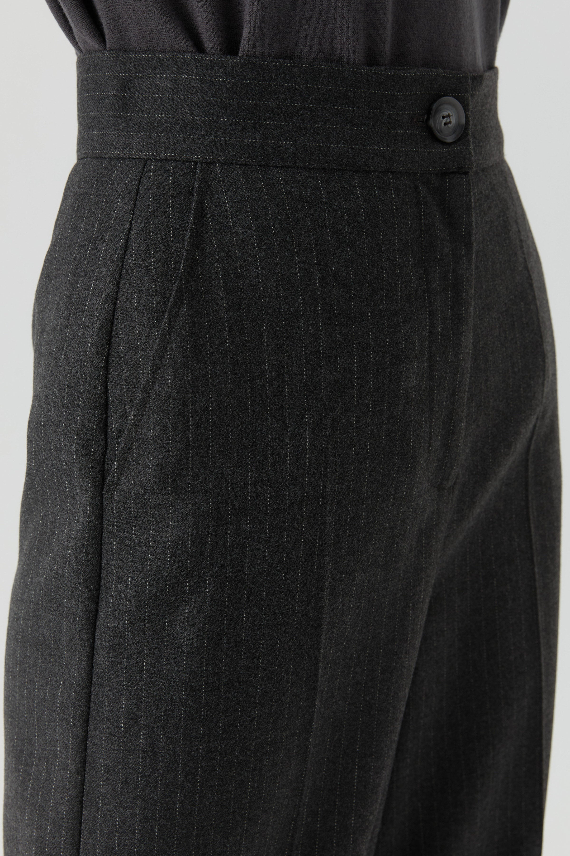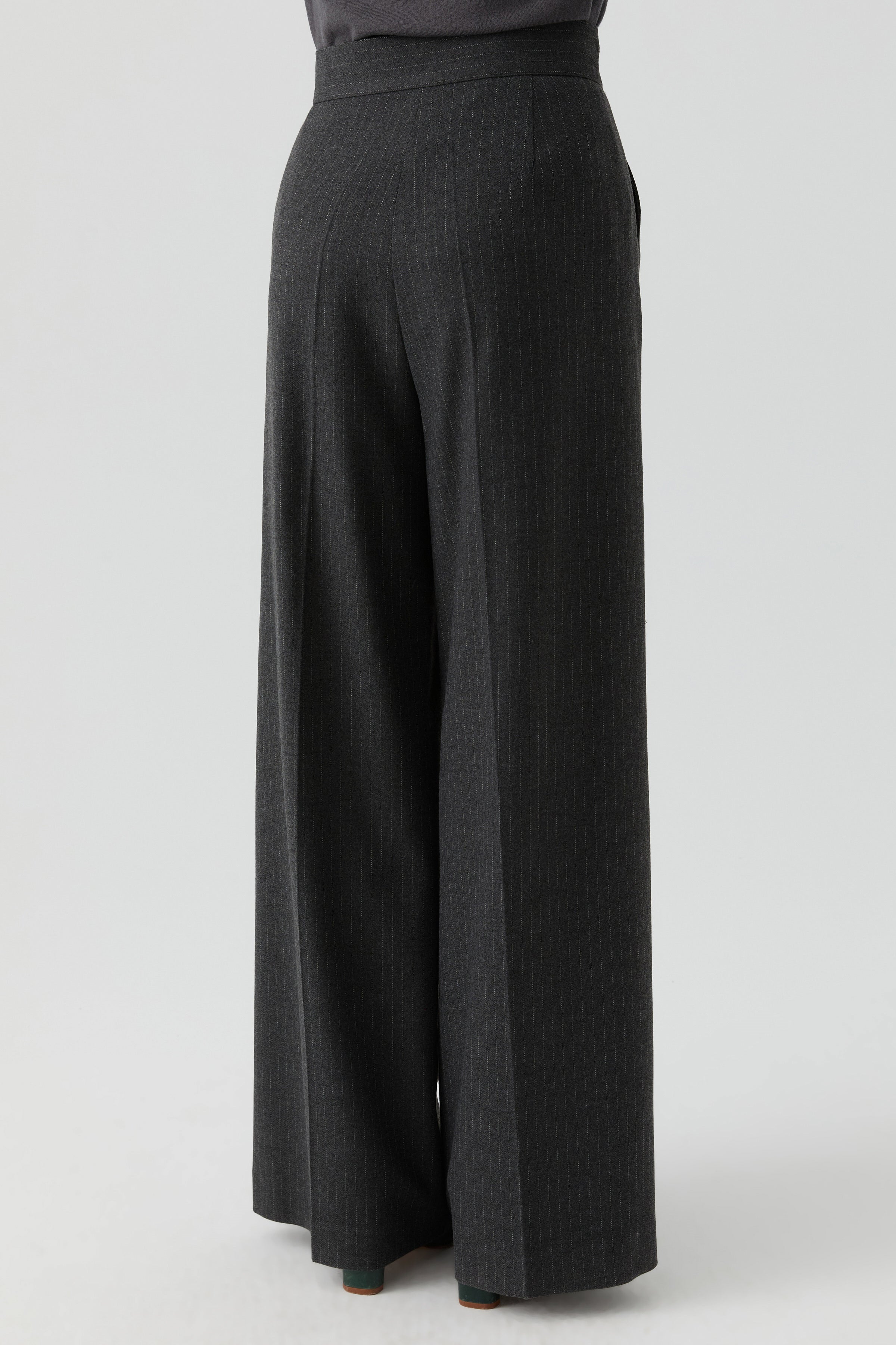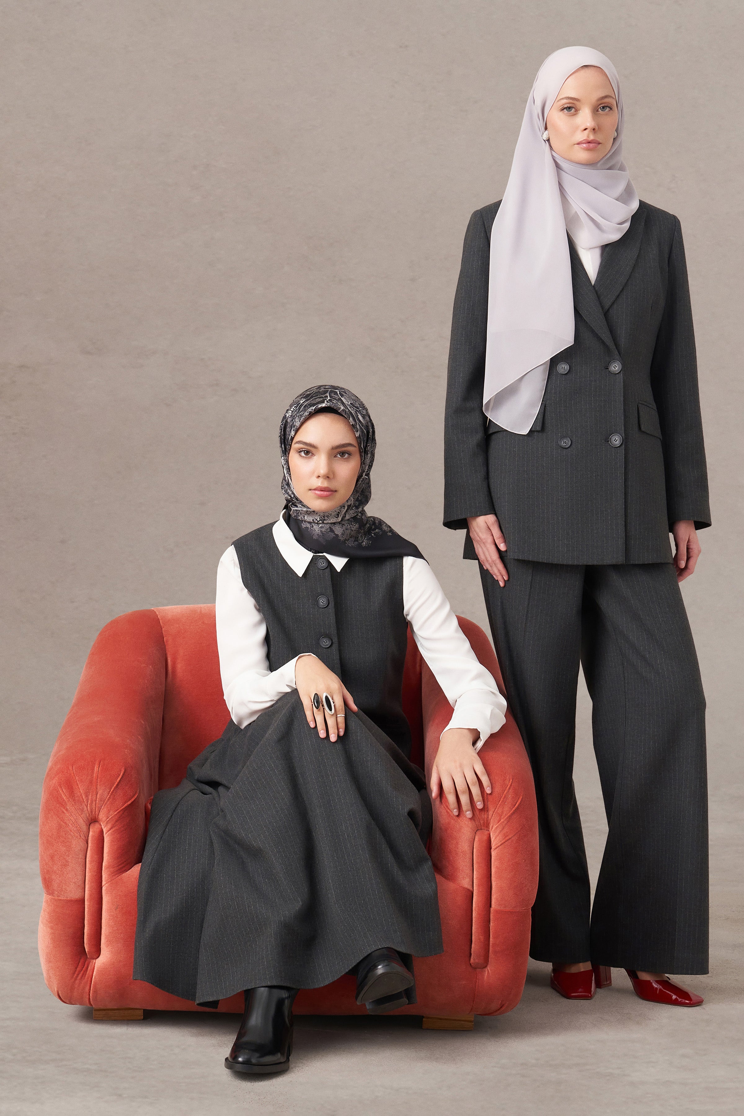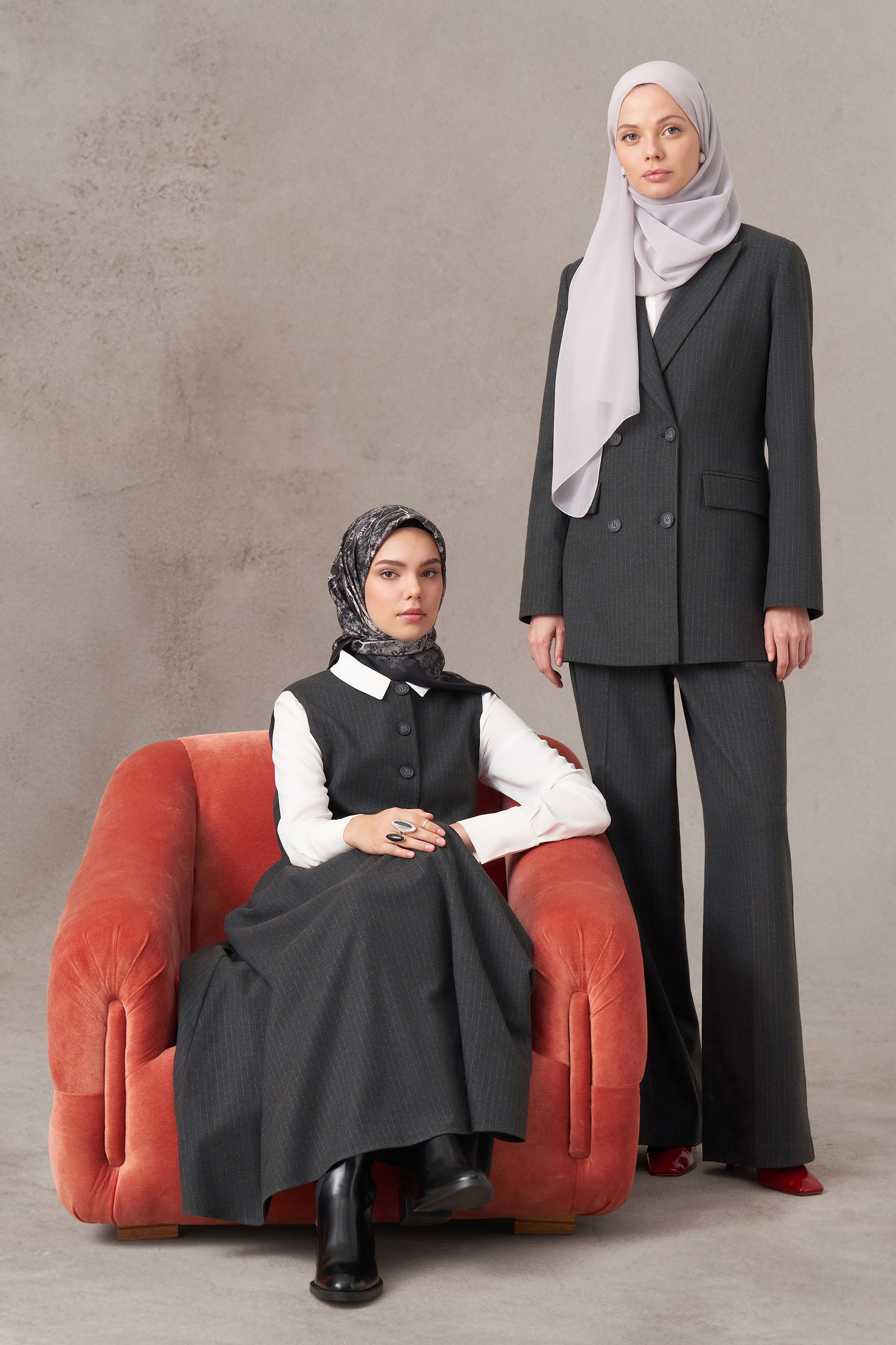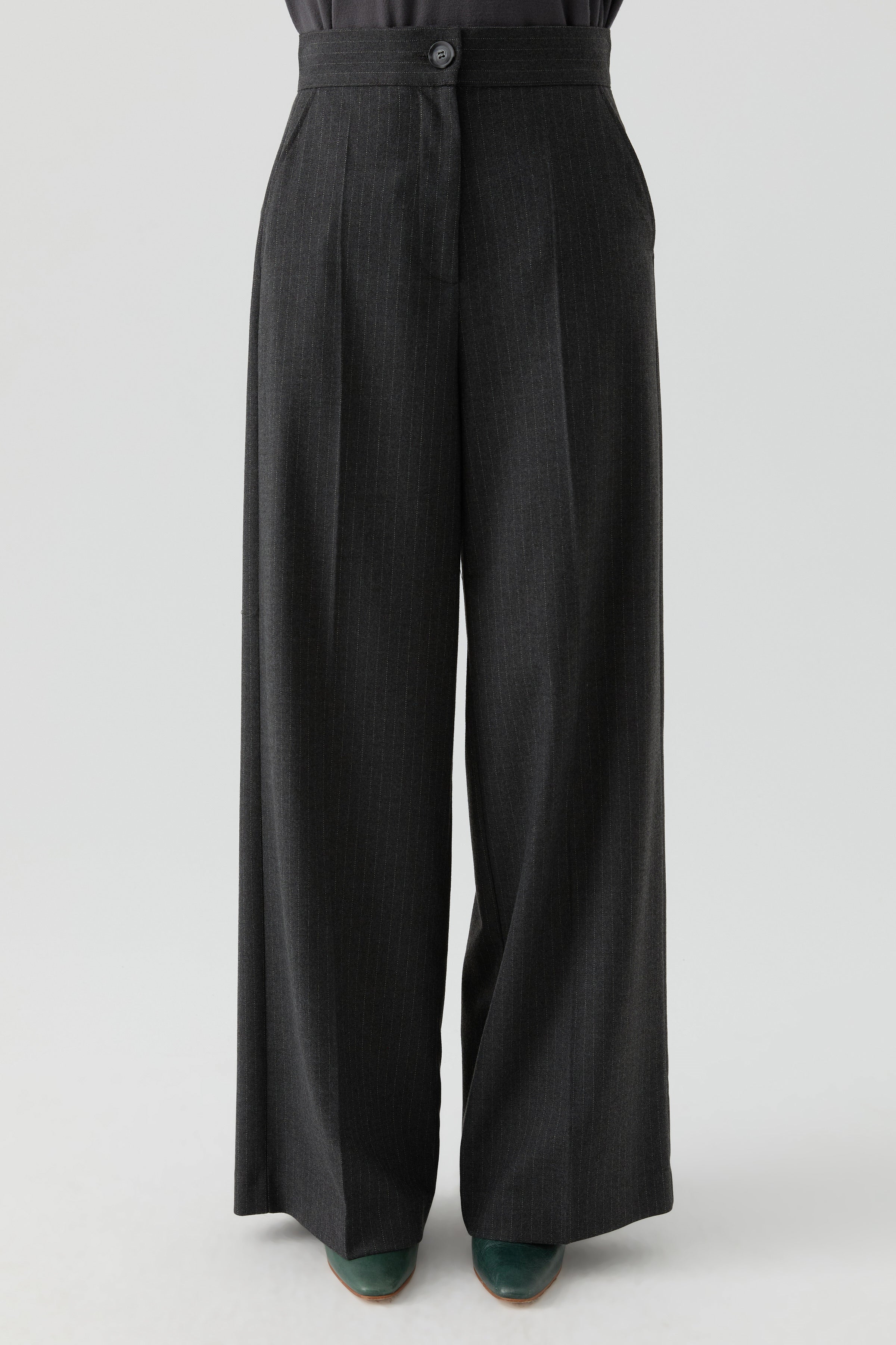 Çizgi Desenli Pantolon, ince çizgi detayları ve şık kesimiyle stilinize sofistike bir hava katıyor. Günlük kombinlerden ofis stiline kadar her anınıza uyum sağlayan çok yönlü bir parça.