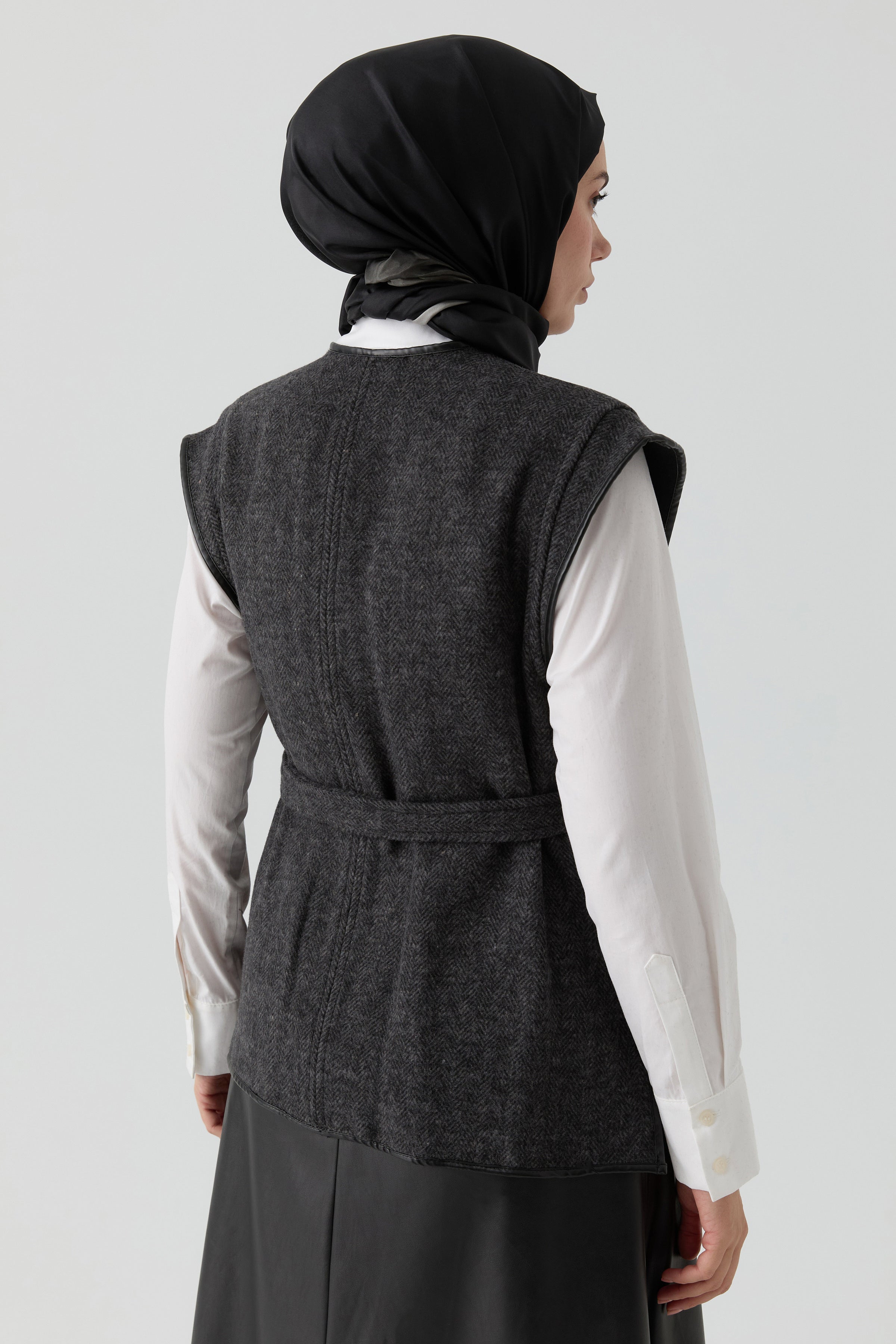 Deri Biye Detaylı Cepli Yelek - Antrasit