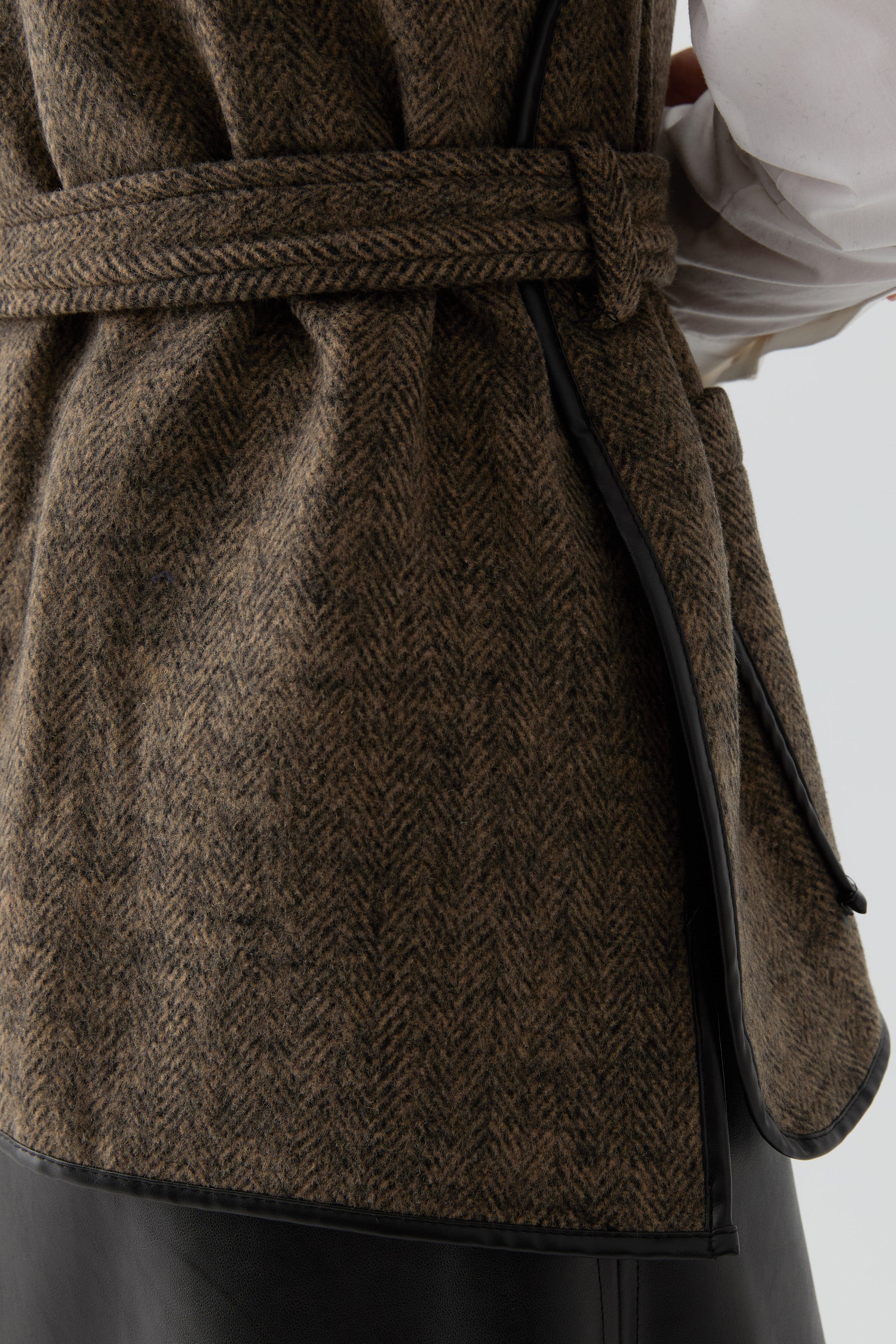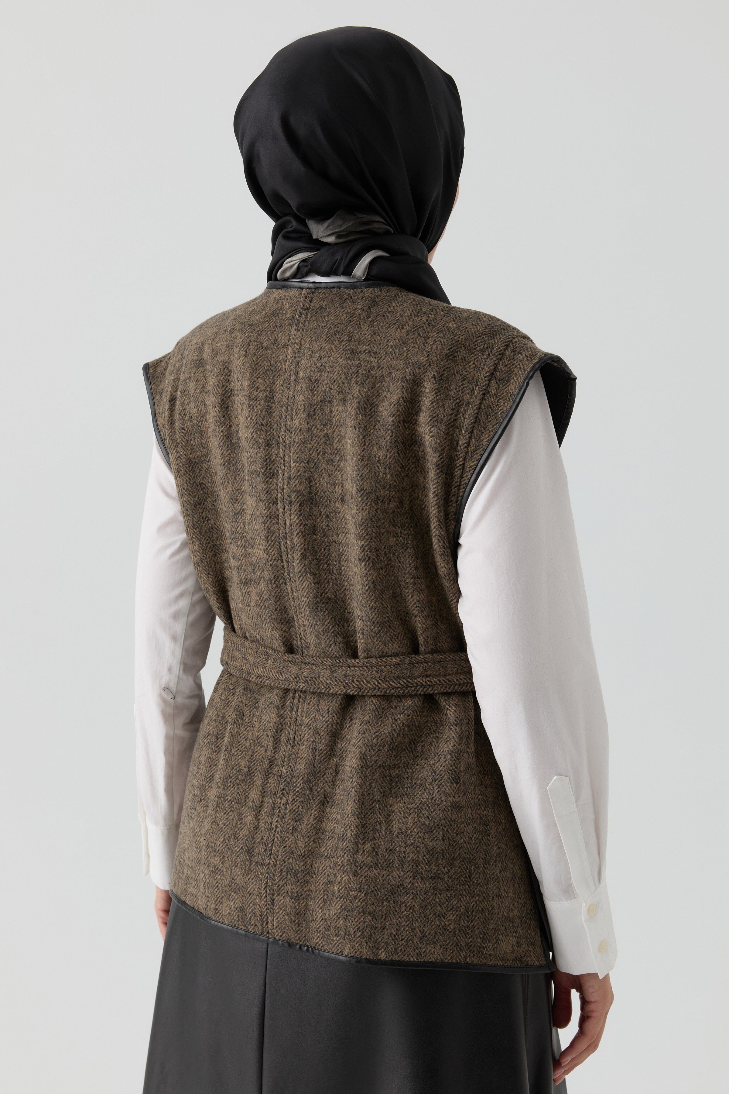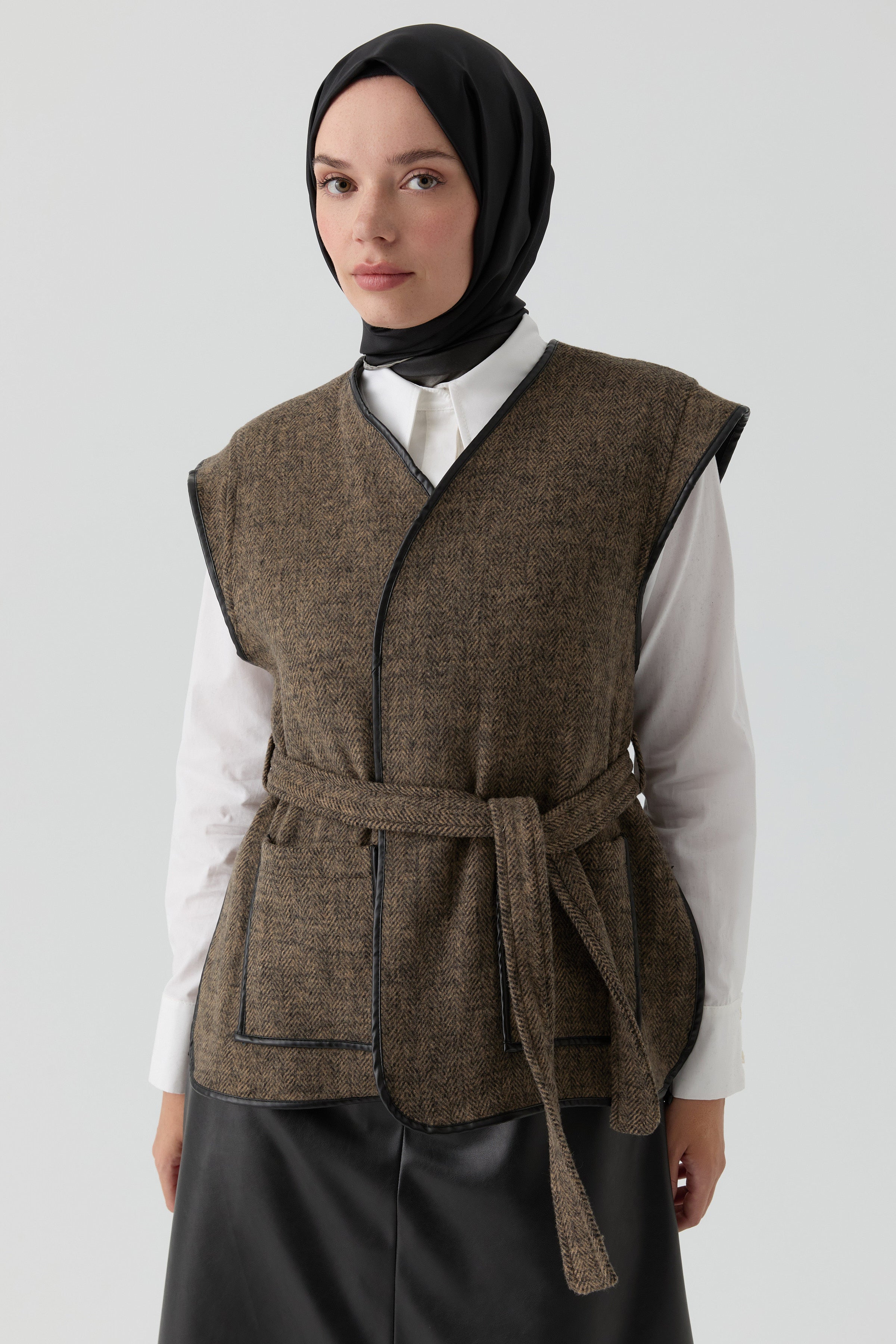Modern çizgileriyle öne çıkan Deri Biye Detaylı Cepli Yelek, işlevselliği şıklıkla buluşturan bir tasarıma sahip. Minimal görünümünü güçlendiren deri biye detayları, parçaya sofistike bir dokunuş katarken, cepleriyle pratiklik sunuyor.