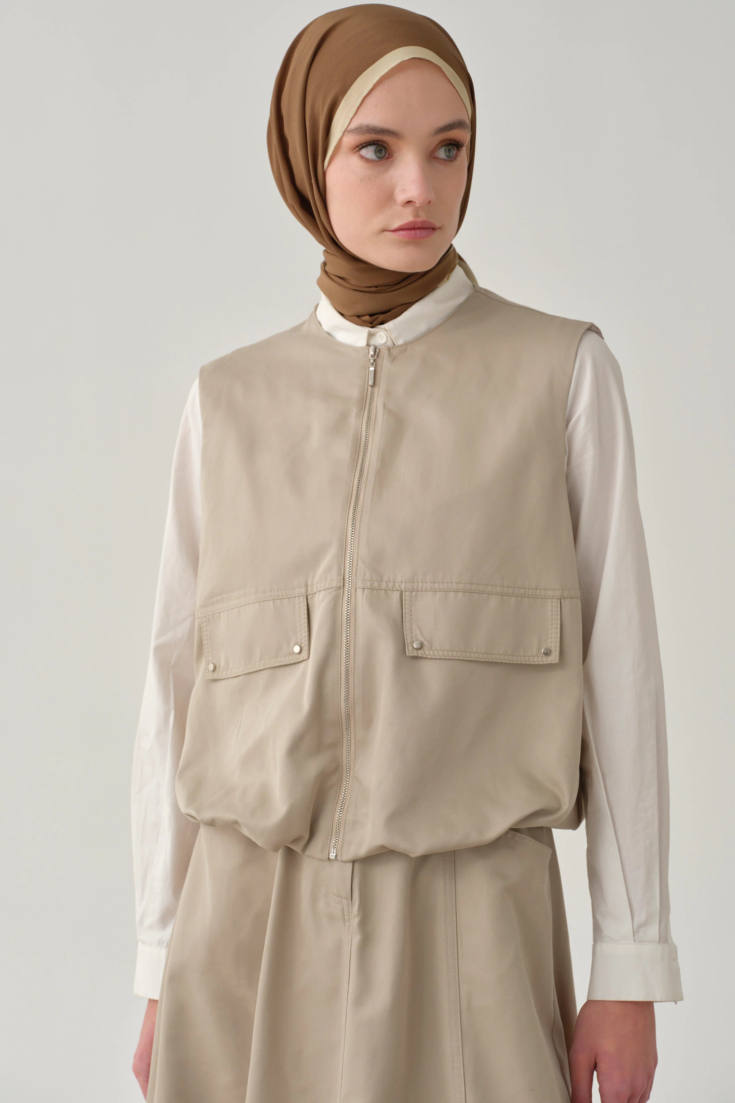 Hafif dolgulu yapısı sayesinde sıcak tutarken, fermuar kapaması ile pratik bir kullanım sağlıyor. Geniş kesimiyle hareket özgürlüğü sunan bu yelek, günlük kombinlerinize dinamik bir dokunuş katıyor.