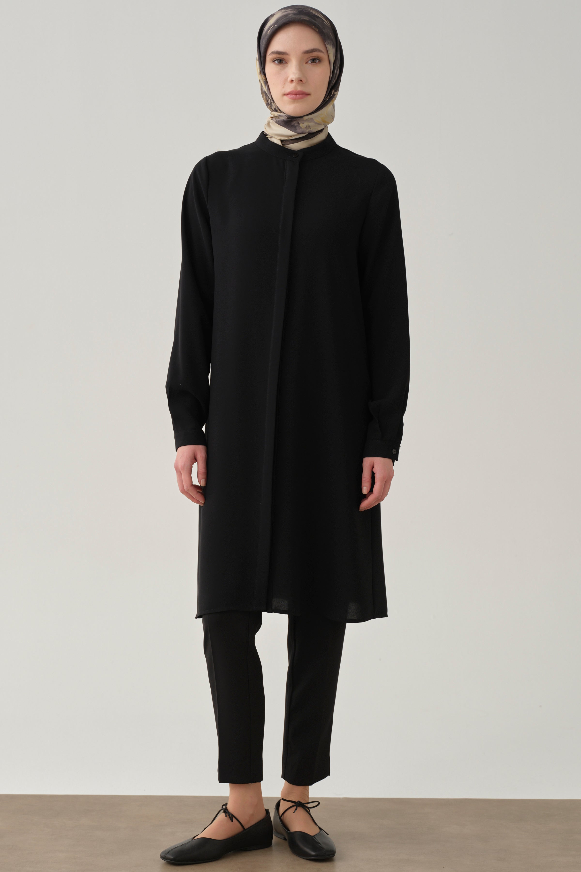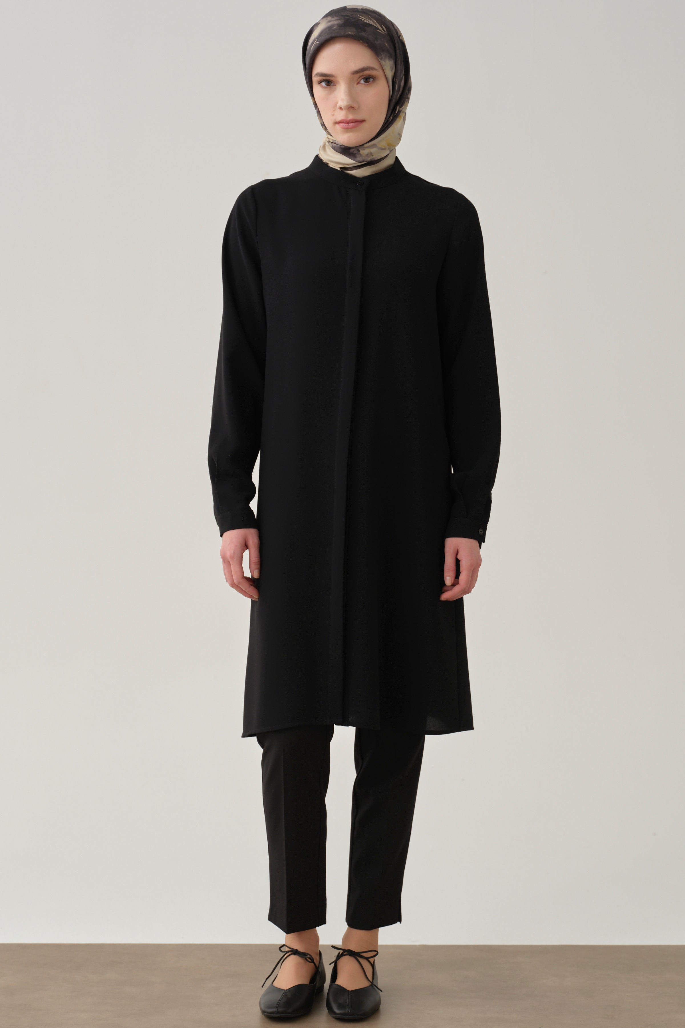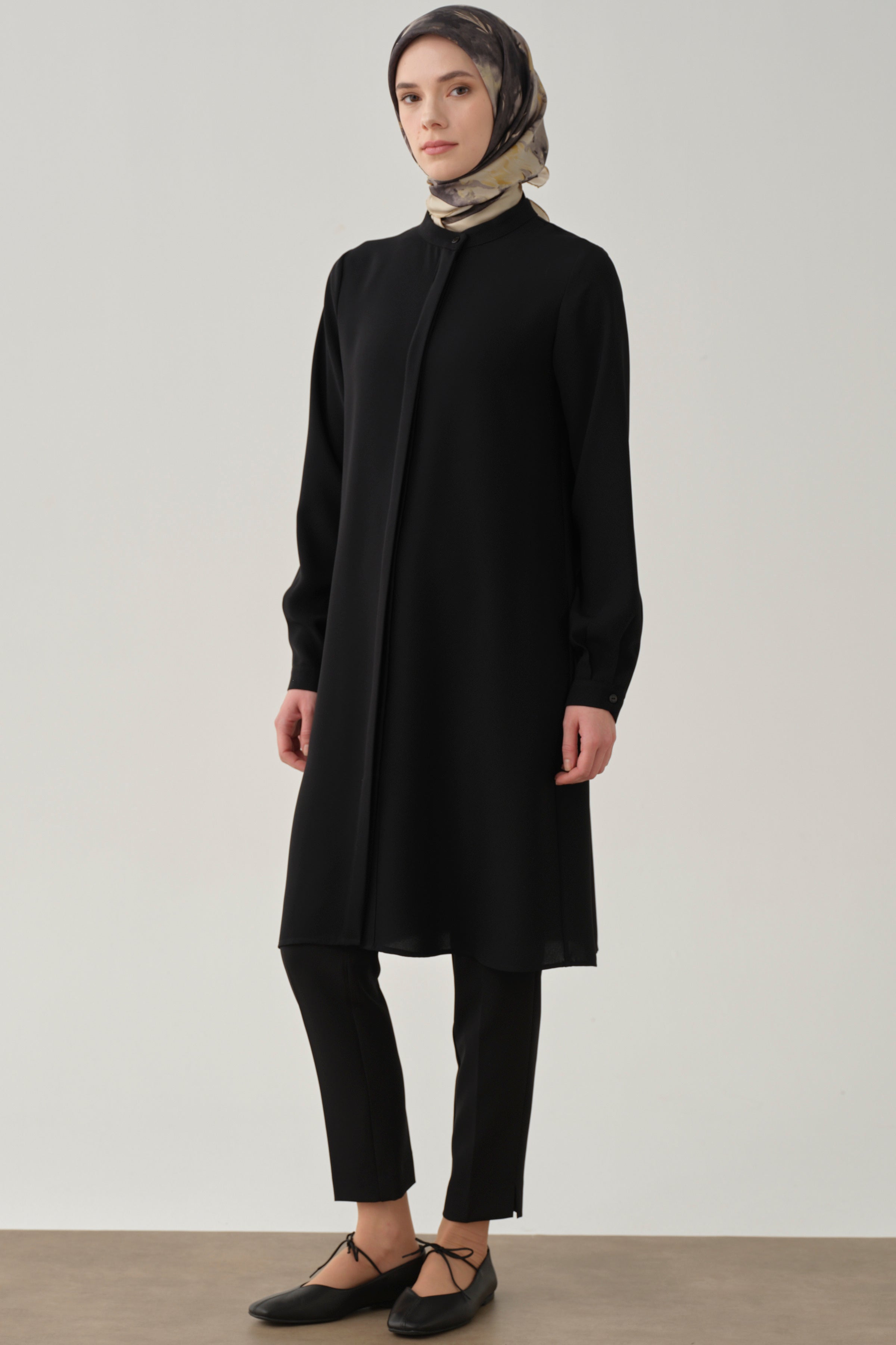 Hakim Yaka Gizli Patlı Tunik - Siyah
