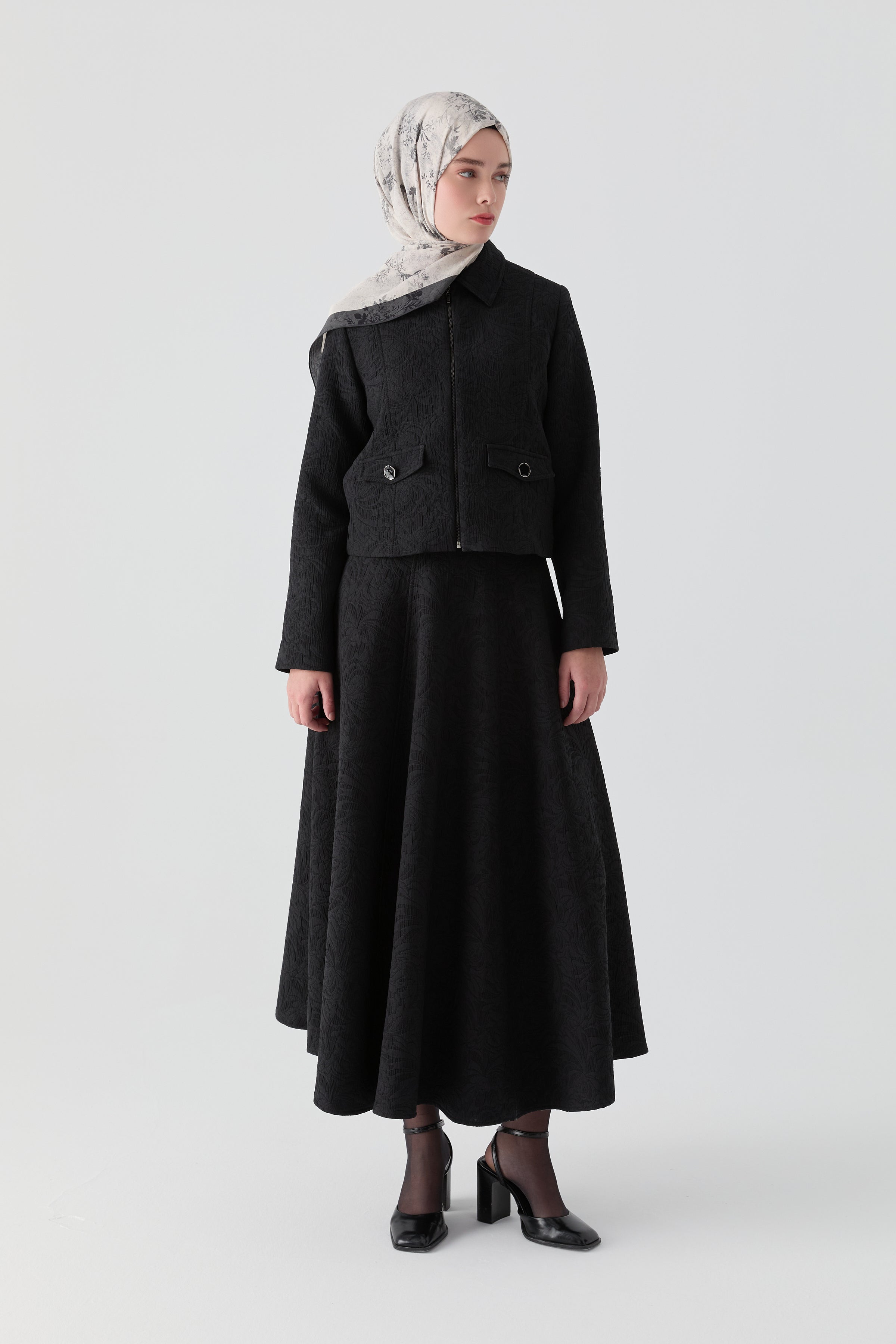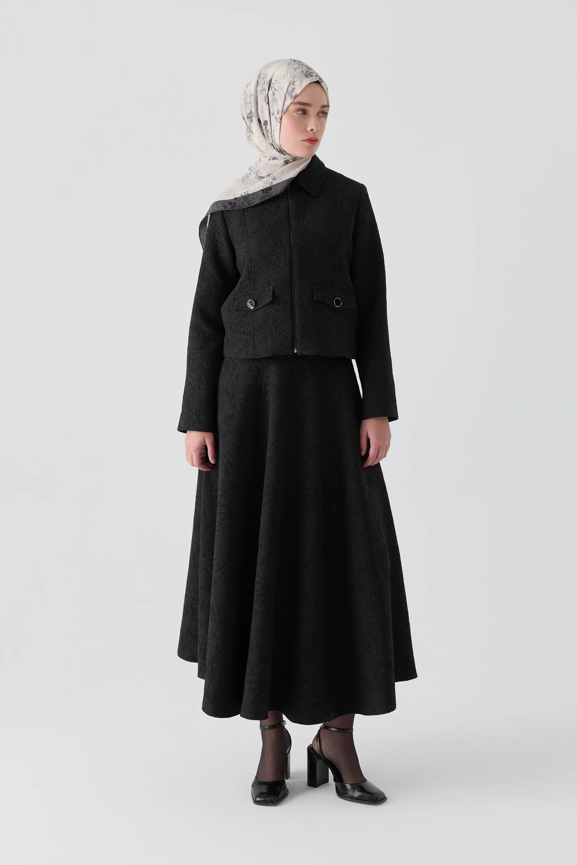 Kapitone Ceket Etek Takım - Siyah
