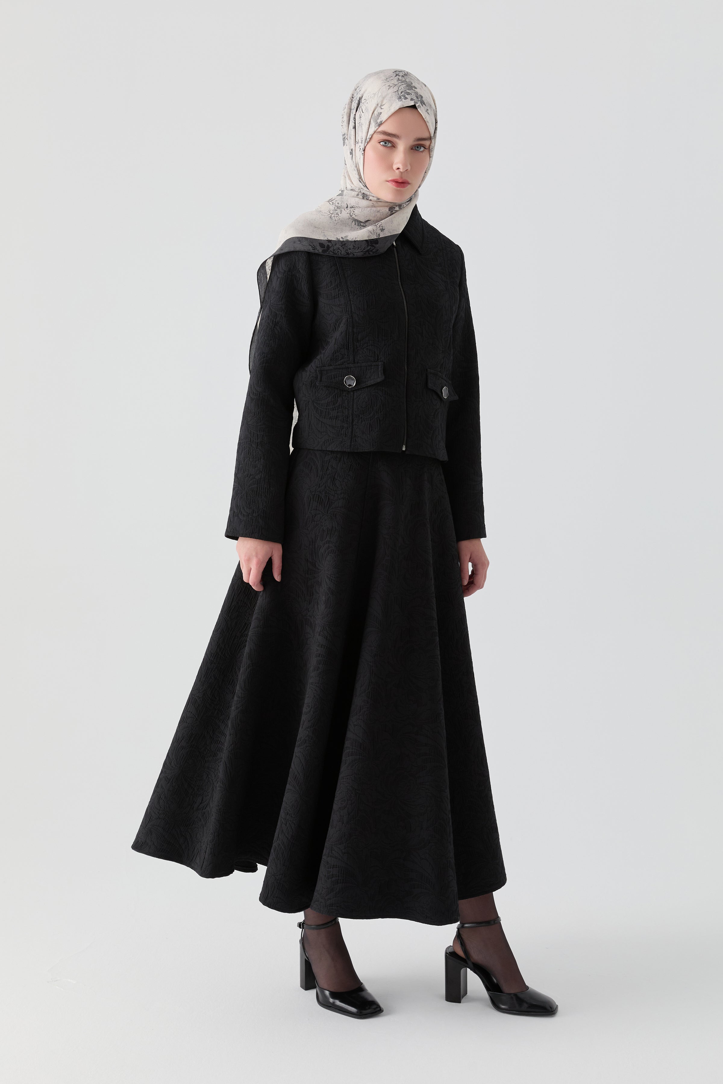 Kapitone dokusuyla sıcaklık ve yapı kazanan bu takım, ceket ve etek uyumuyla sofistike bir siluet oluşturur. Modern kesimiyle şehir stiline zarif bir dokunuş katarken, rahat kalıbı sayesinde gün boyu konfor sağlar.