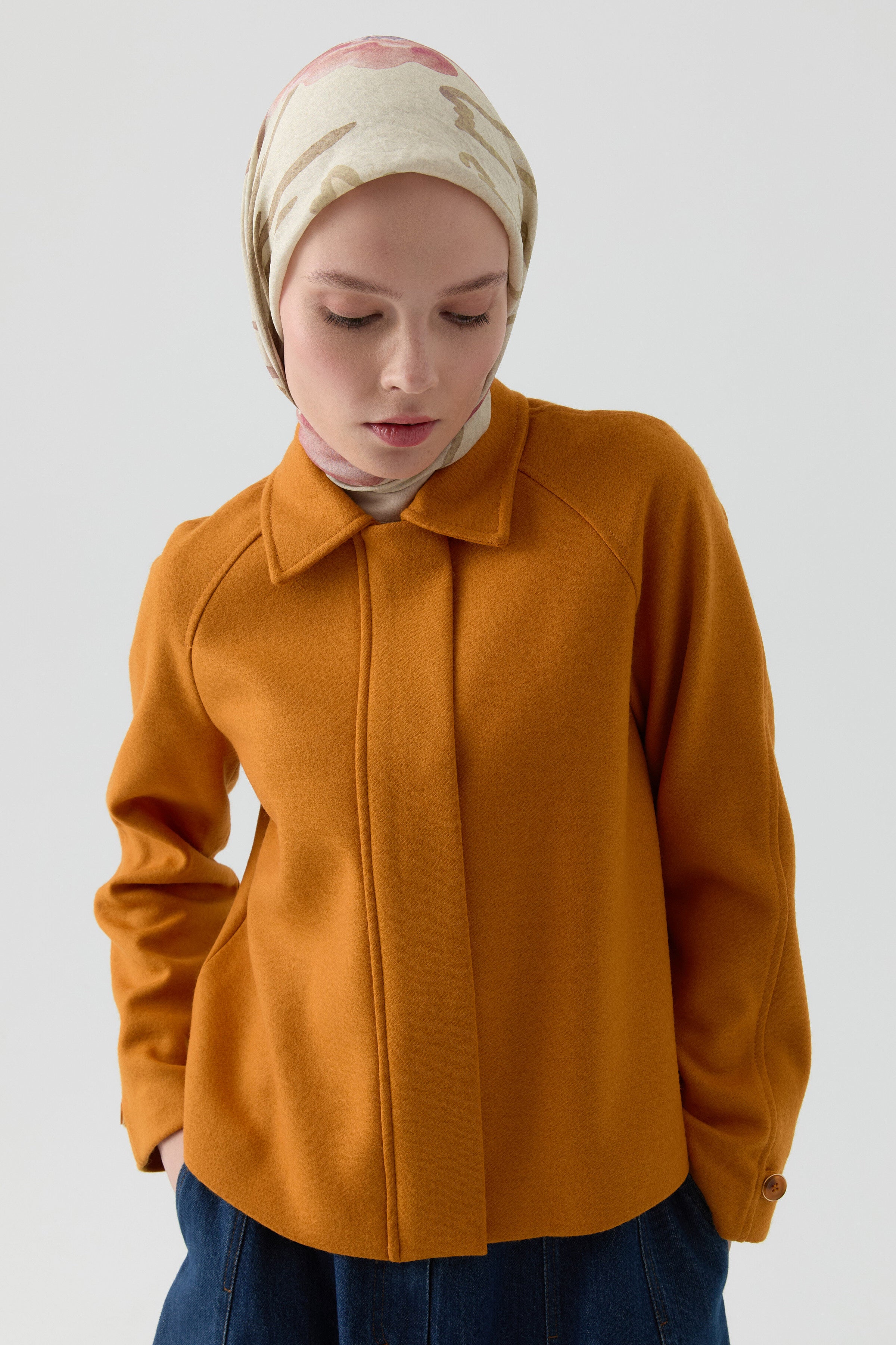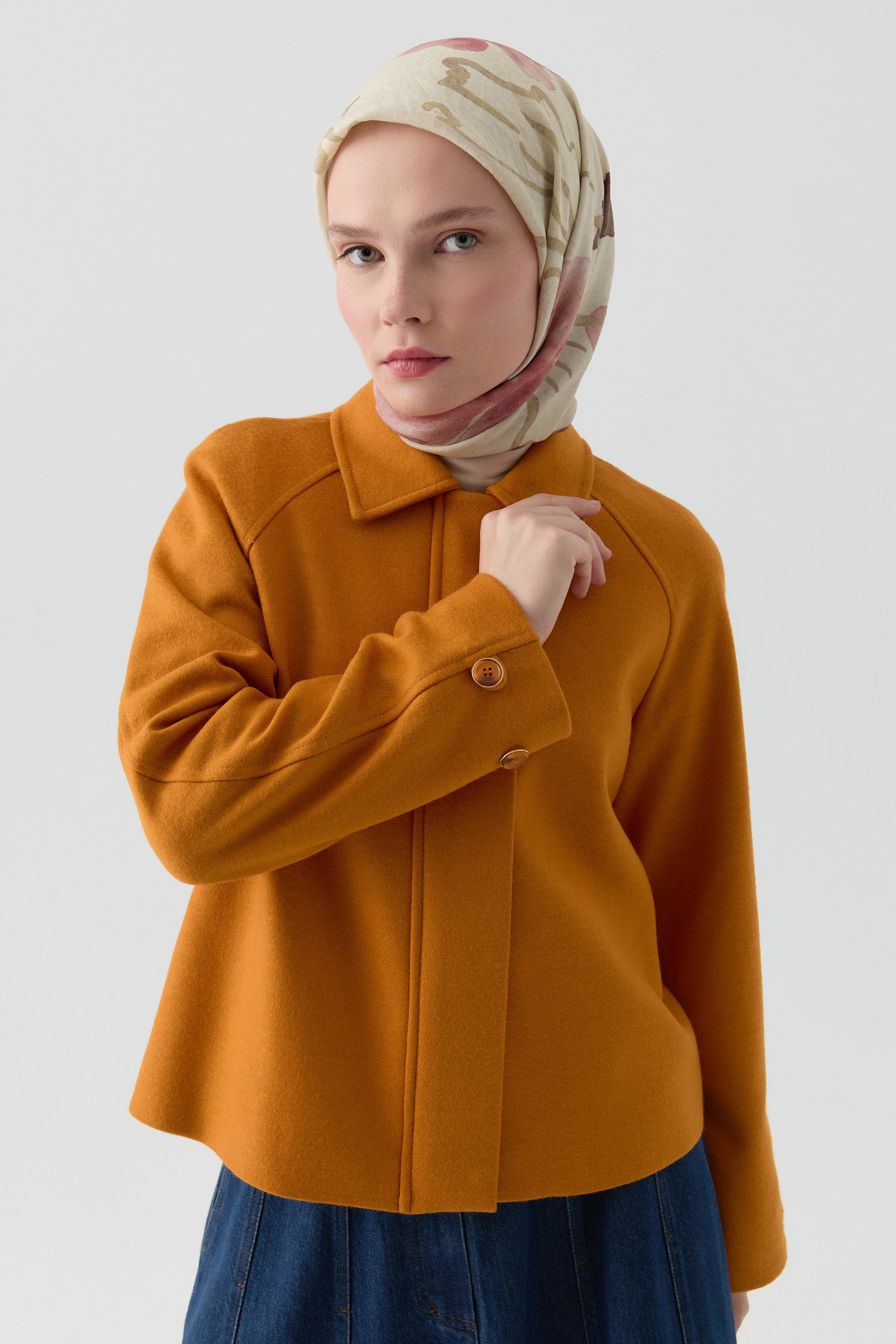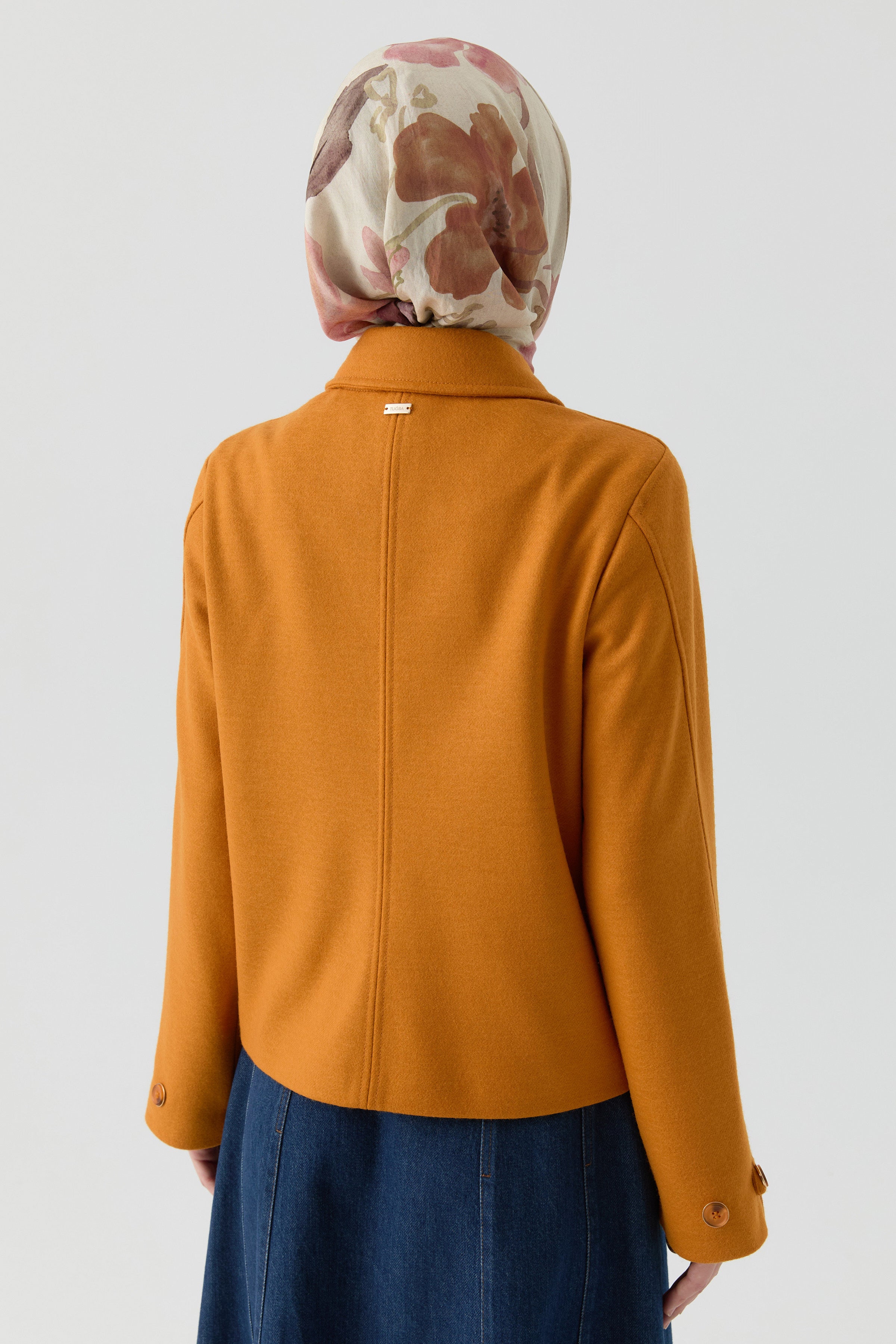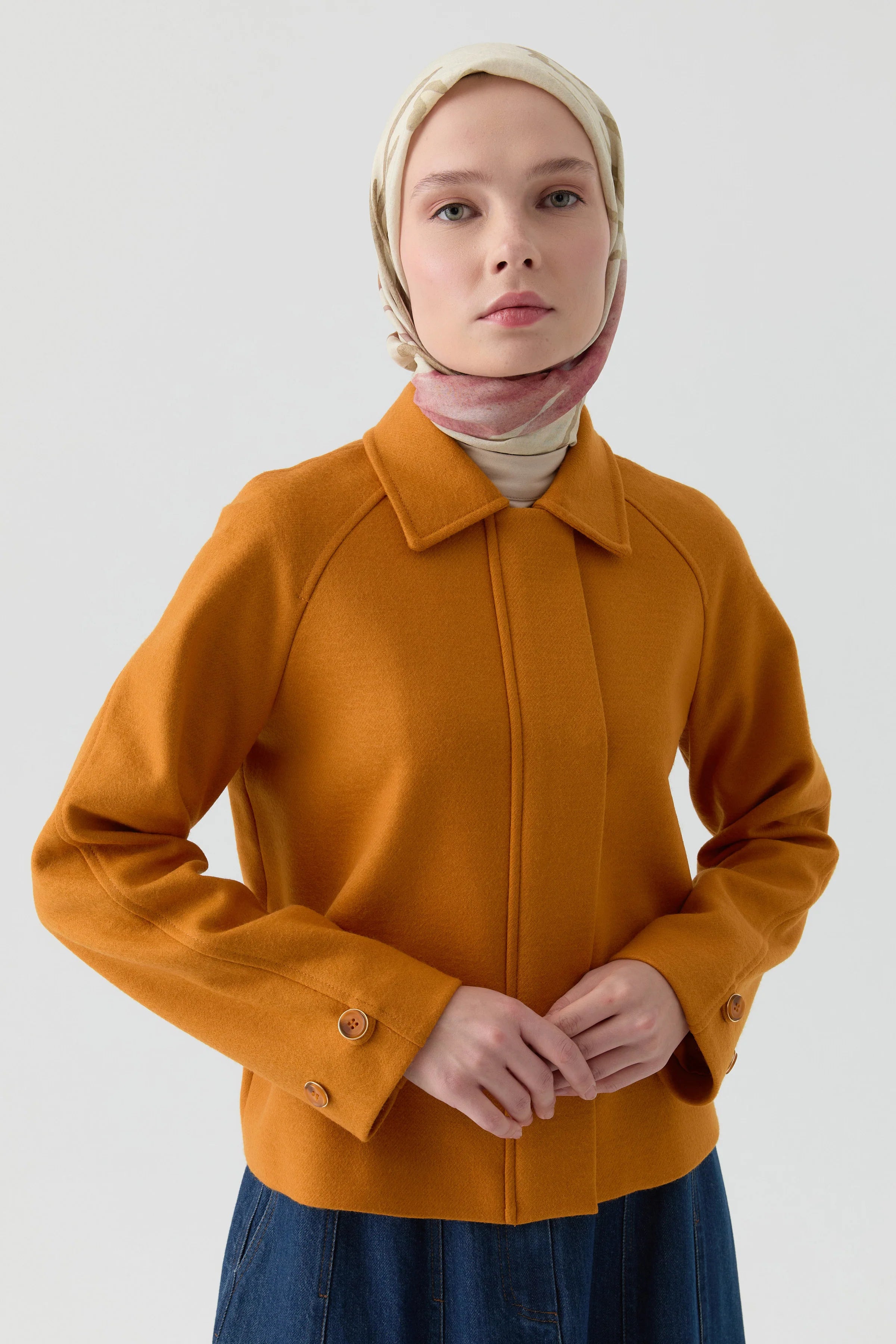 Kol Düğmeli Mini Keçe Ceket - Hardal