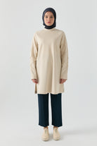 Kolları Detaylı Tunik - Taş