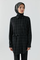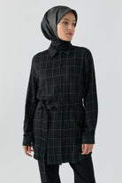 Kuşağı Düğme Detaylı Tunik - Siyah