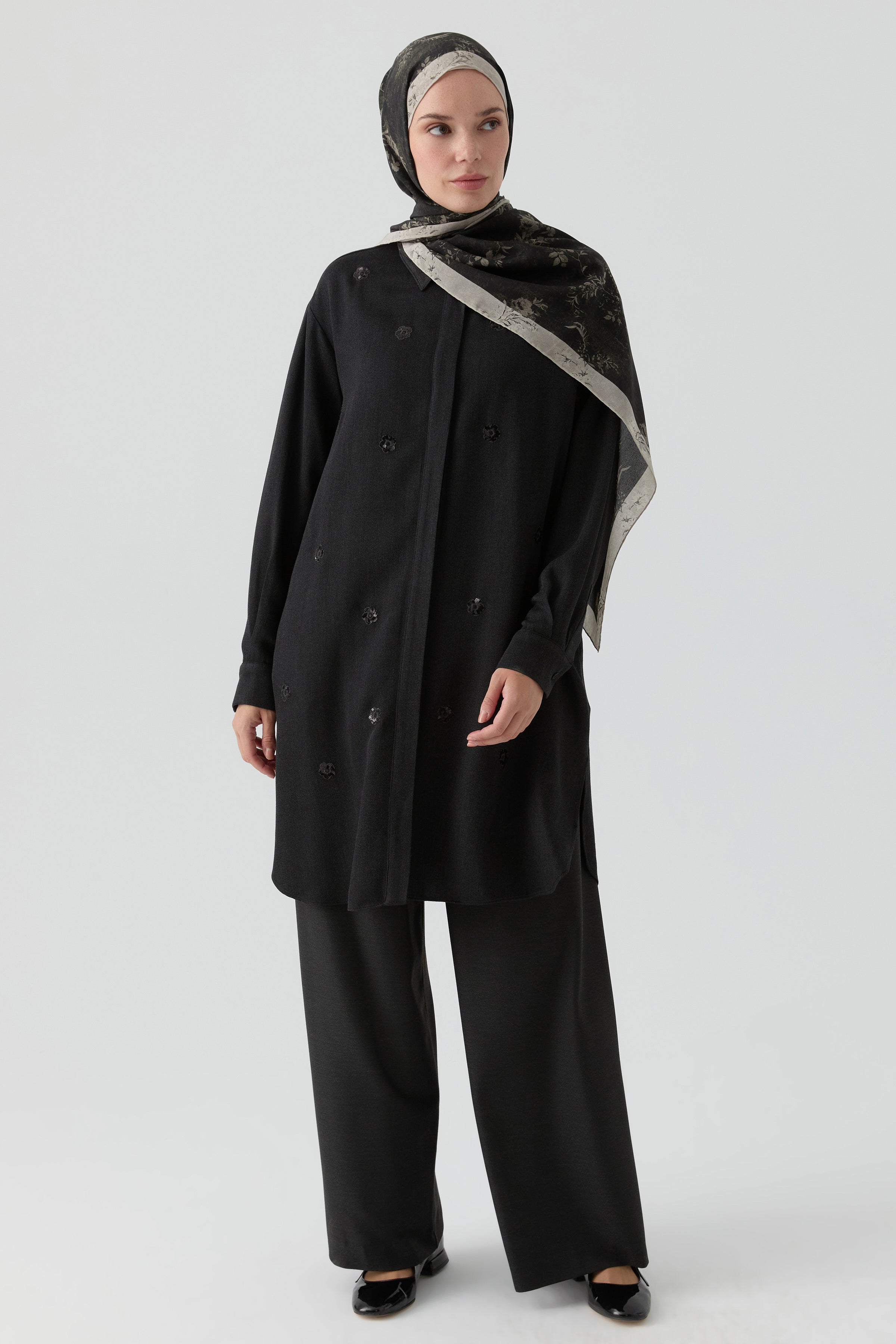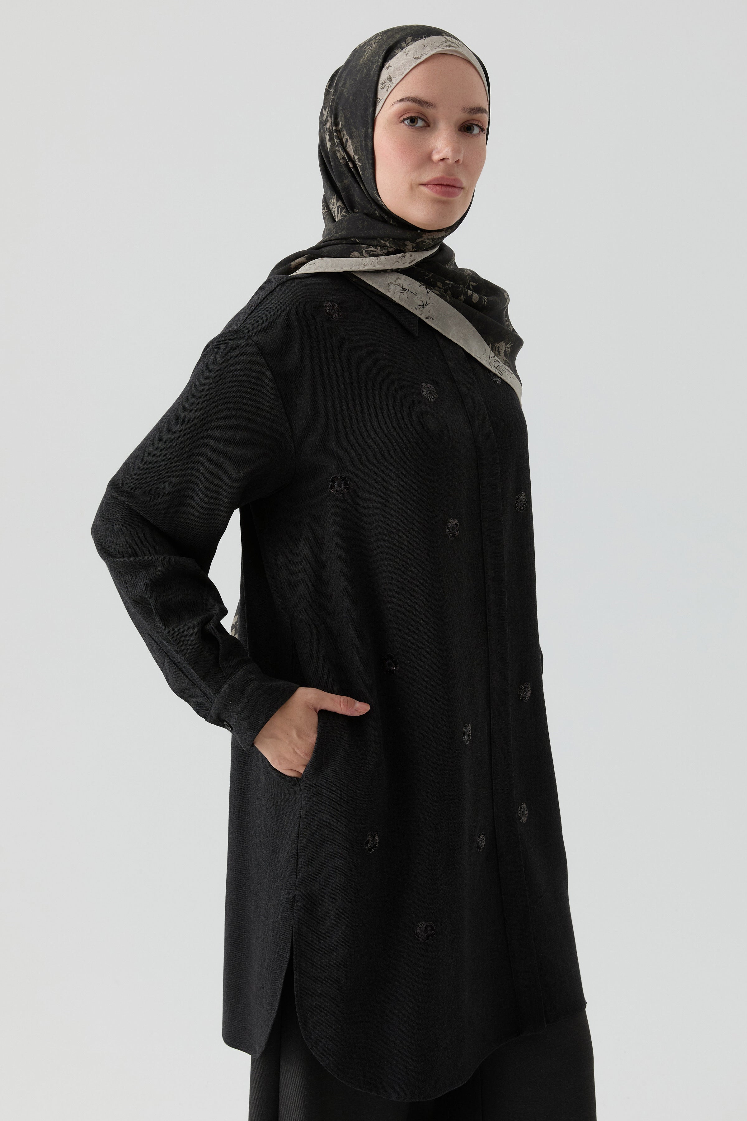 Nakış Detaylı Tunik - Siyah
