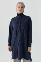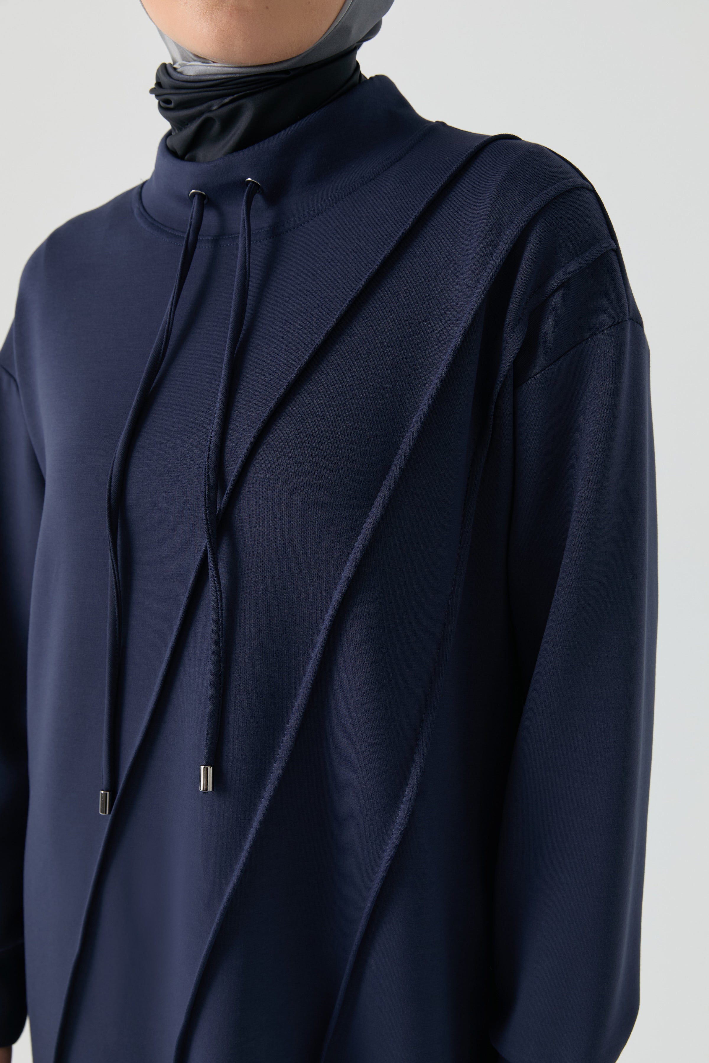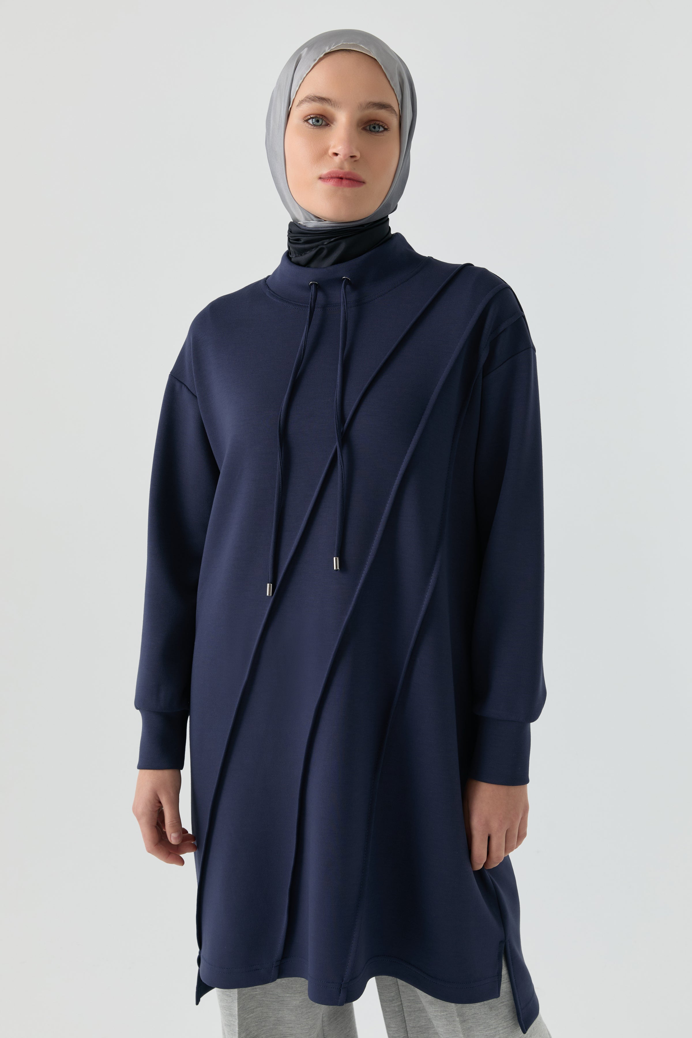 Ön kısmındaki nervür detaylarıyla hafif bir hareket kazanan bu tunik, sade siluetiyle modern ve gündelik şıklık sunar. Akıcı yapısı gün boyu konfor sağlarken, minimal tasarımı farklı kombinlerle kolayca uyum sağla