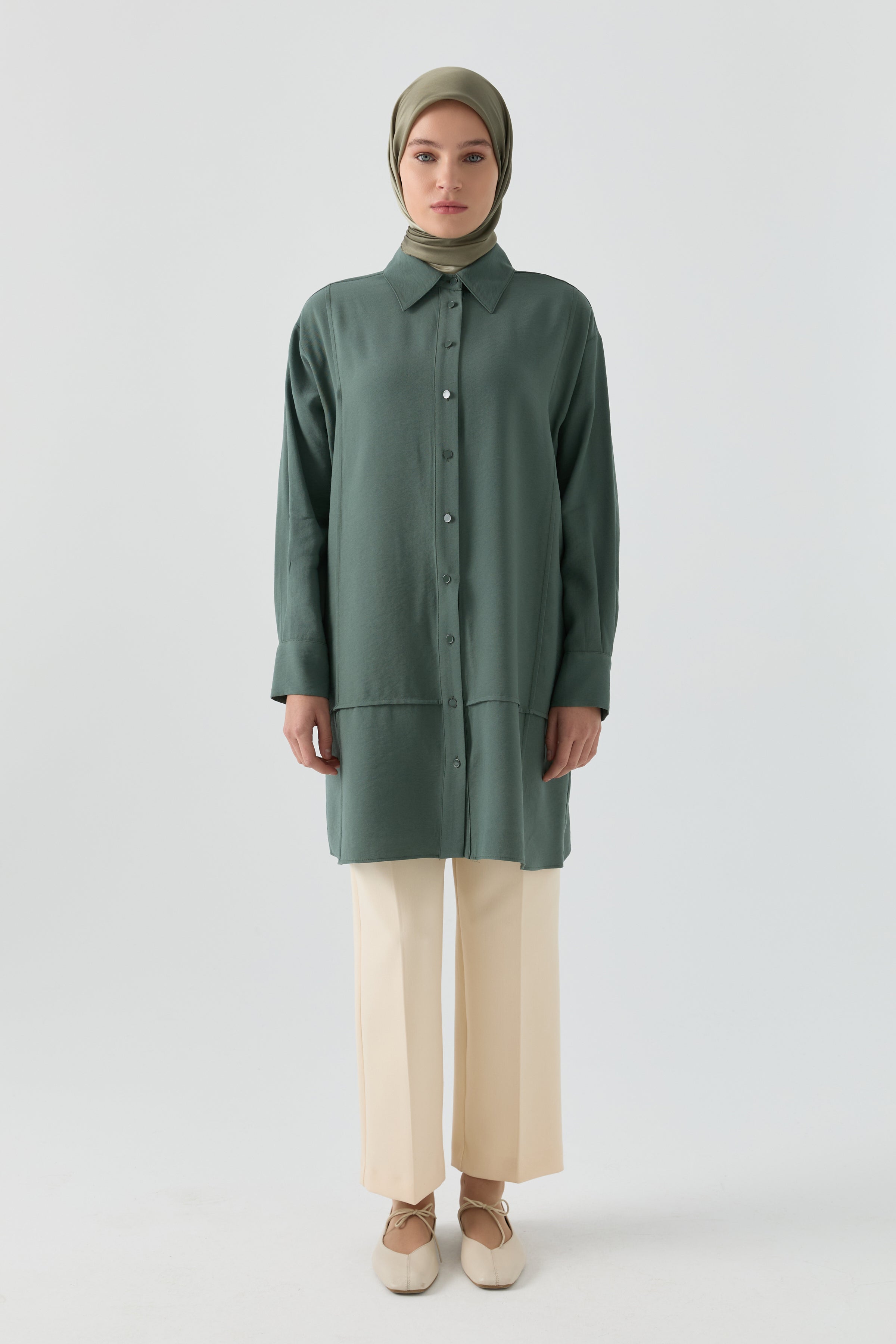 Nervür Detaylı Tunik - Zümrüt
