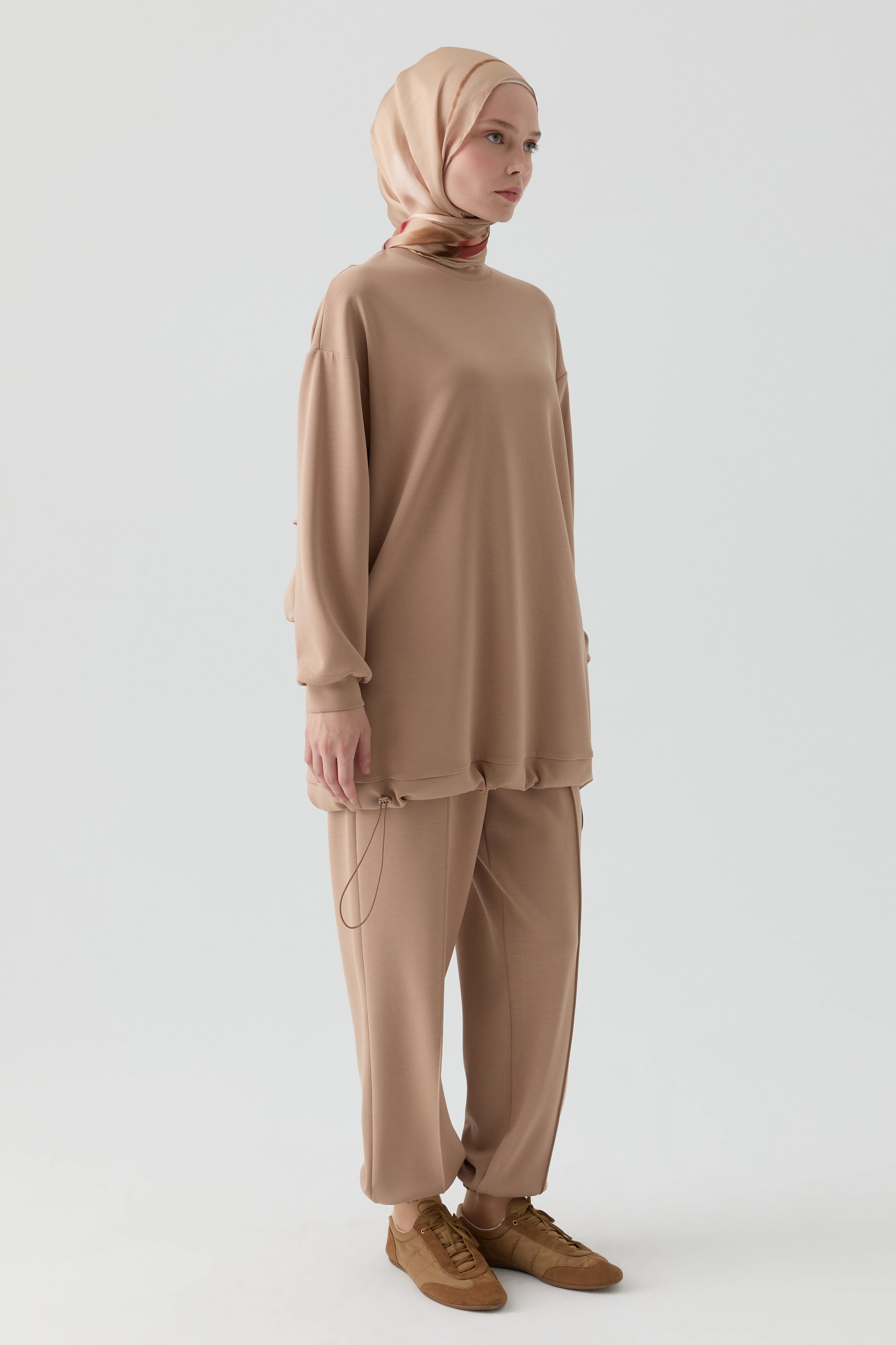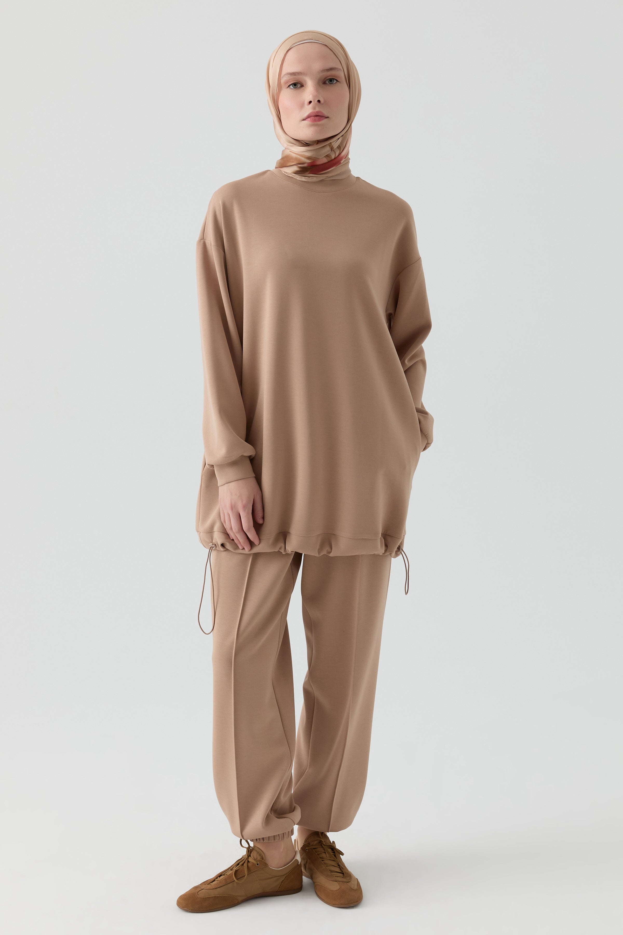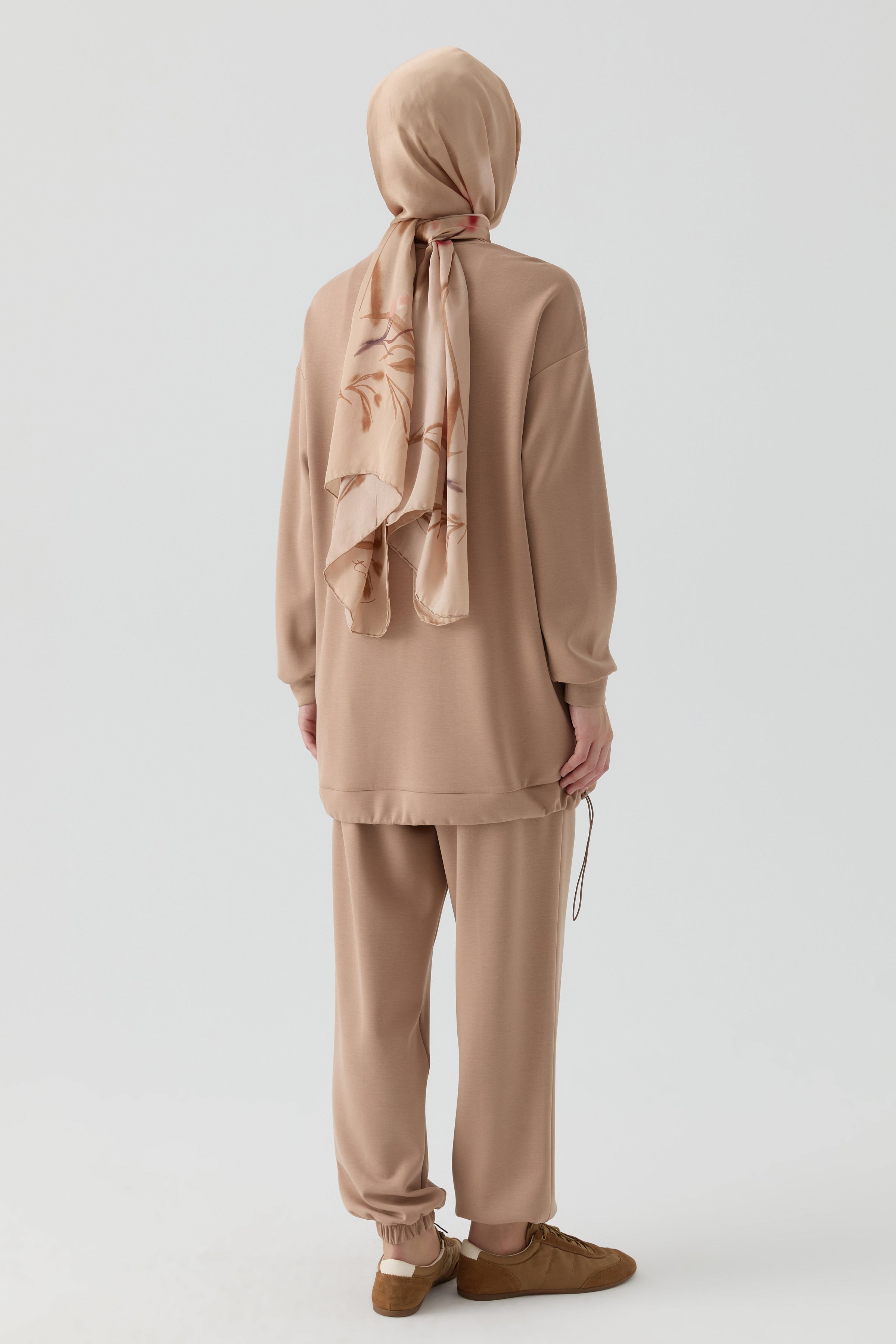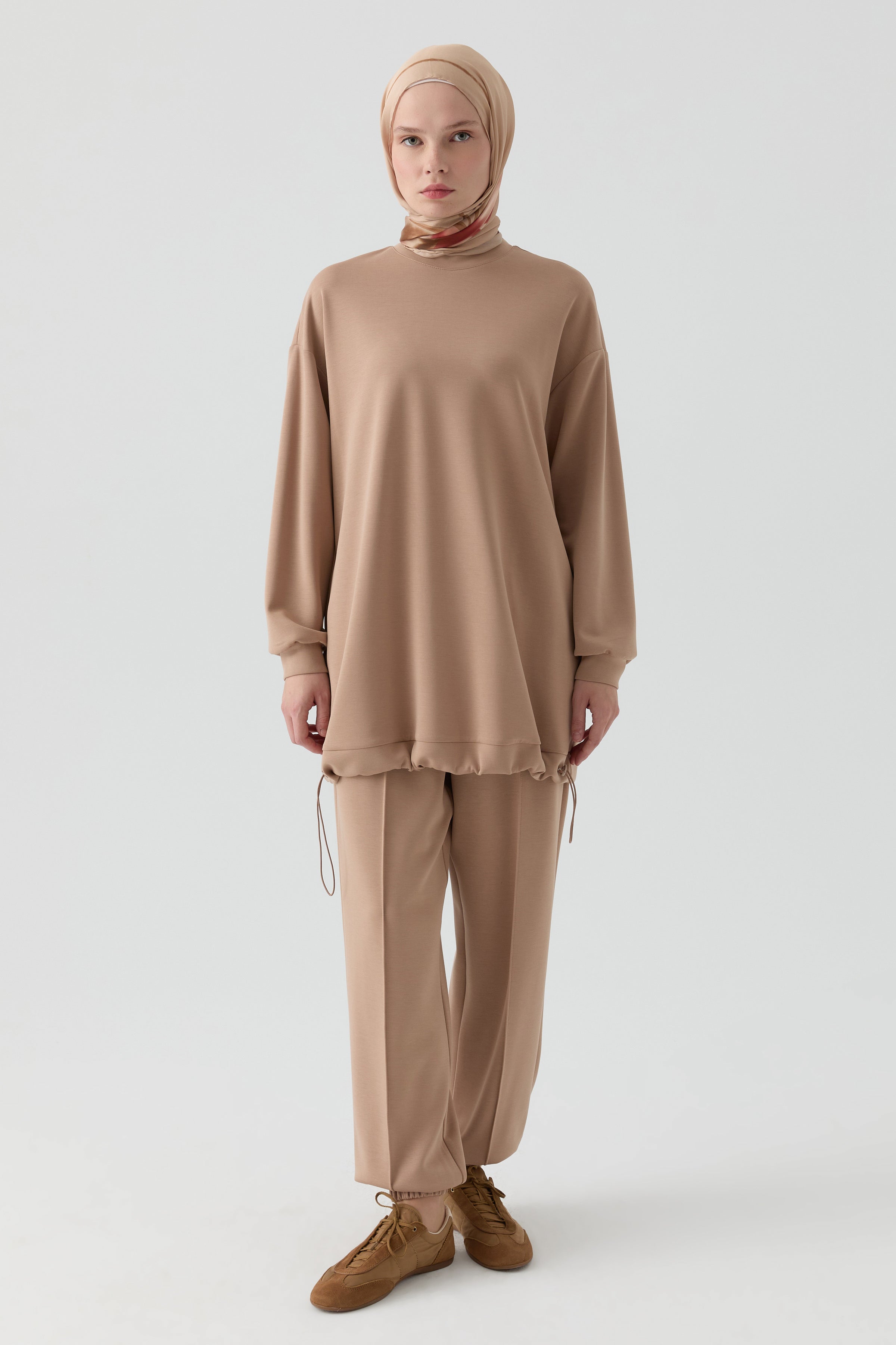 Örme Tunik Pantolon Takım, modern çizgisi ve yumuşak dokusuyla gün boyu konfor sunarken, zarif görünümüyle günlük stilinize şıklık katıyor.