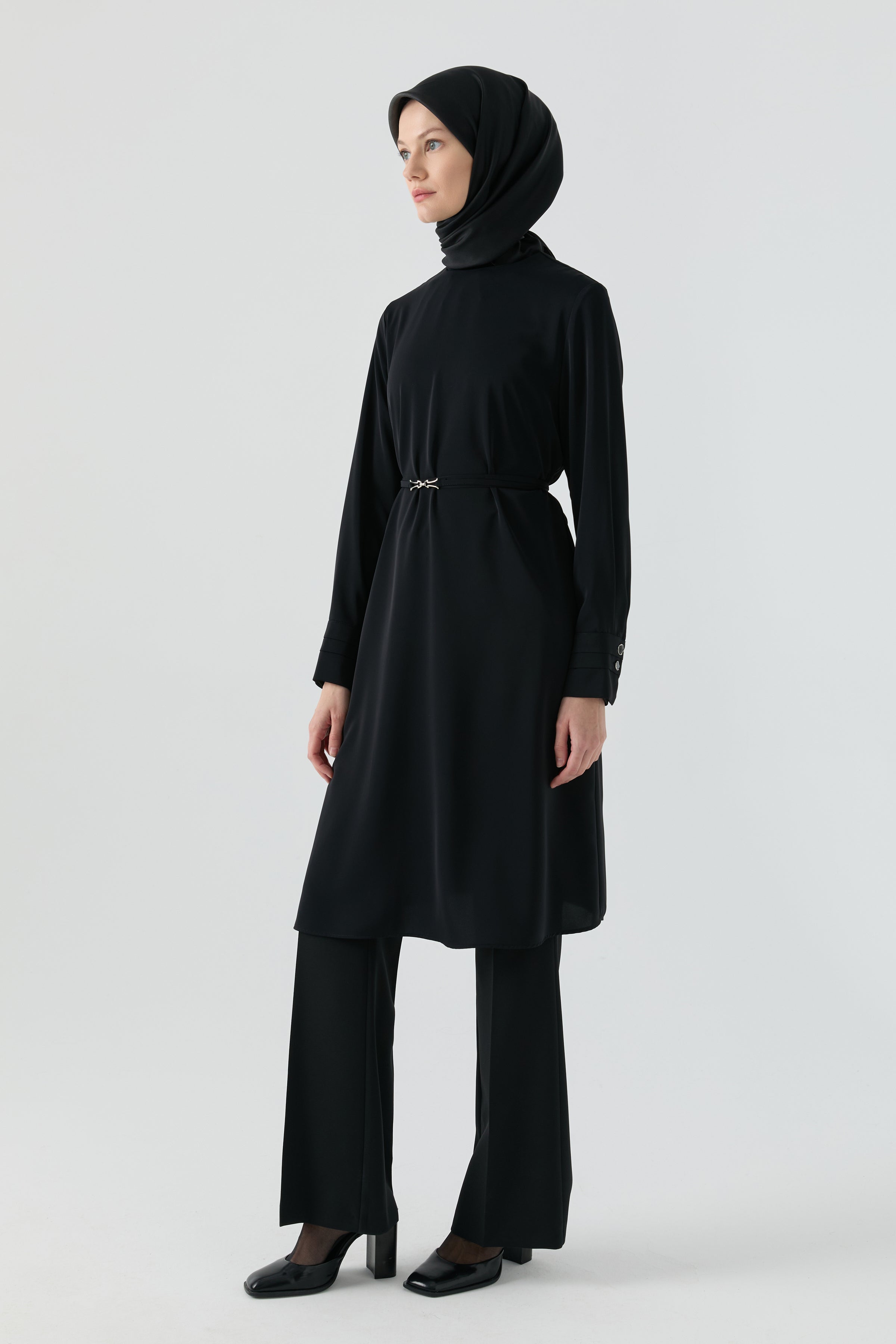 Ön kısmındaki pile detaylarıyla akıcı bir hareket kazanan bu tunik, sade formunu modern bir zarafetle tamamlar. Hafif dokusu gün boyu konfor sunarken, minimal çizgileri şehir stiline temiz ve feminen bir hava katar.