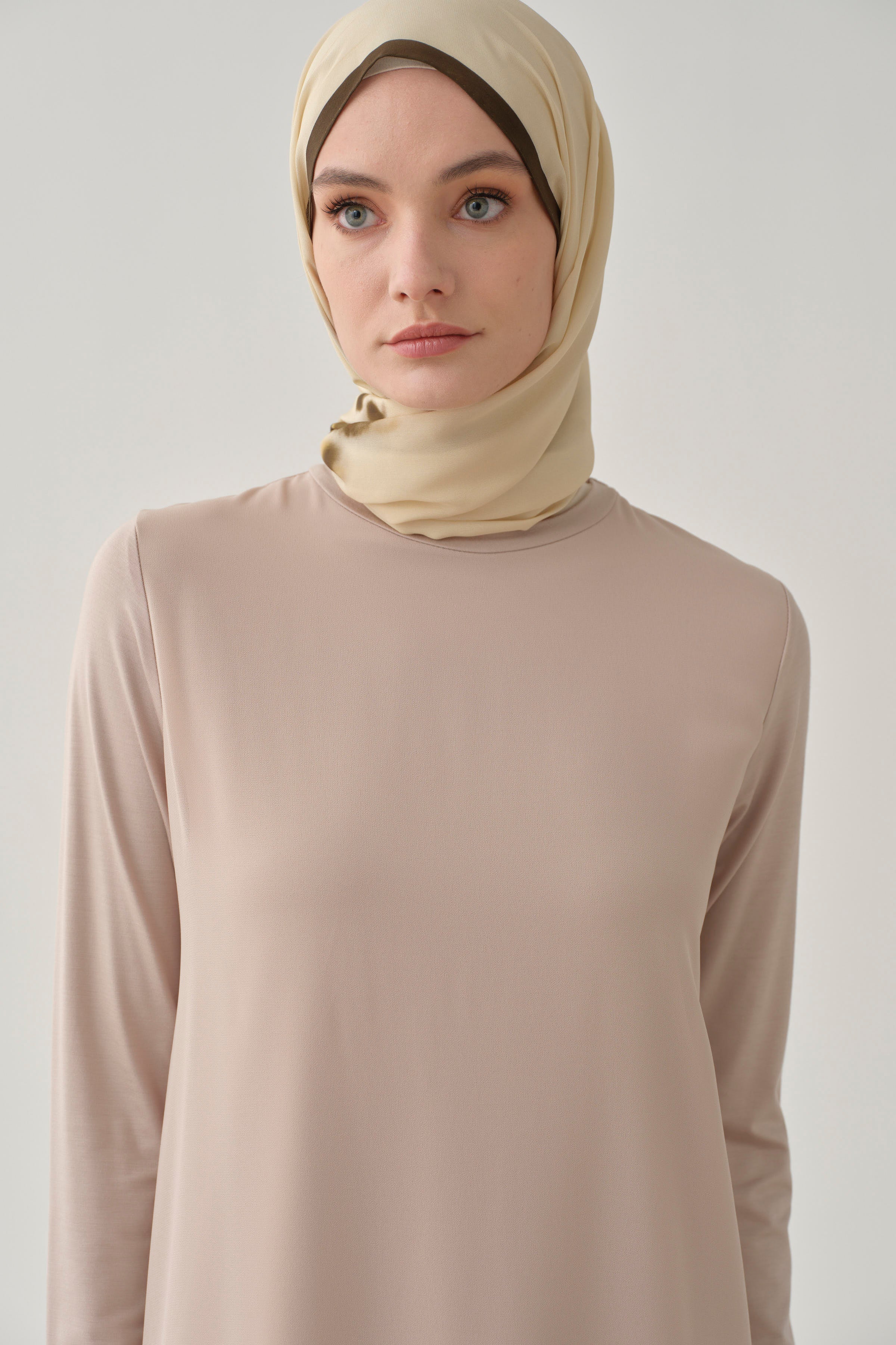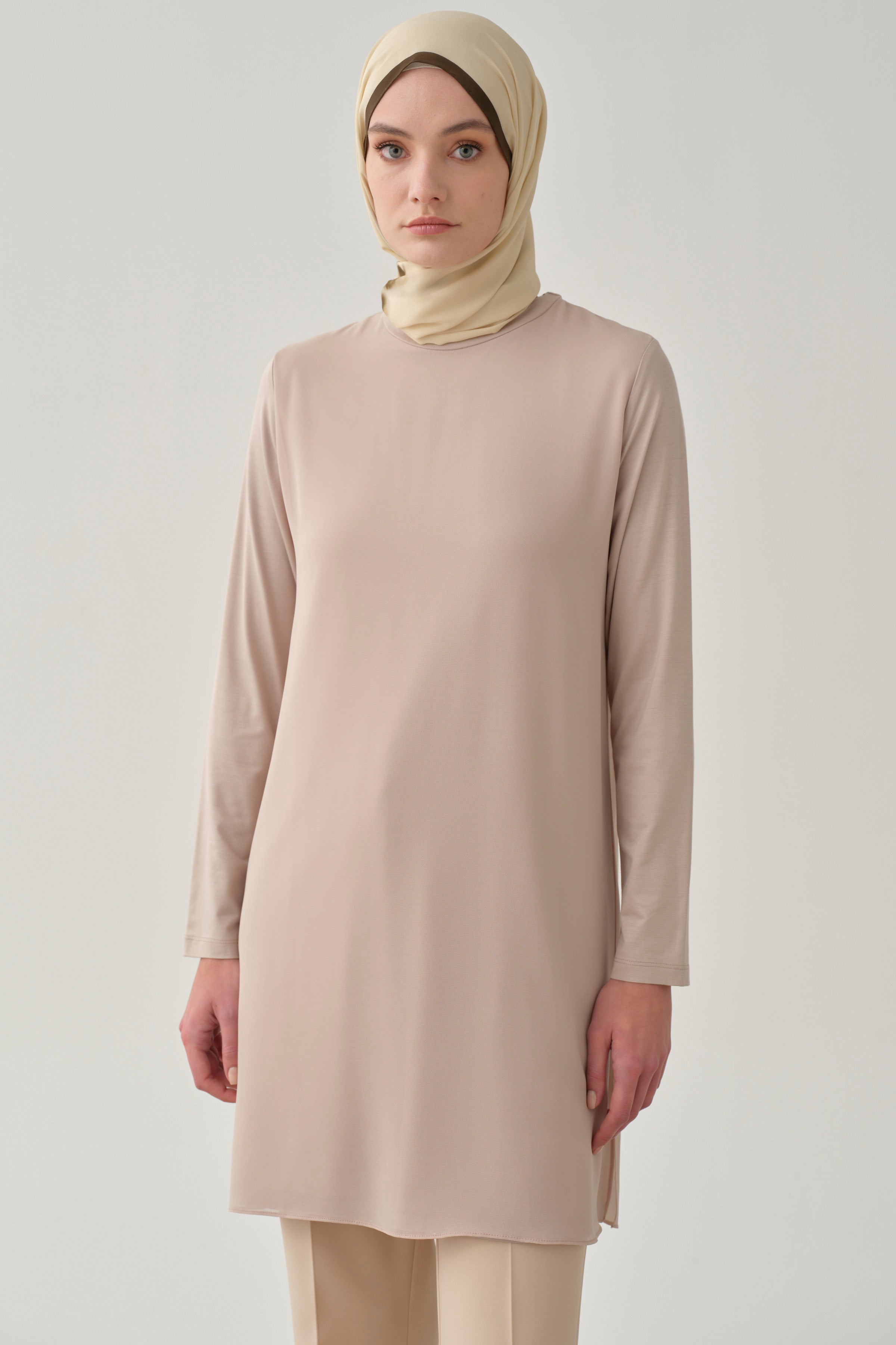 Hafif şifon garnisi ve modern yırtmaç detaylarıyla öne çıkan bu penye tunik, şıklık ve konforu bir araya getiriyor. Yumuşak penye dokusu gün boyu rahat bir kullanım sunarken, şifon detayları tasarıma zarif bir akış kazandırıyor.