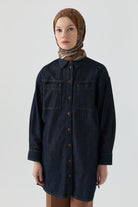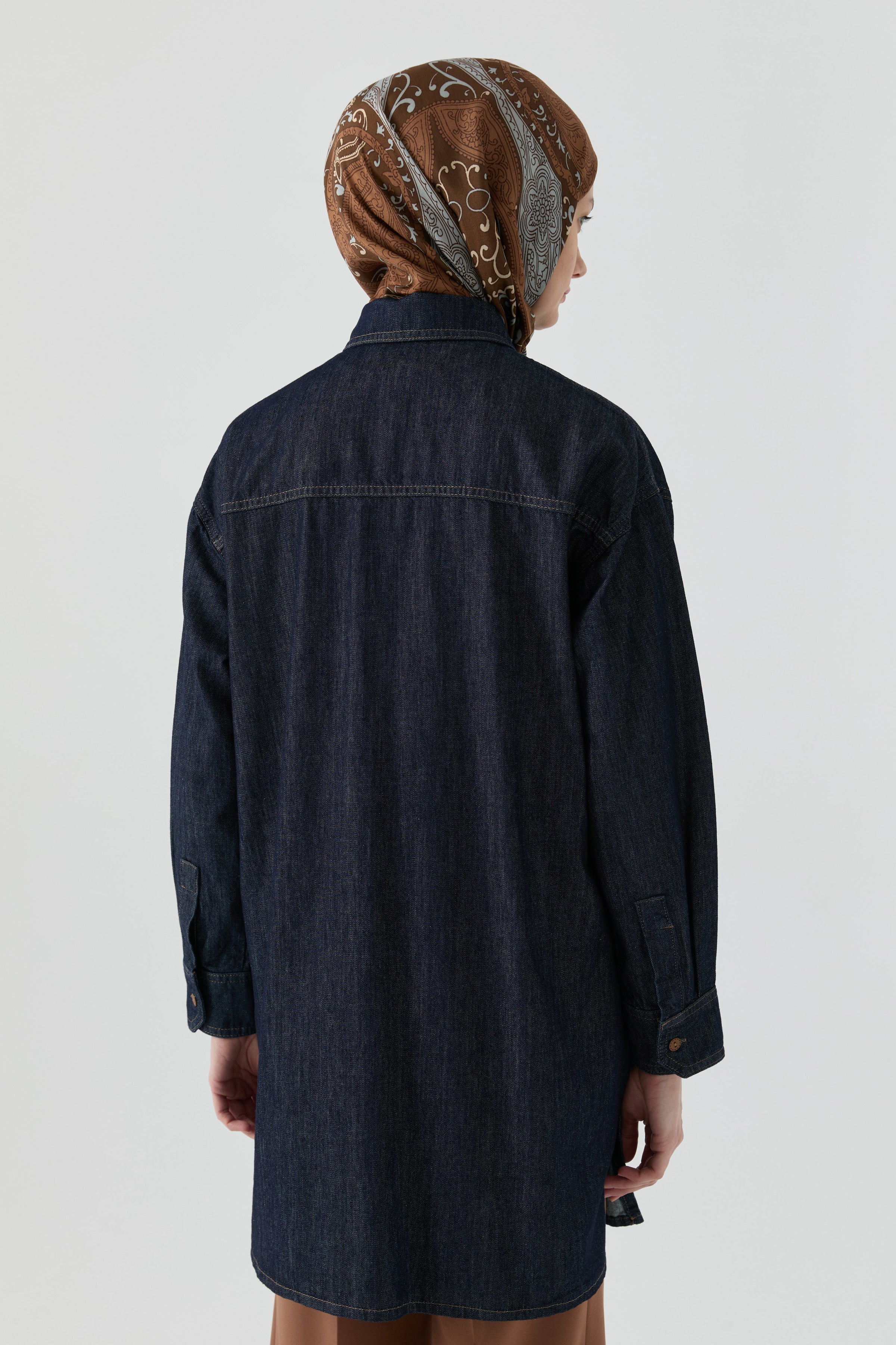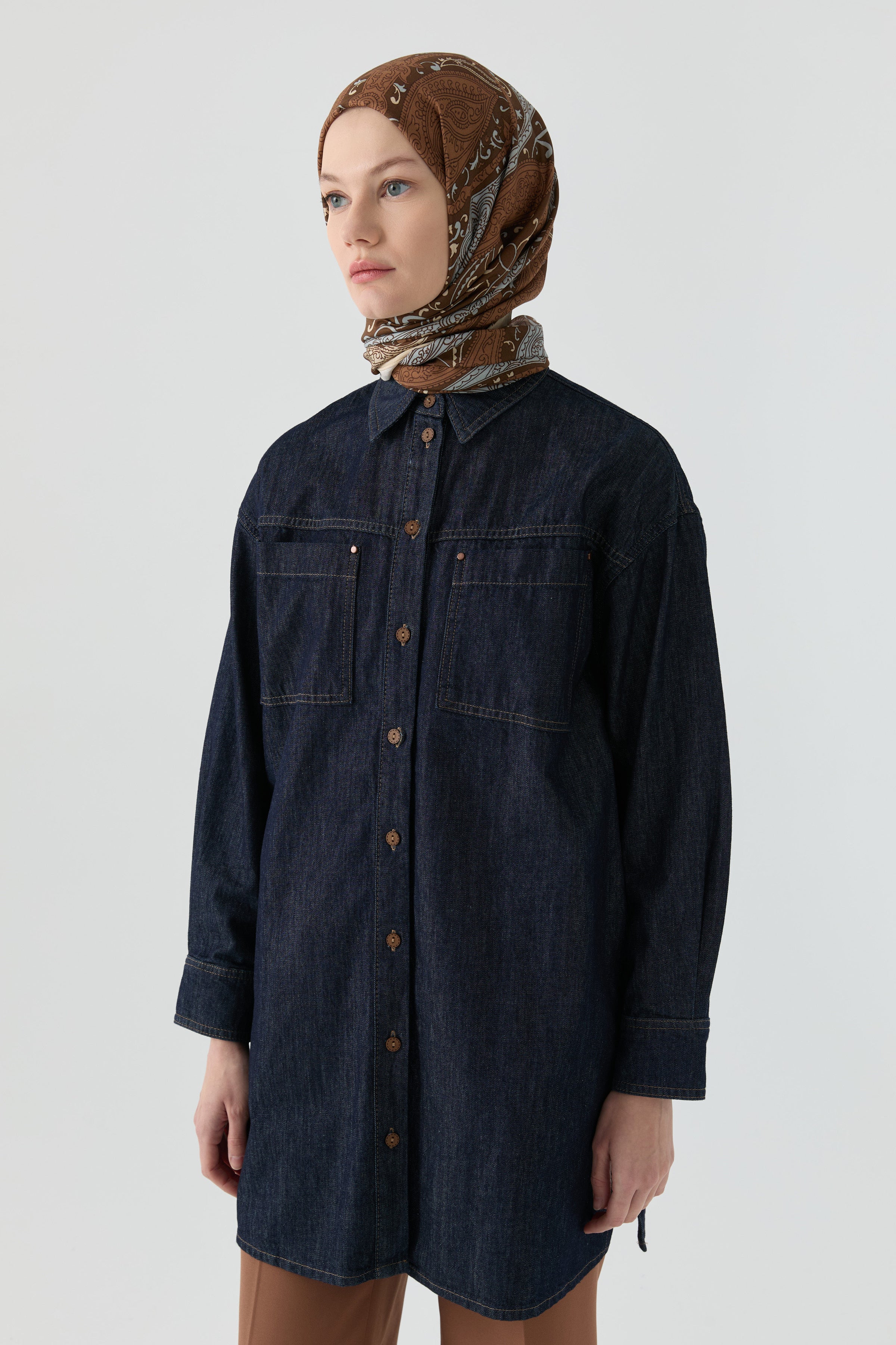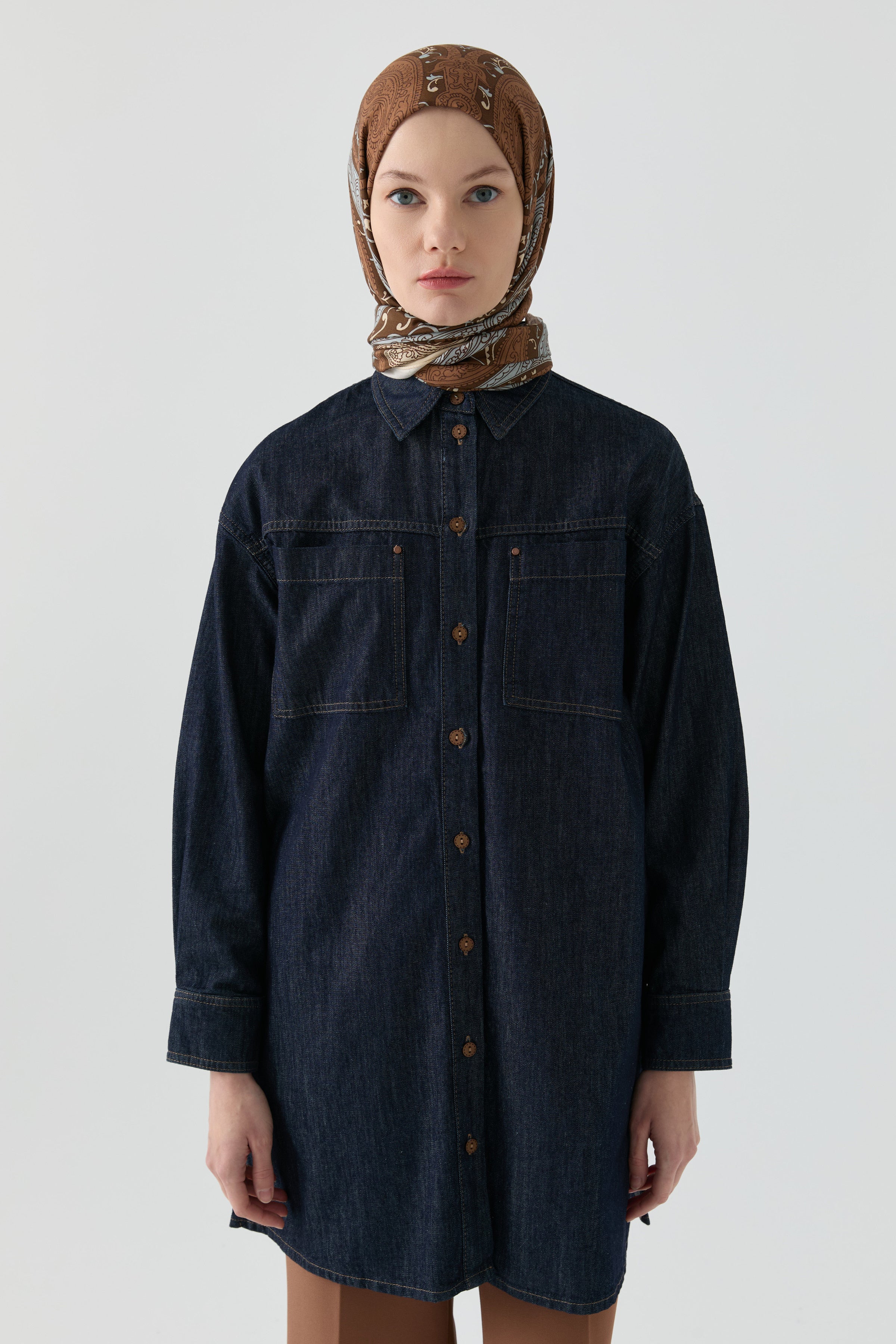Simetrik Cep Detaylı Denim Tunik - Lacivert