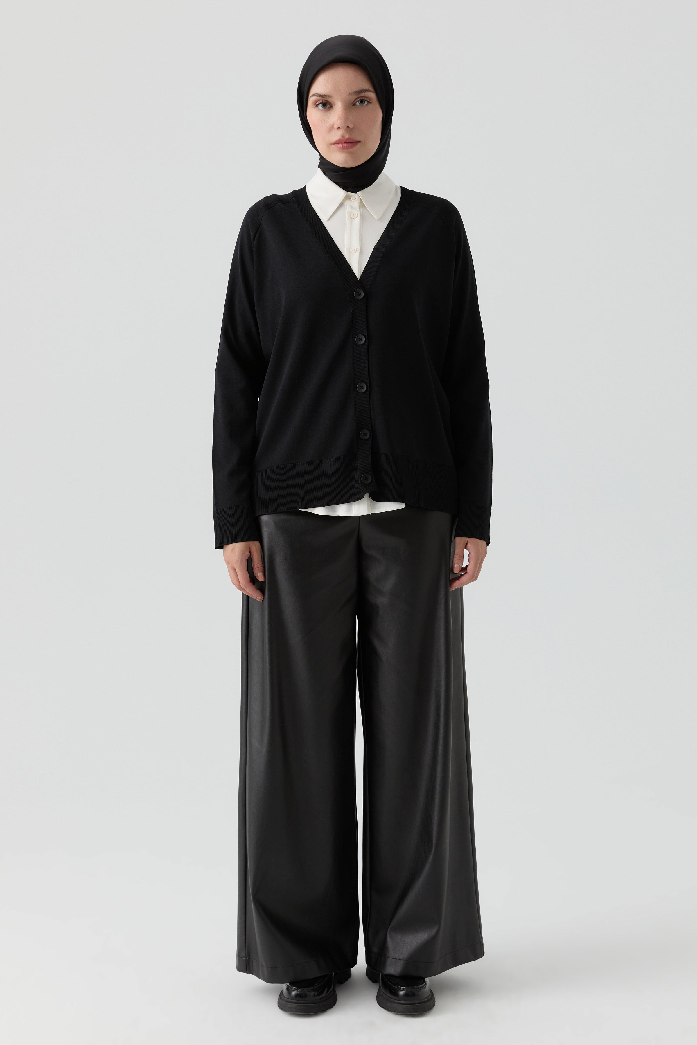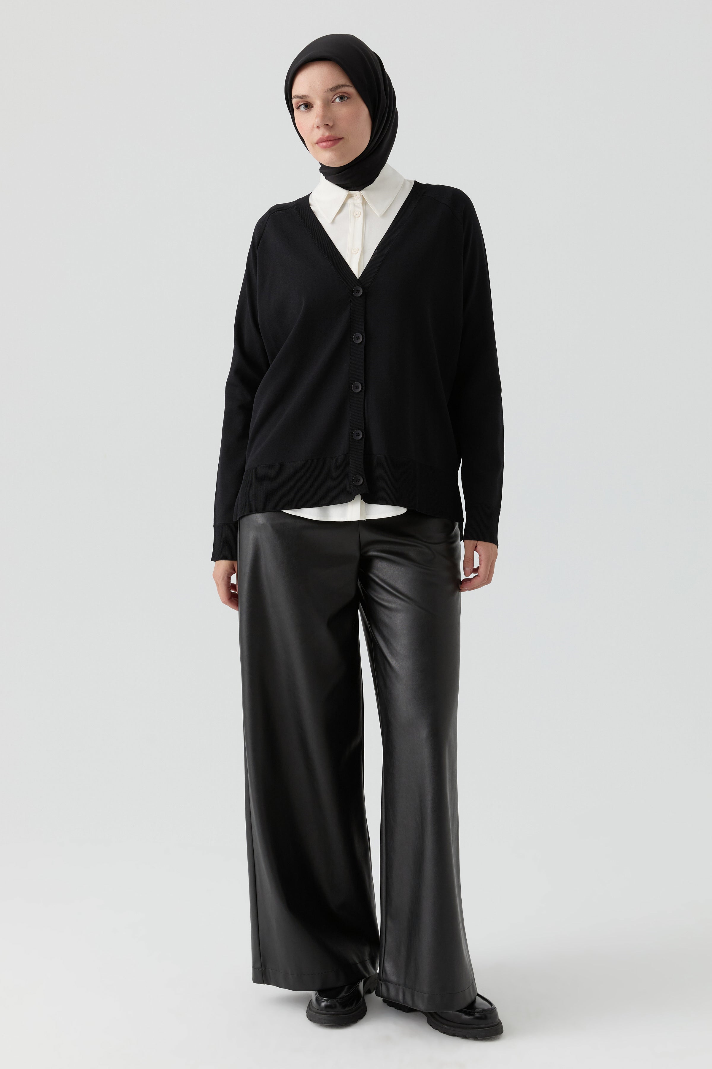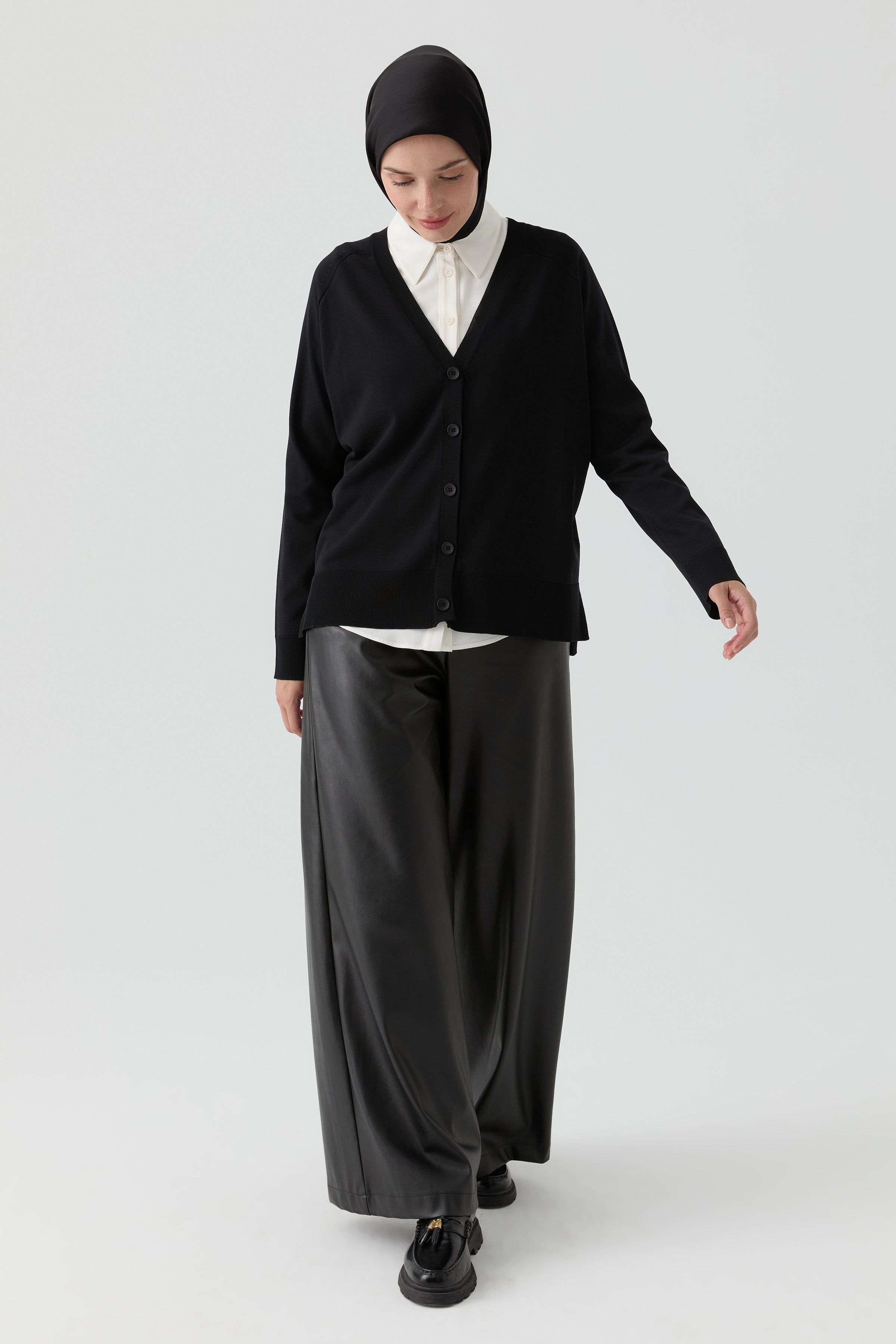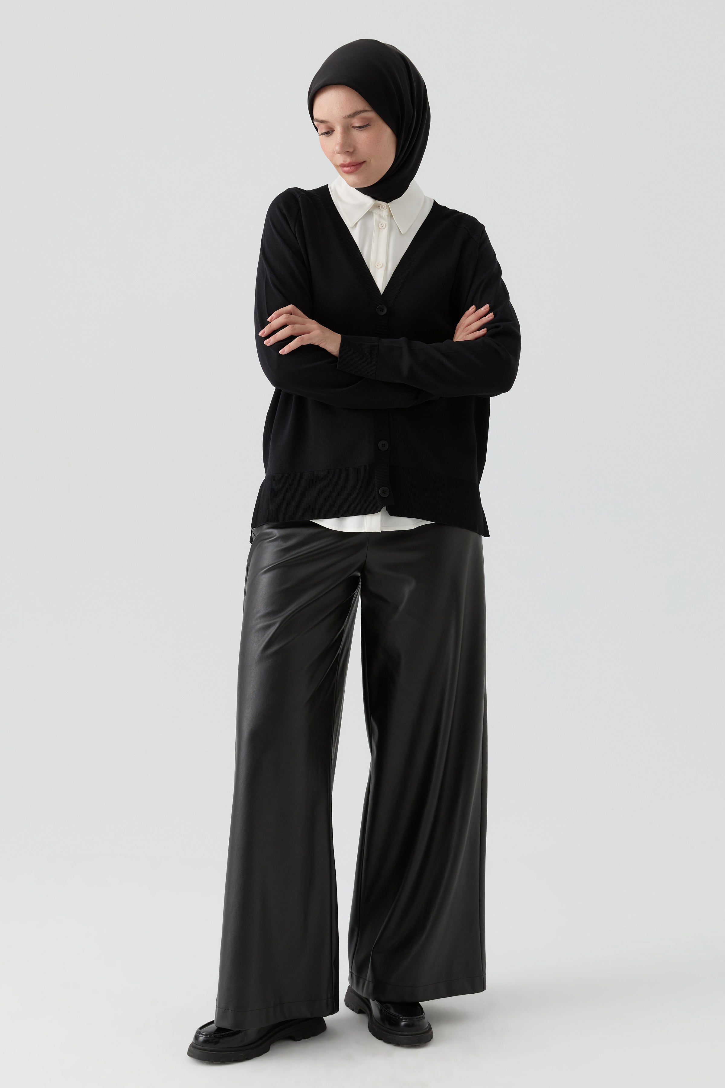 Suni Deri Pantolon, modern kesimi ve kaliteli suni deri dokusuyla her kombine güçlü bir hava katıyor. Günlük kombinlerden özel akşam buluşmalarına kadar rahatlıkla tercih edebileceğiniz, zamansız bir parça.