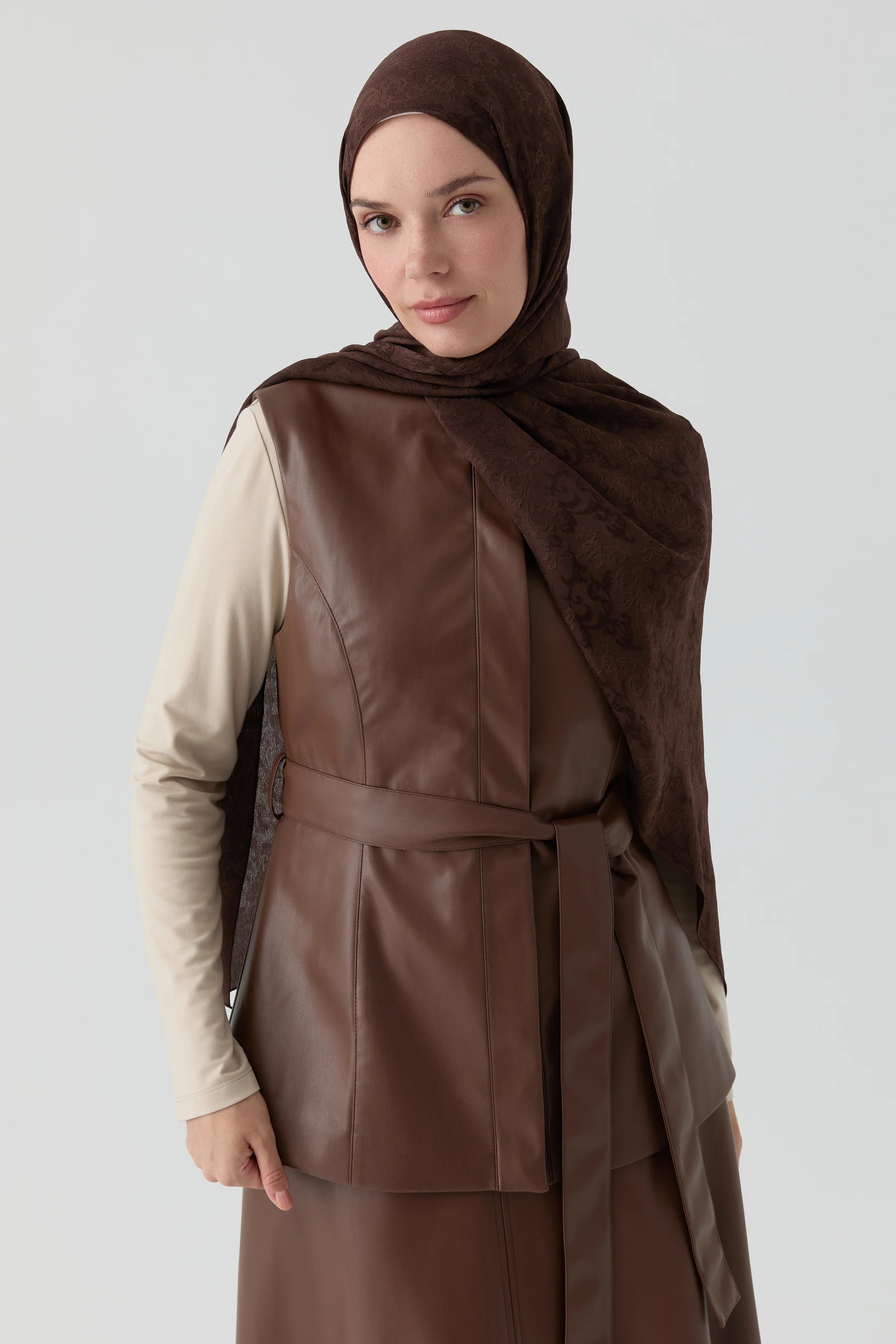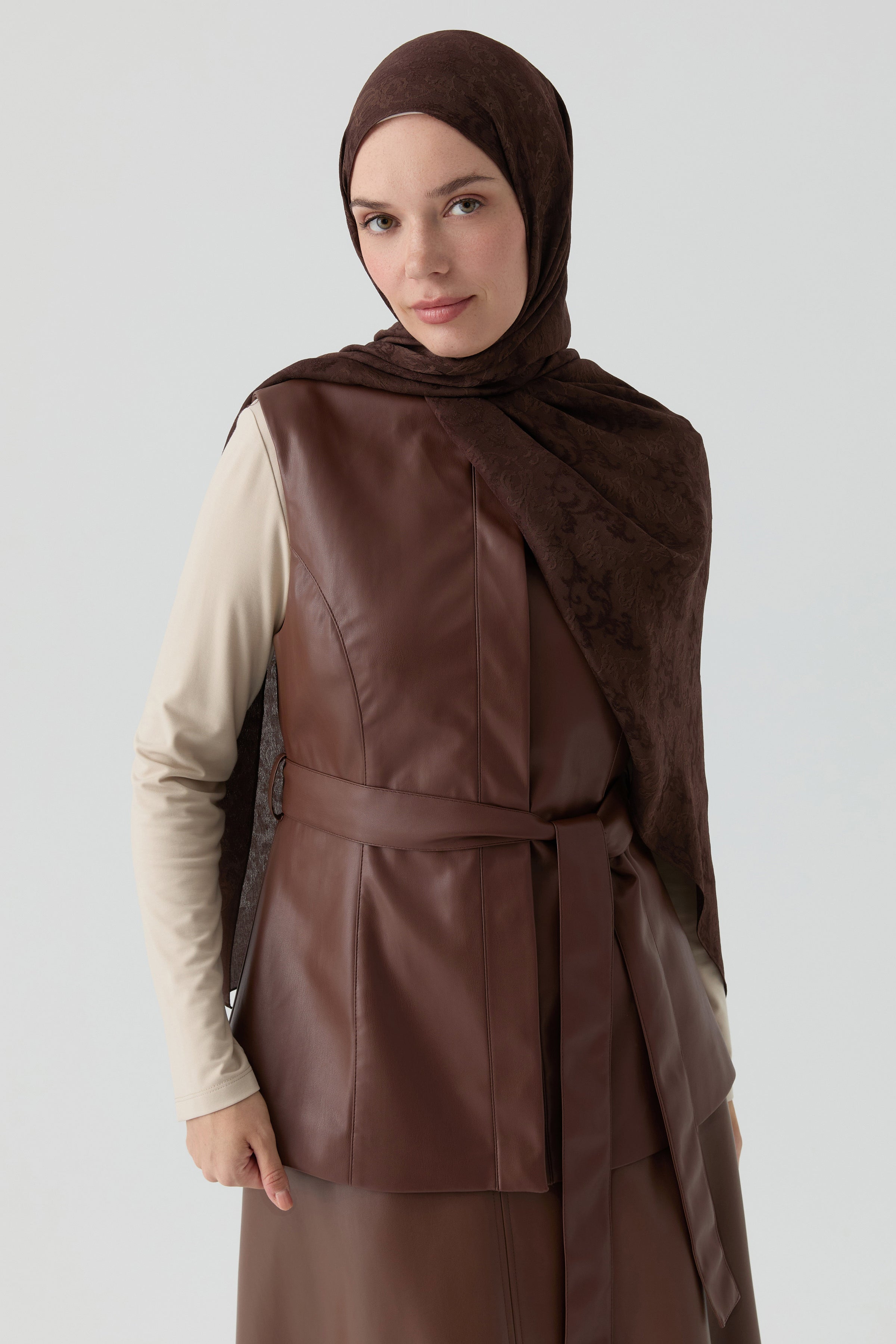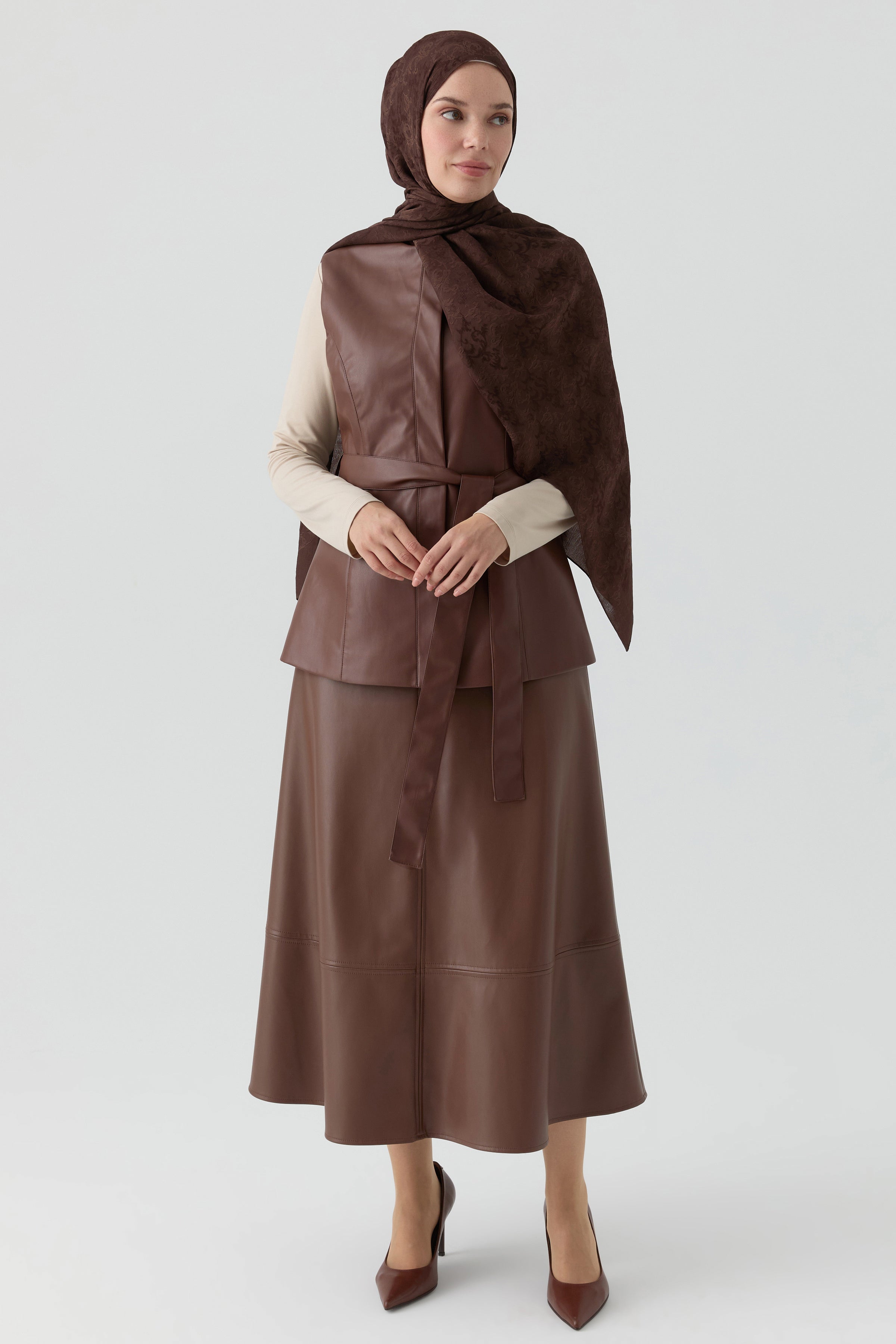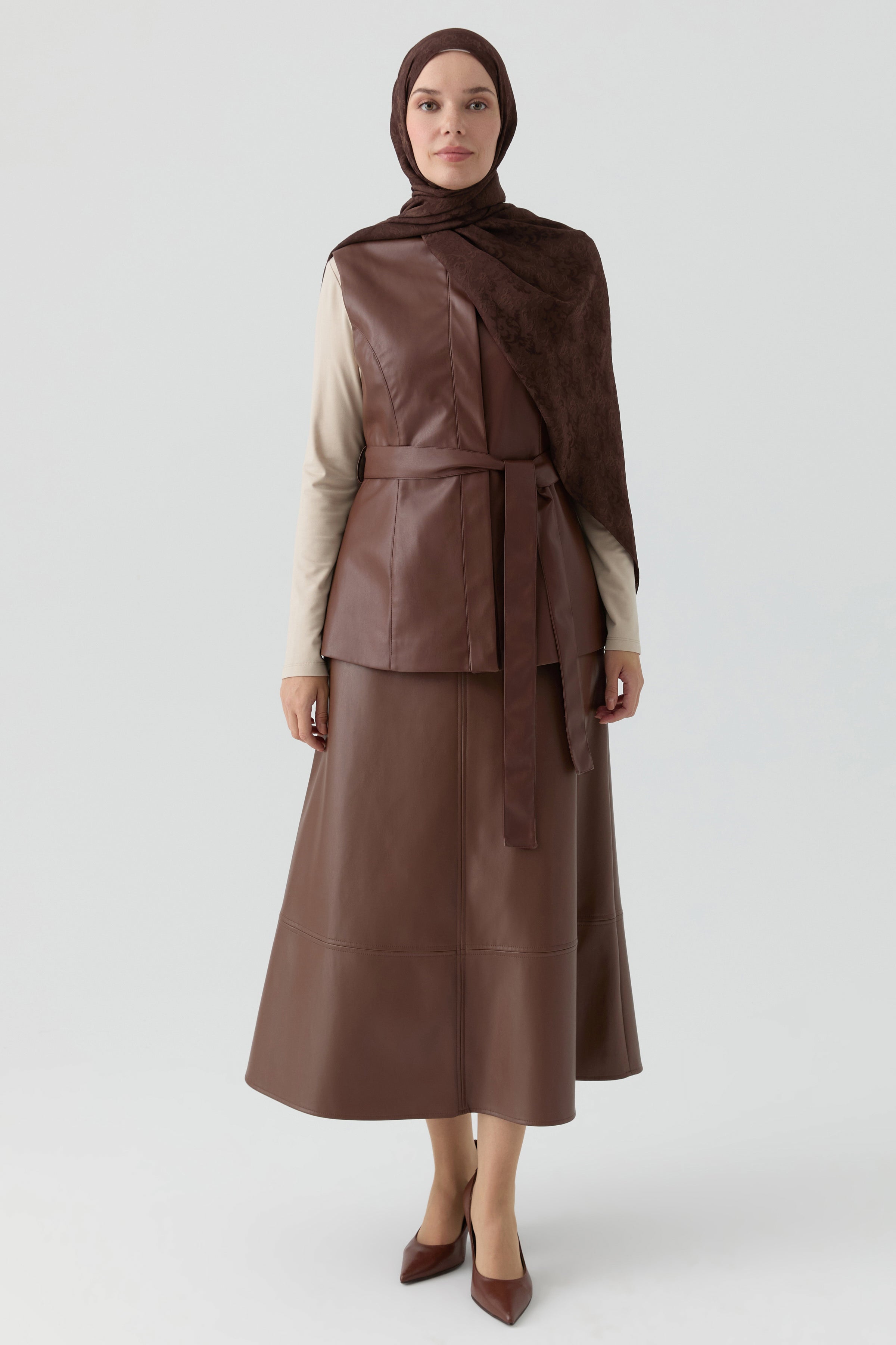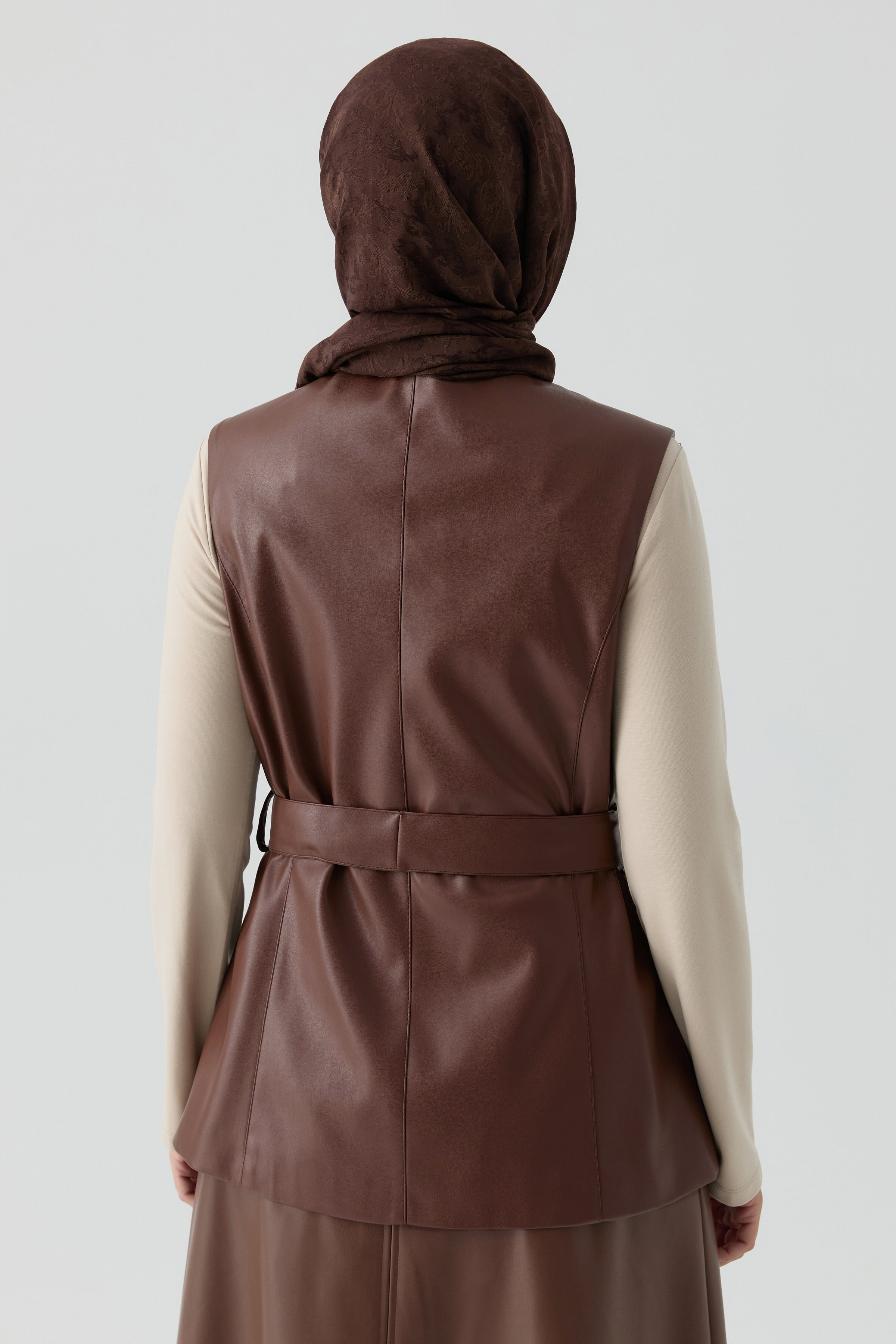 Suni Deri Yelek - Kahve