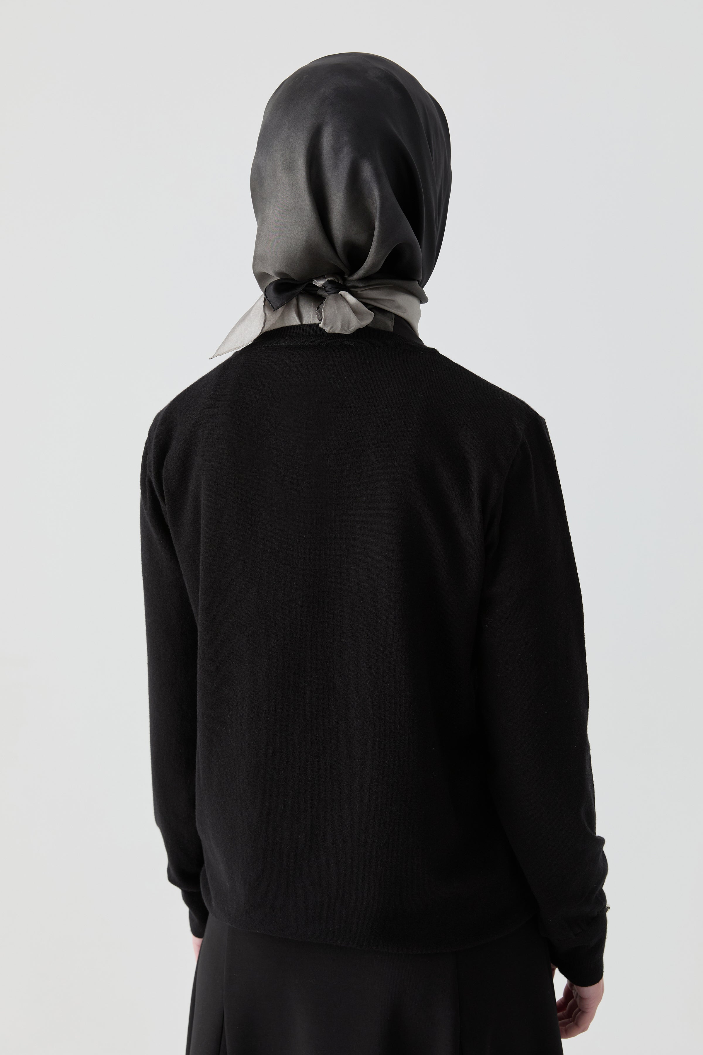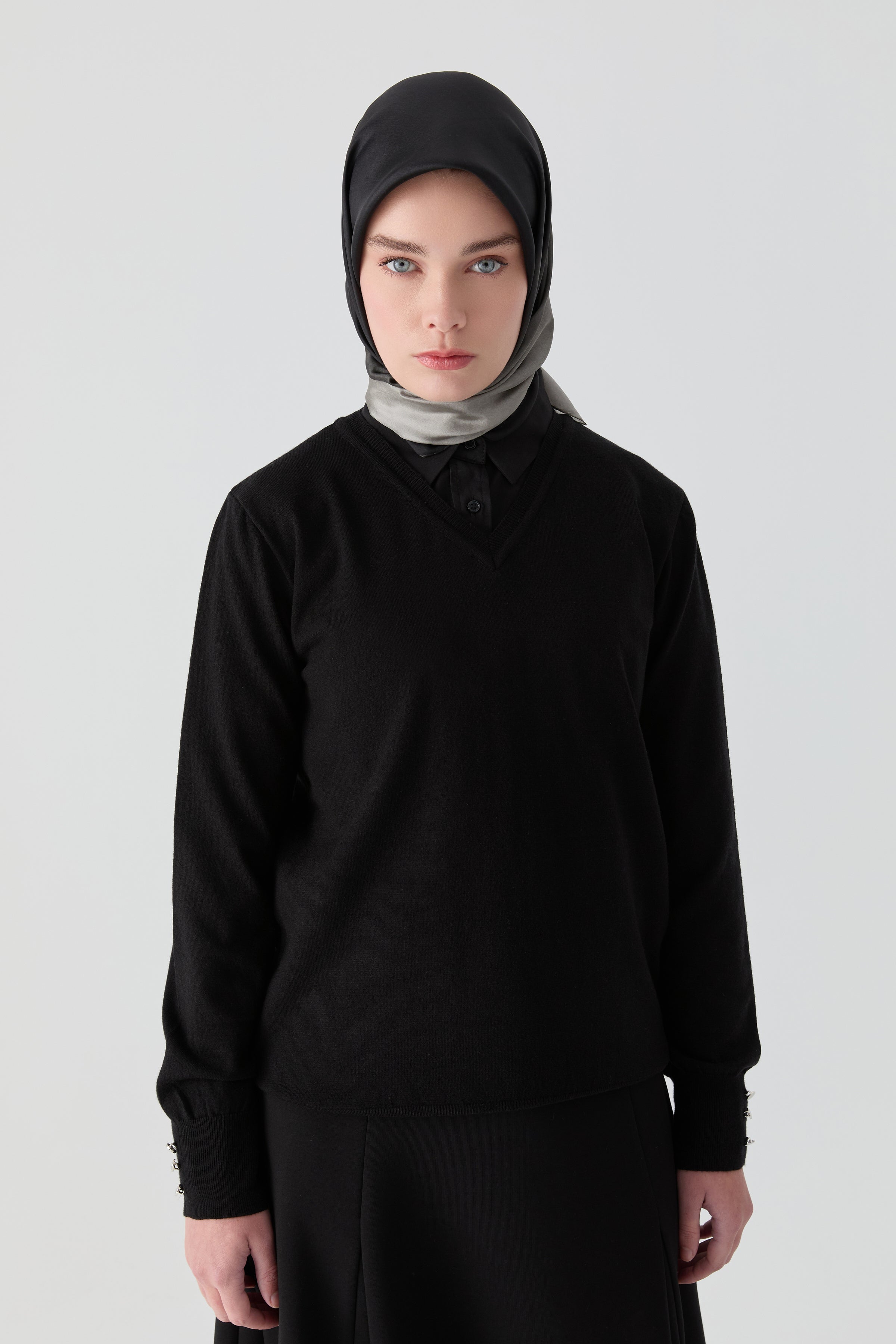 V Yaka Kol Düğme Detaylı Kazak - Siyah