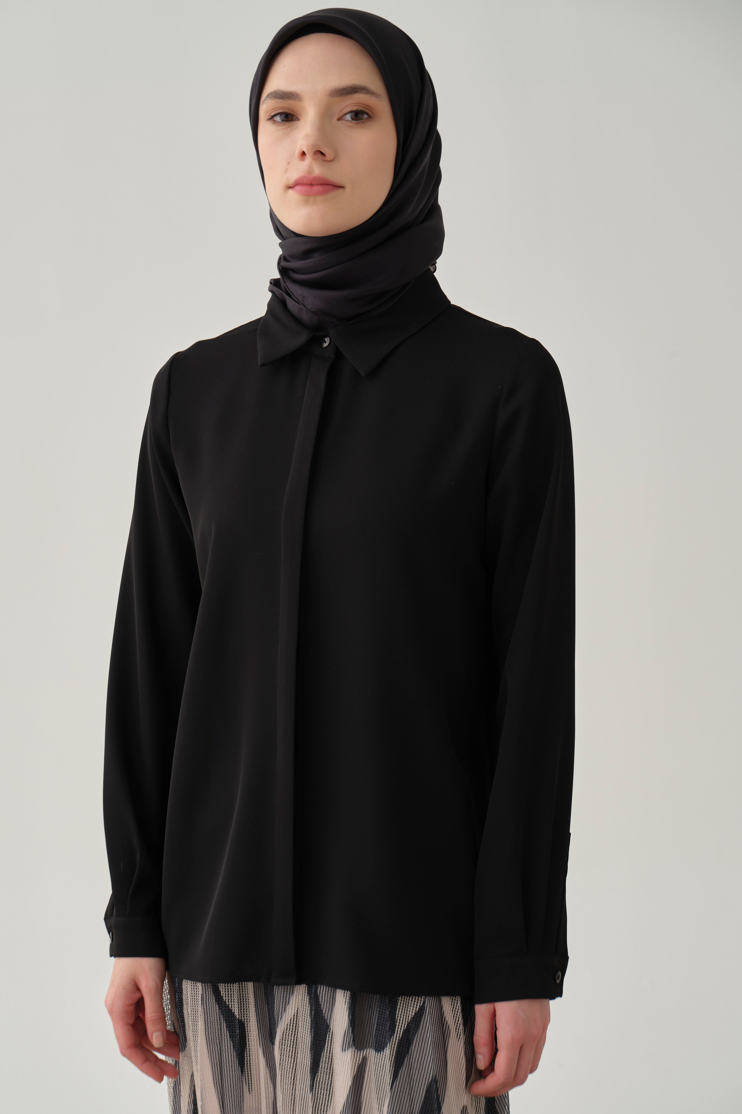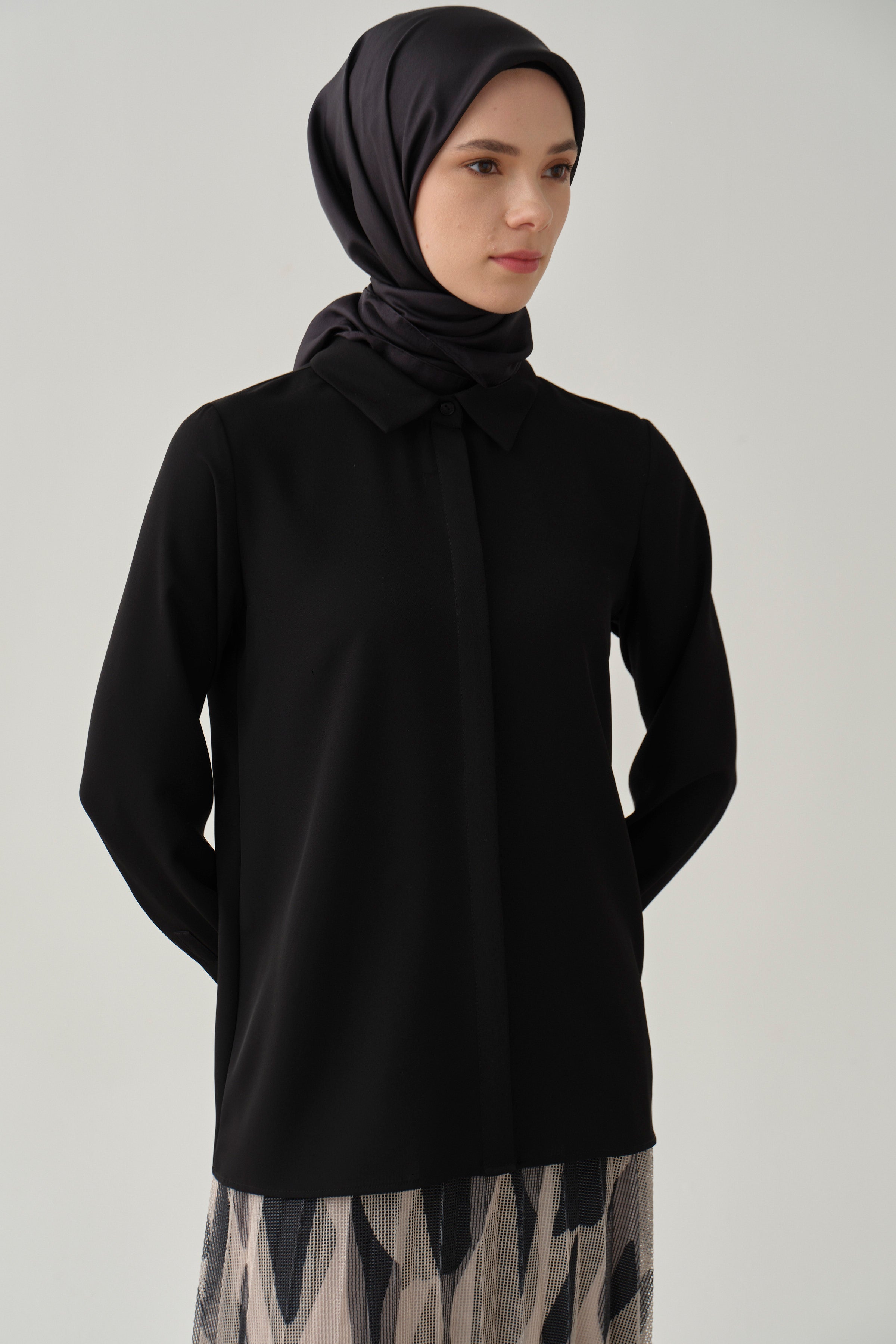Basic Gizli Patlı Gömlek - Siyah