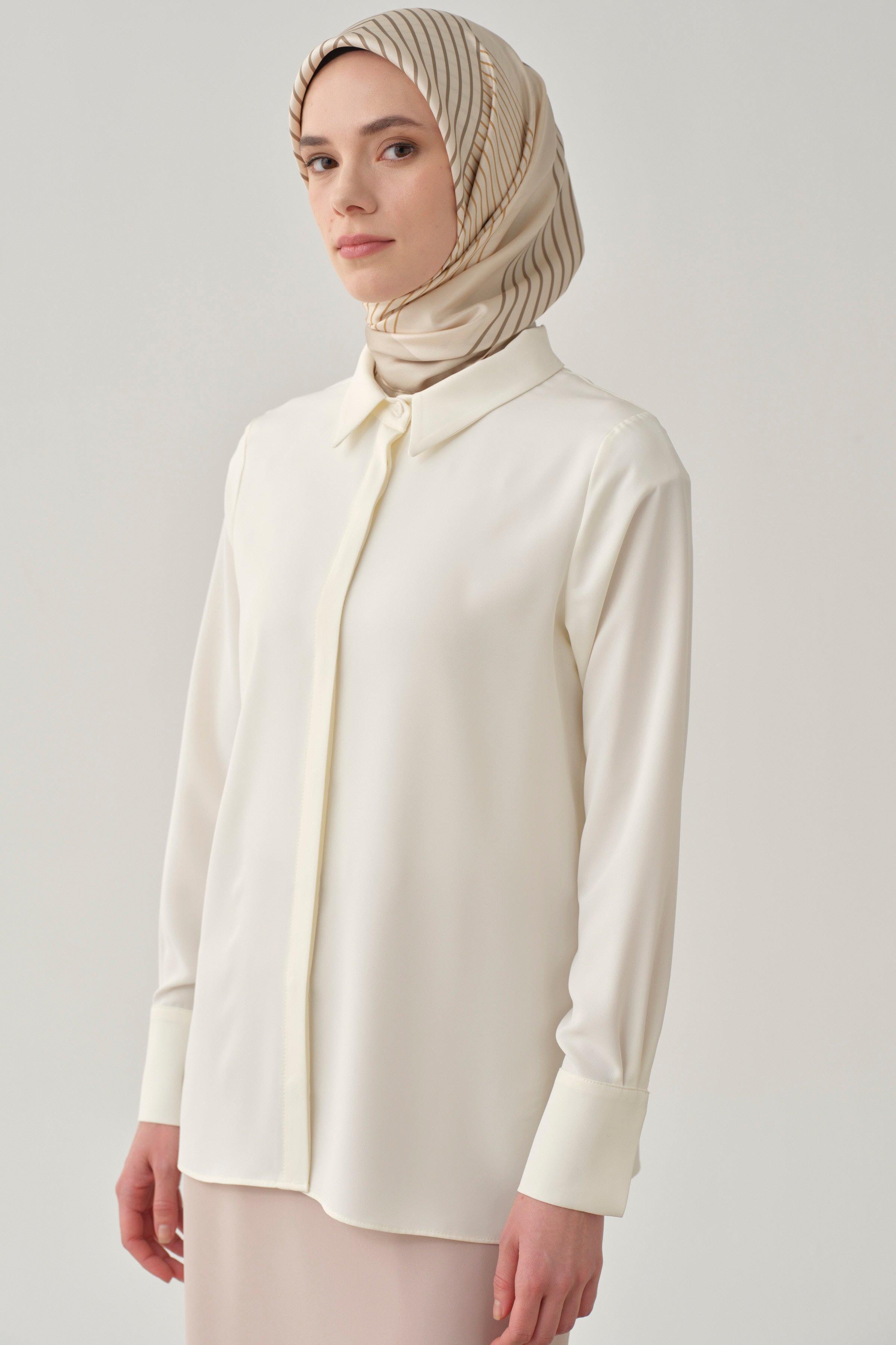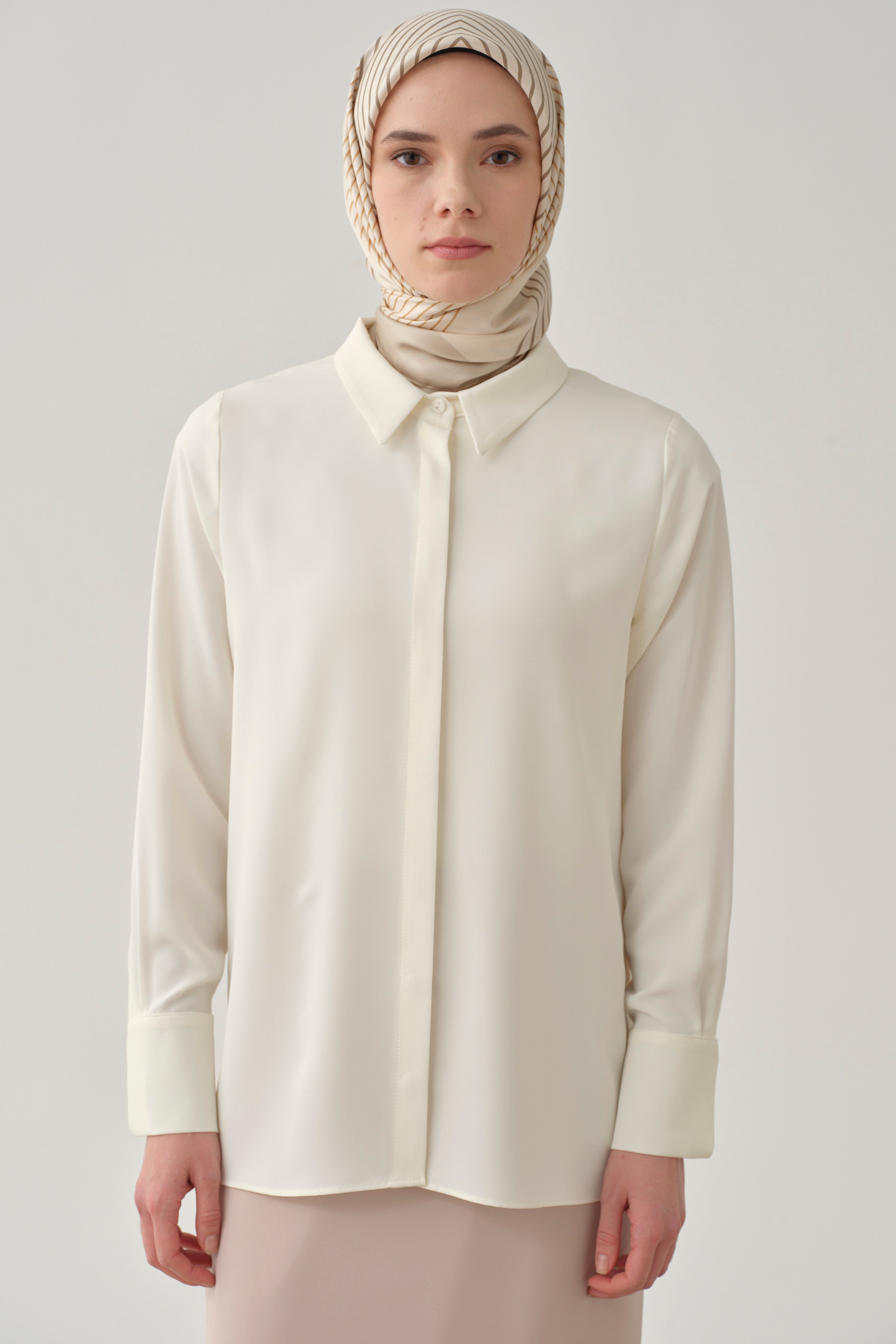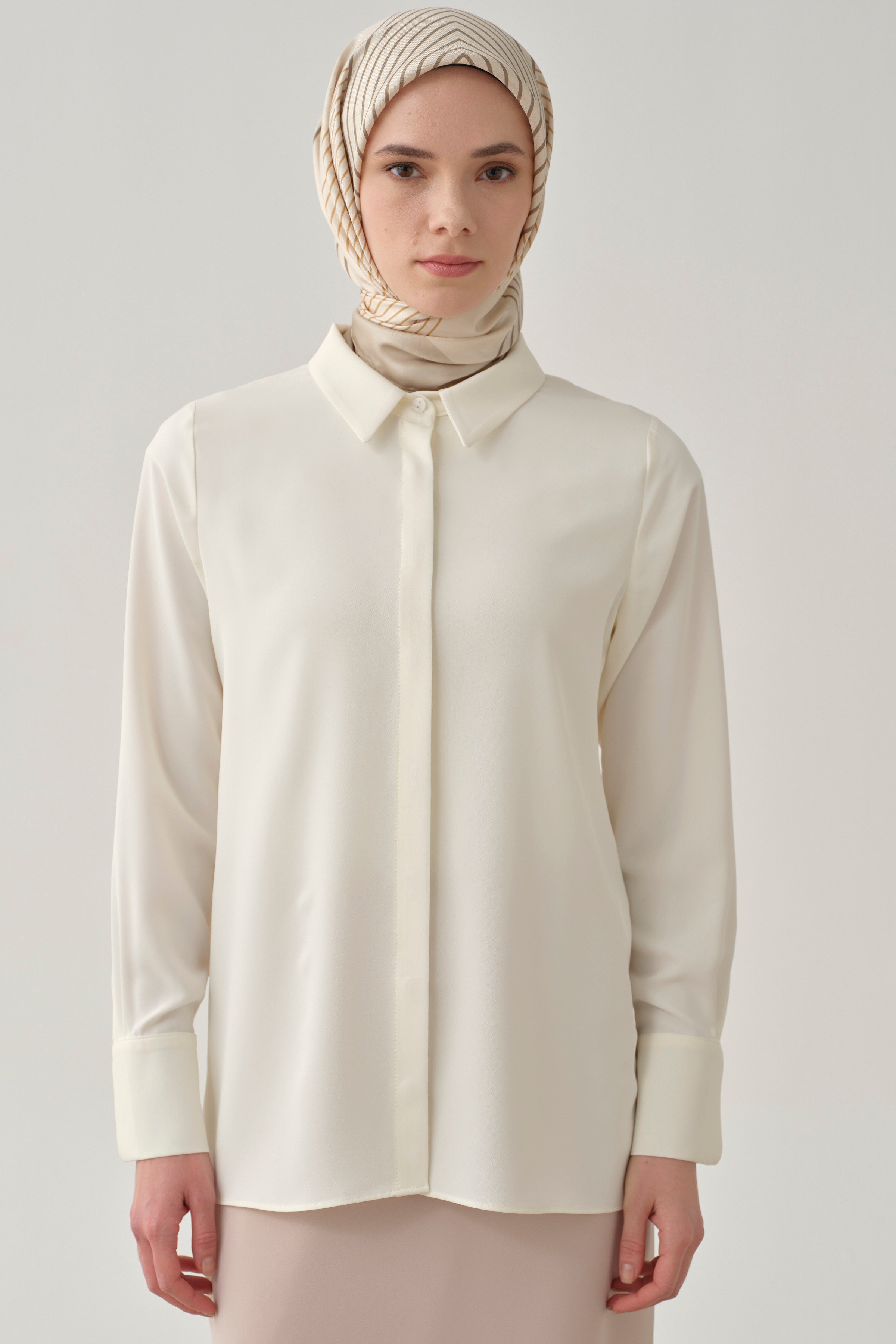 Gizli Patlı Basic Gömlek, zarif ve sade bir şıklık arayanlar için ideal bir seçimdir. Gizli düğme detayları, gömleğe modern bir görünüm kazandırırken, klasik kesimi her vücut tipine uyum sağlar.