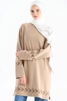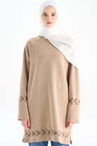 Nakış Detaylı Örme Tunik - Camel