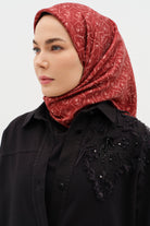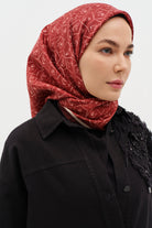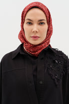 Çerçeveli Twill İpek Eşarp - Kırmızı