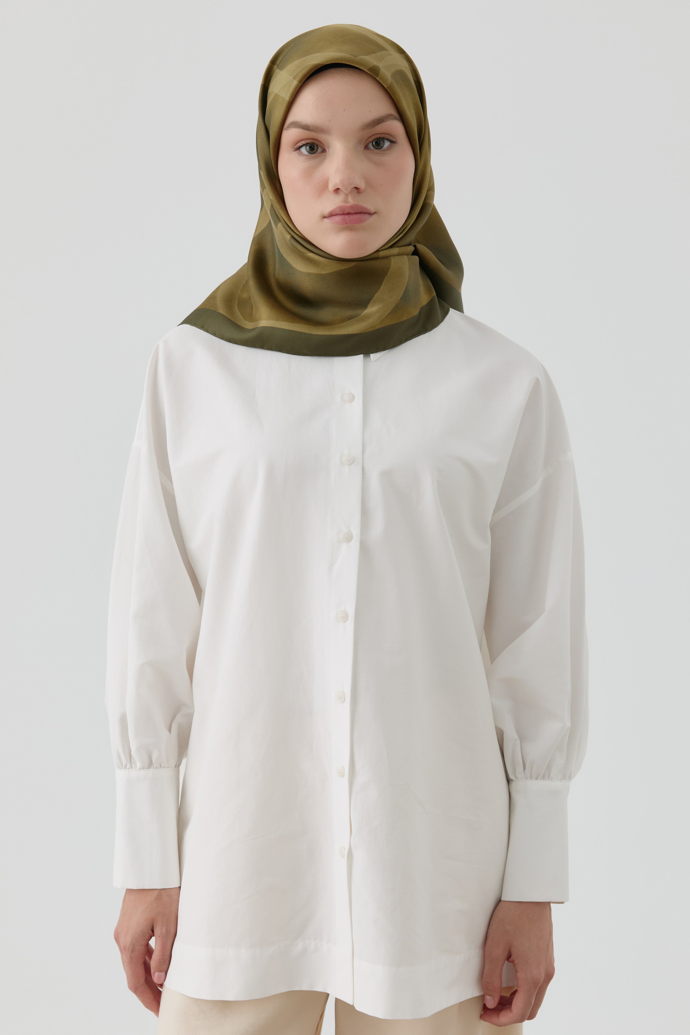 Renklerin dansını ve çizgilerin özgürlüğünü bir araya getiren soyut desen twill ipek eşarp, her bağlamada farklı bir hikâye anlatır.