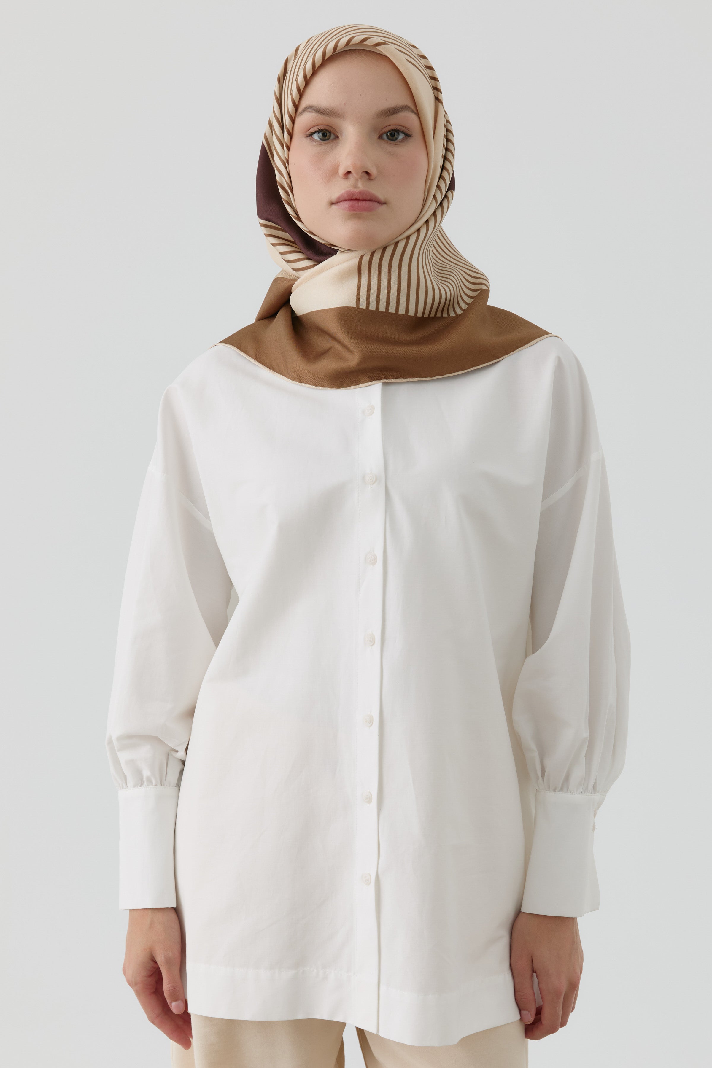 Tok dokusu ve zarif parlaklığıyla öne çıkan twill ipek eşarp, kaymayan yapısıyla gün boyu rahat bir kullanım sunar. Hem klasik hem modern kombinlere kolayca uyum sağlar. Şıklığı ve konforu bir arada arayanlar için vazgeçilmez bir parçadır.
