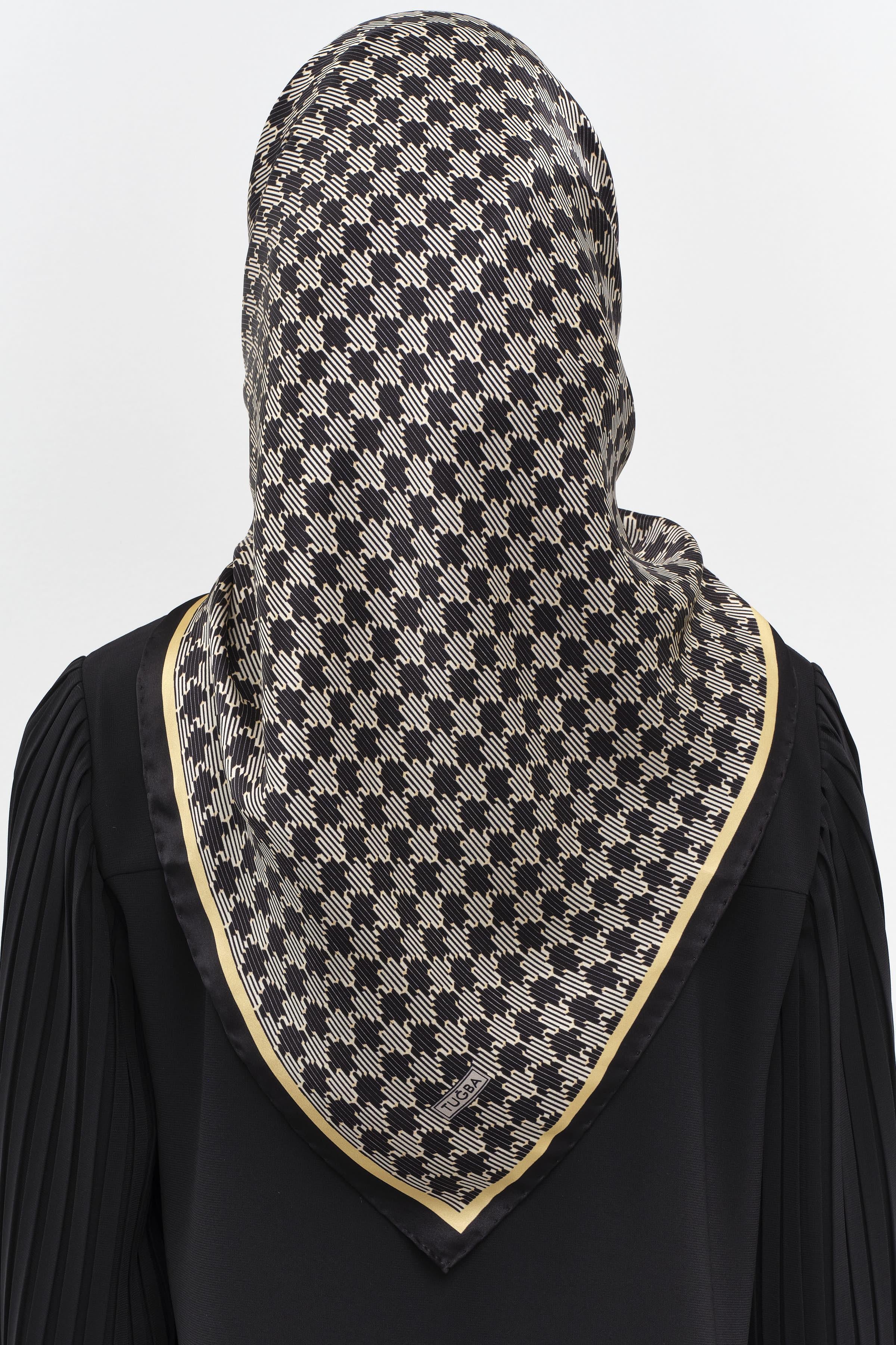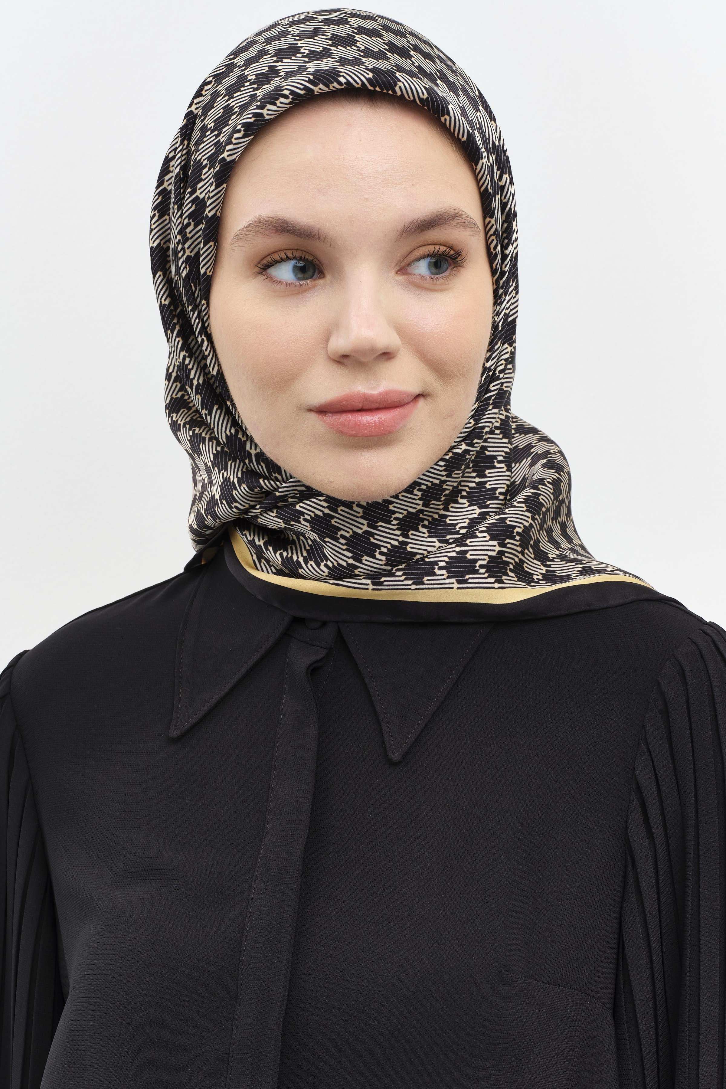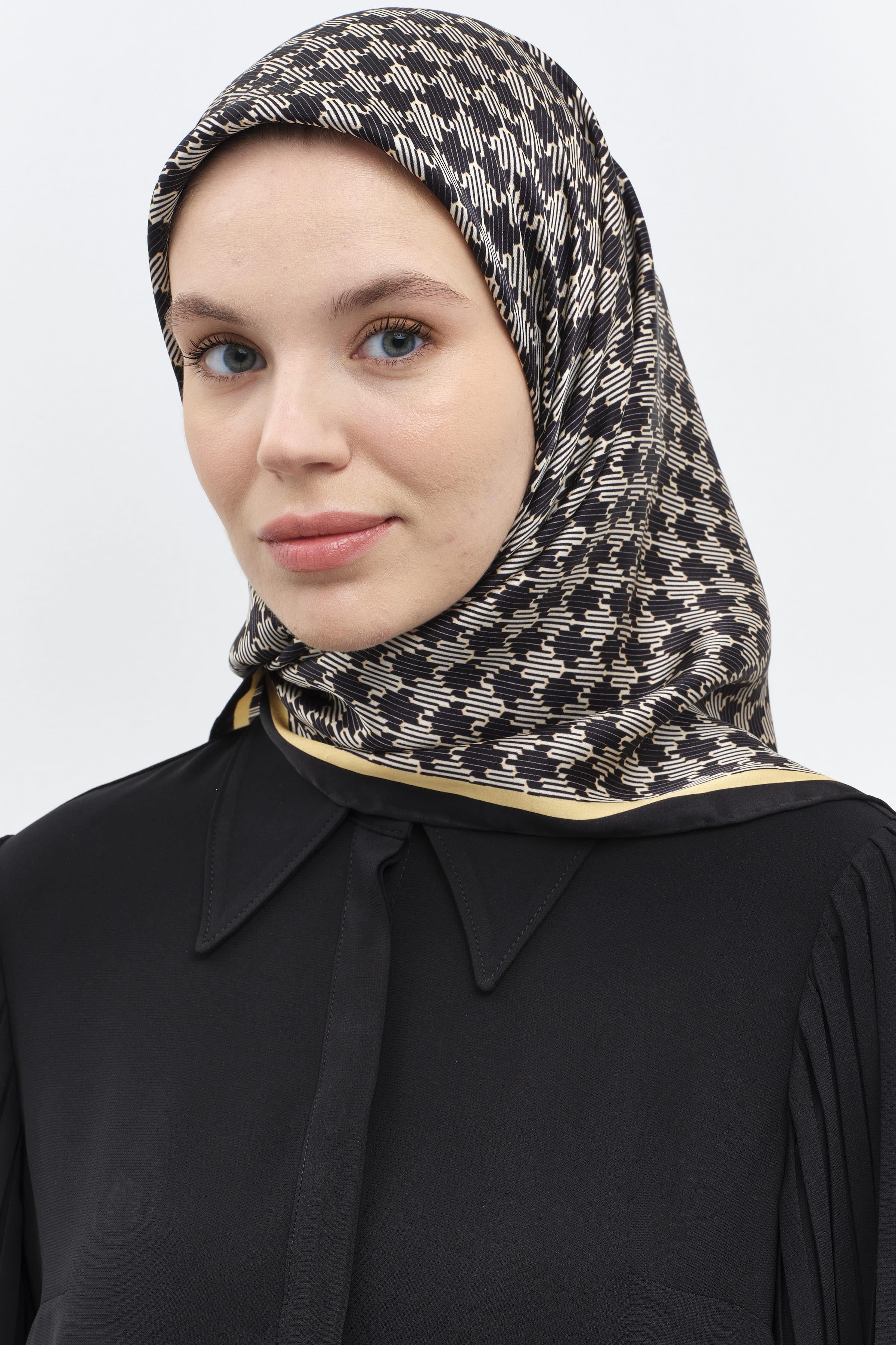 Mini Geometrik Desen İpek Eşarp - Siyah