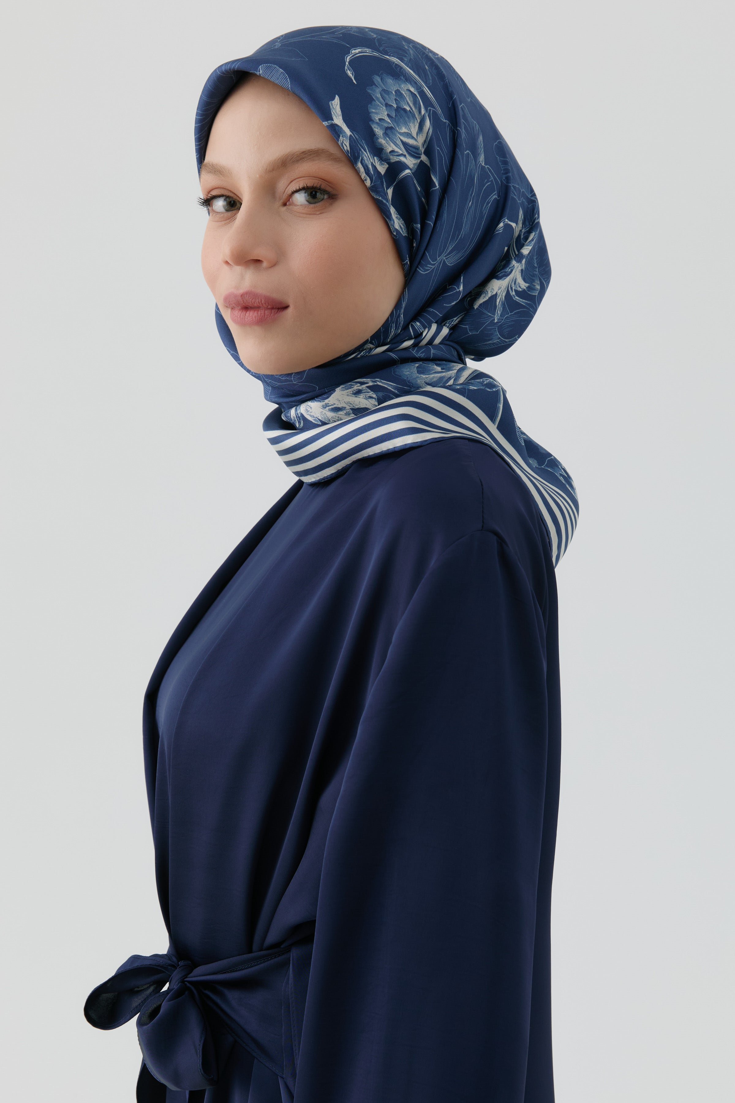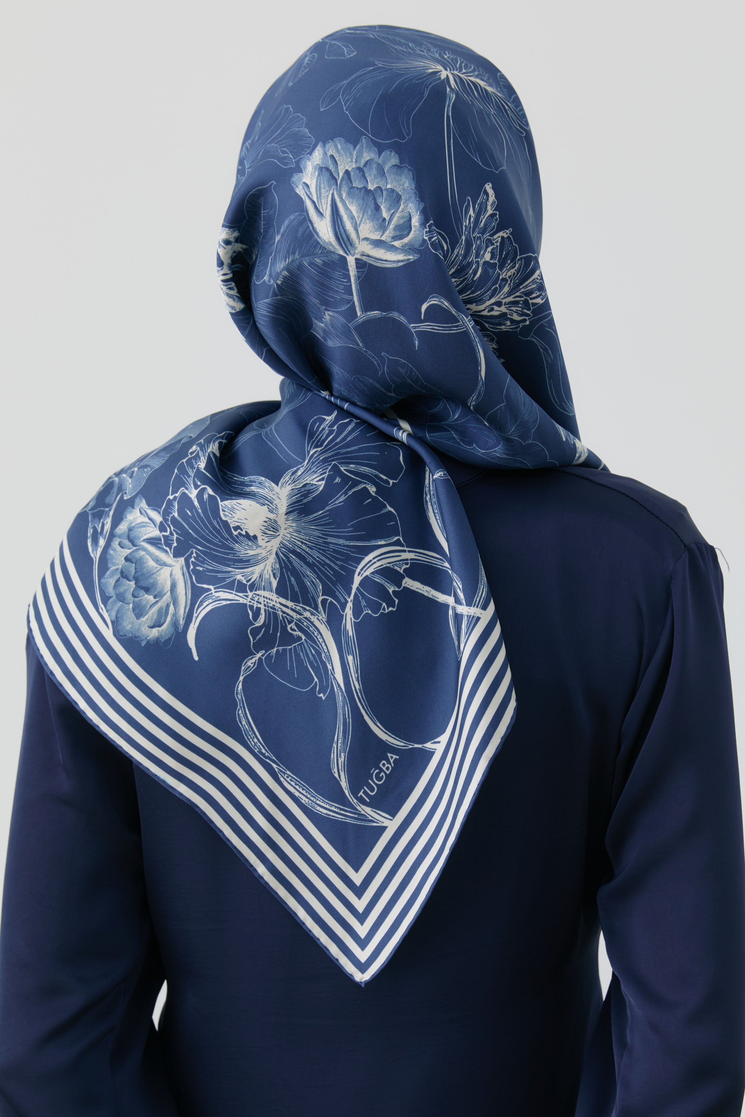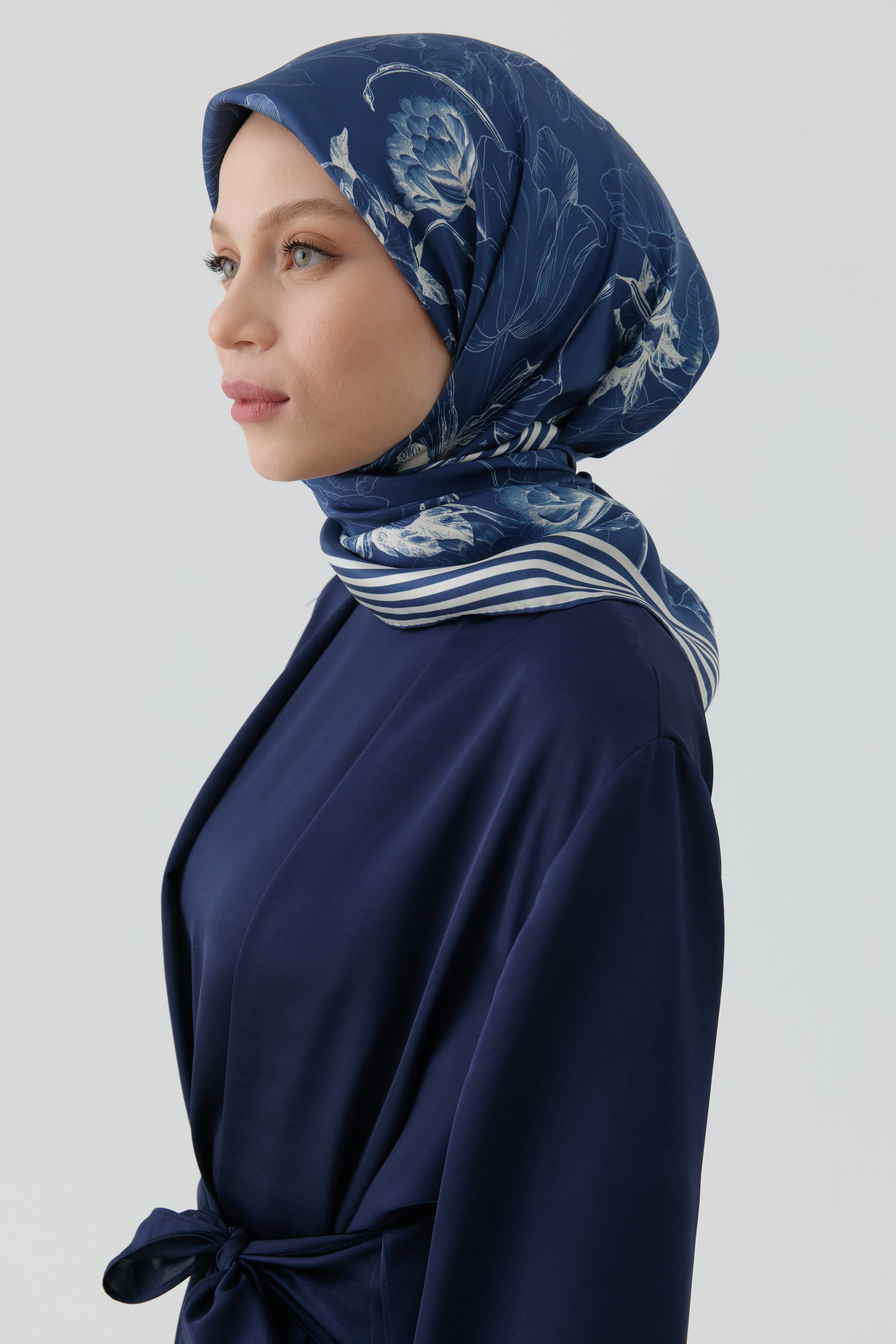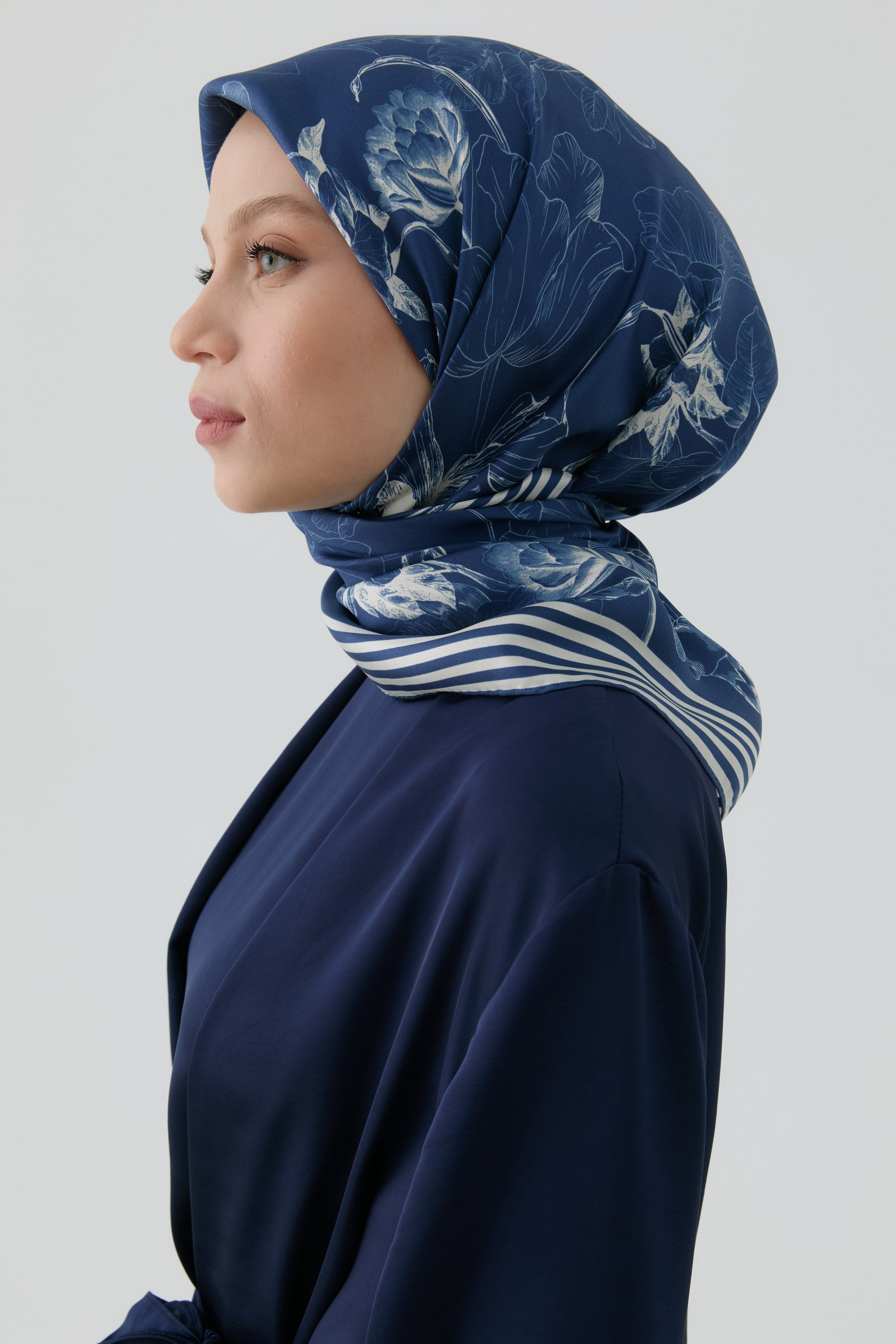 Nazenin Twill İpek Eşarp - Koyu Mavi