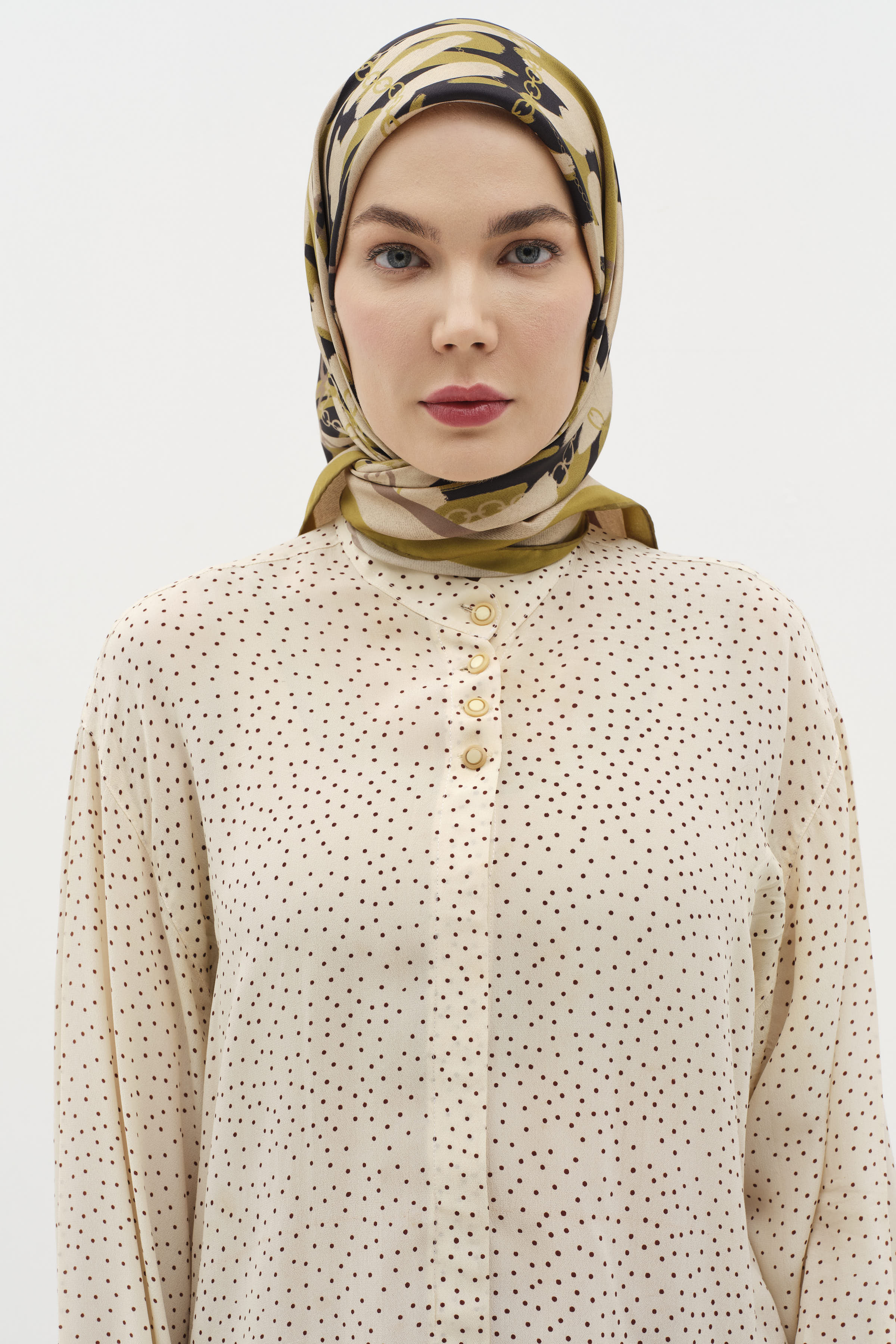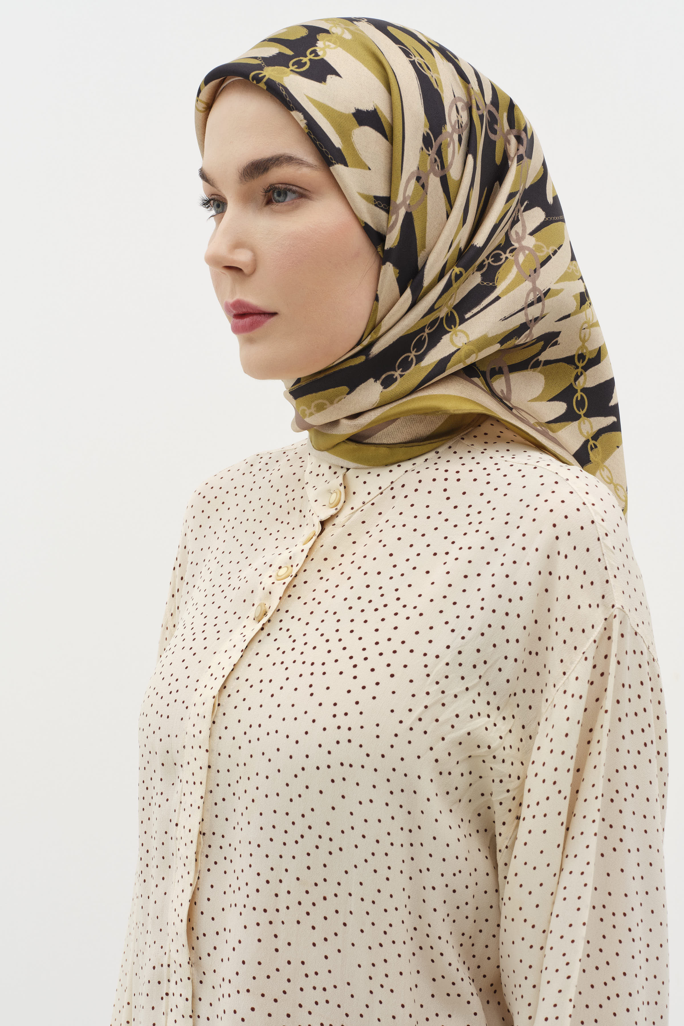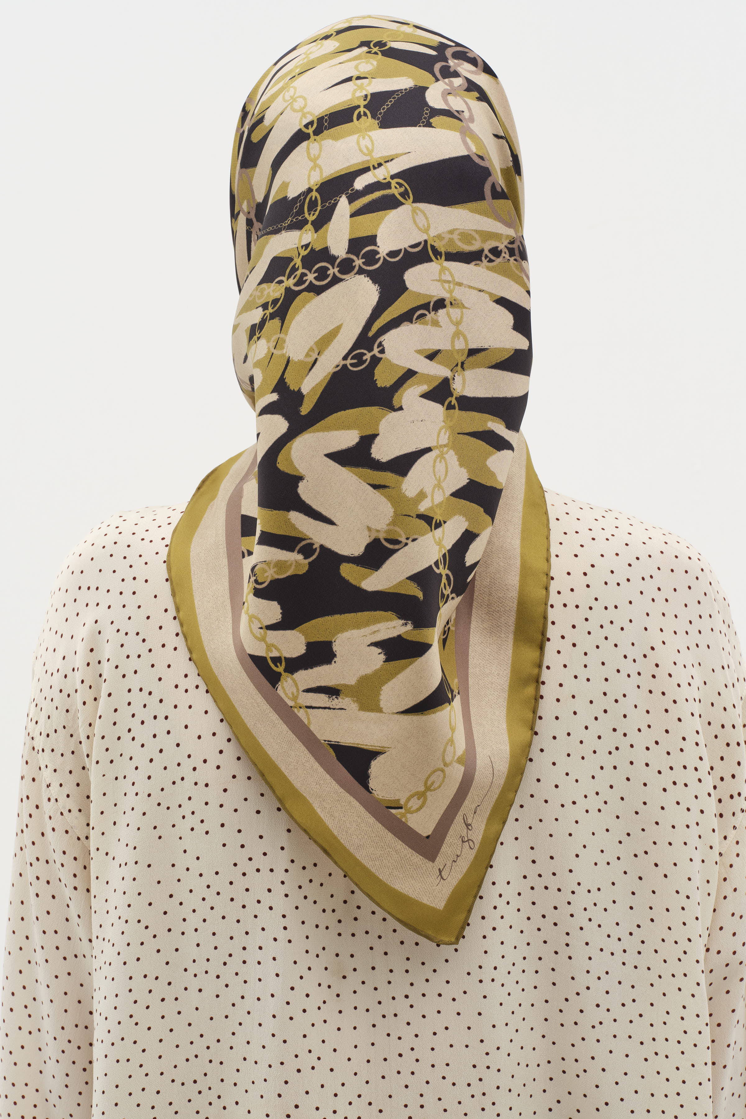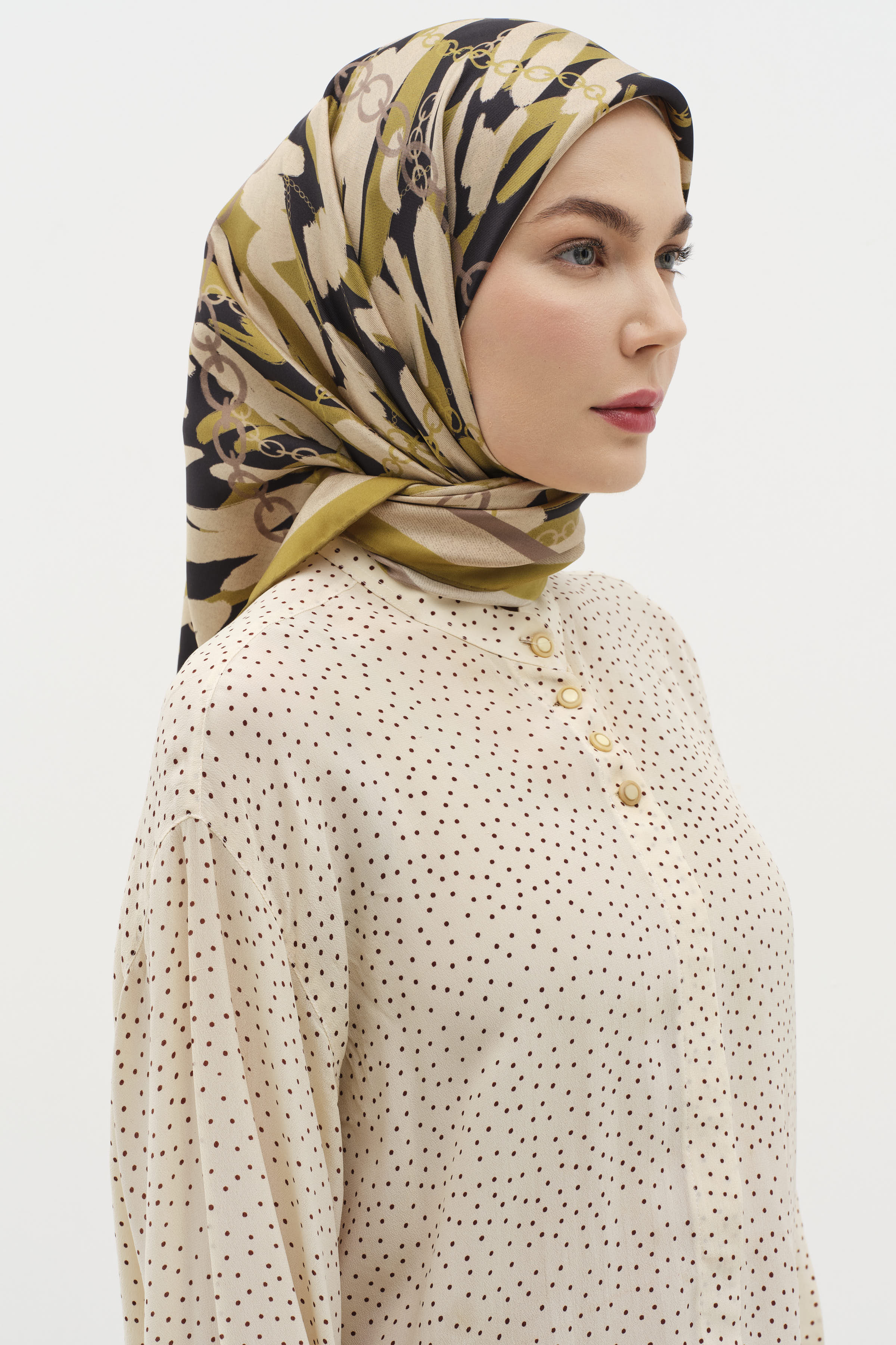 Zincir Desen Twill İpek Eşarp - Fıstık Yeşili