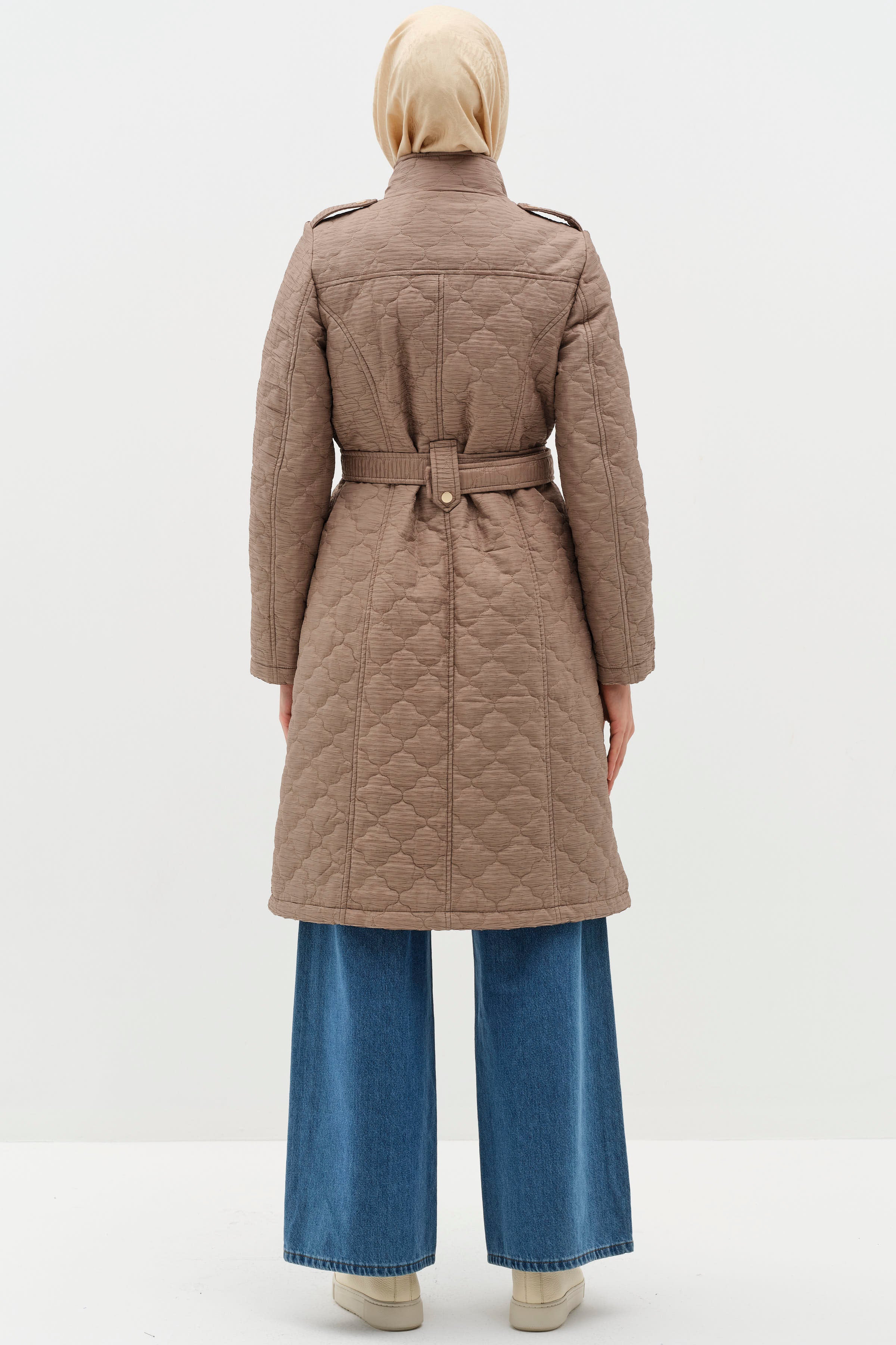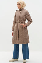 İnce Kapitone Kemerli Kaban - Vizon