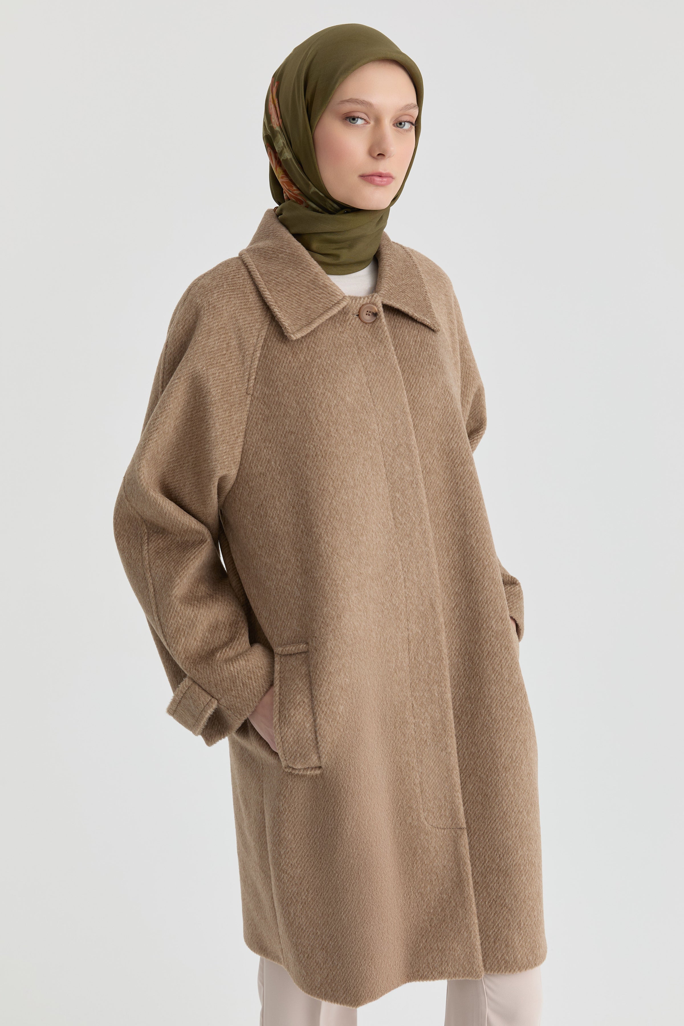 Gizli Pat Detaylı Kaban - Vizon