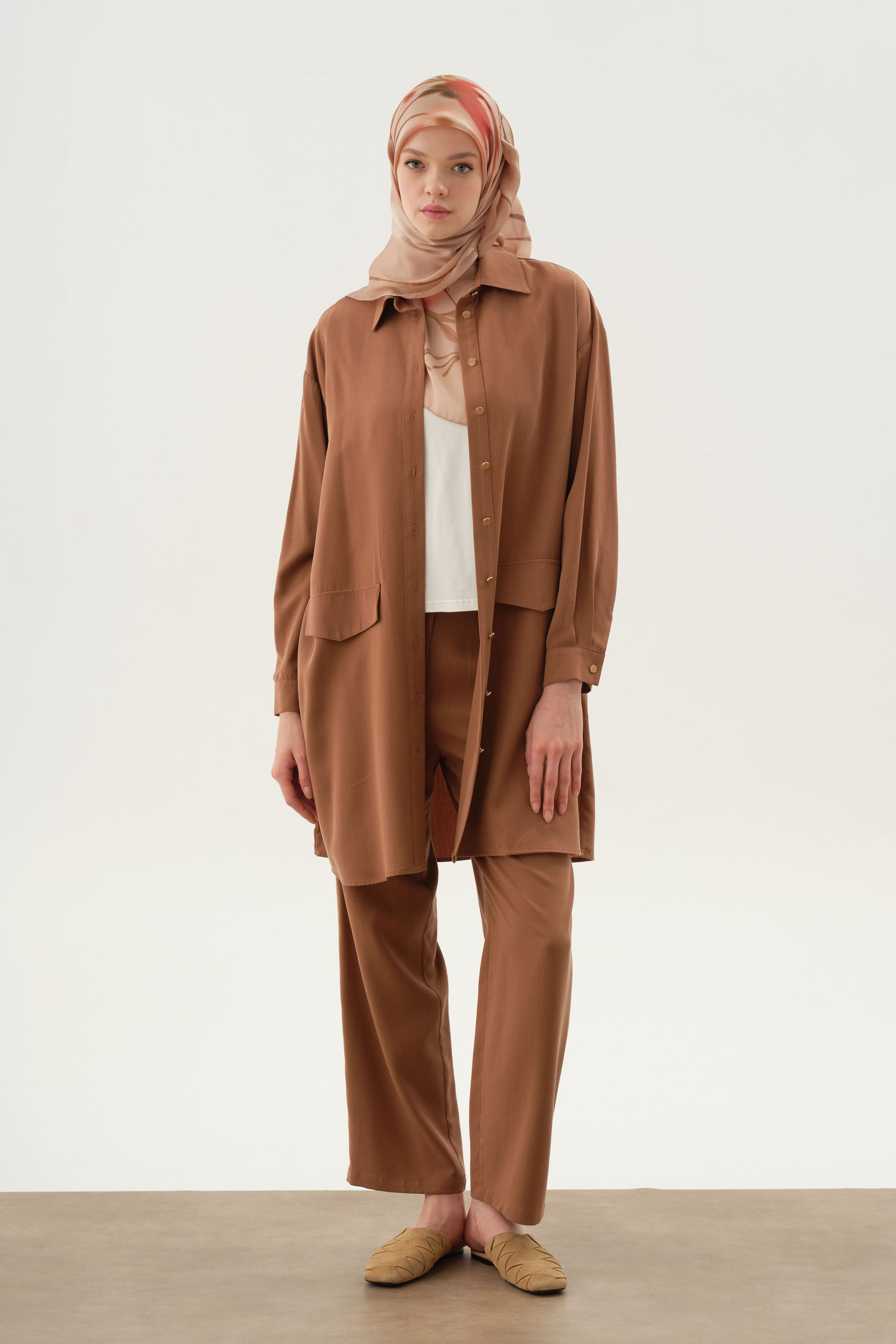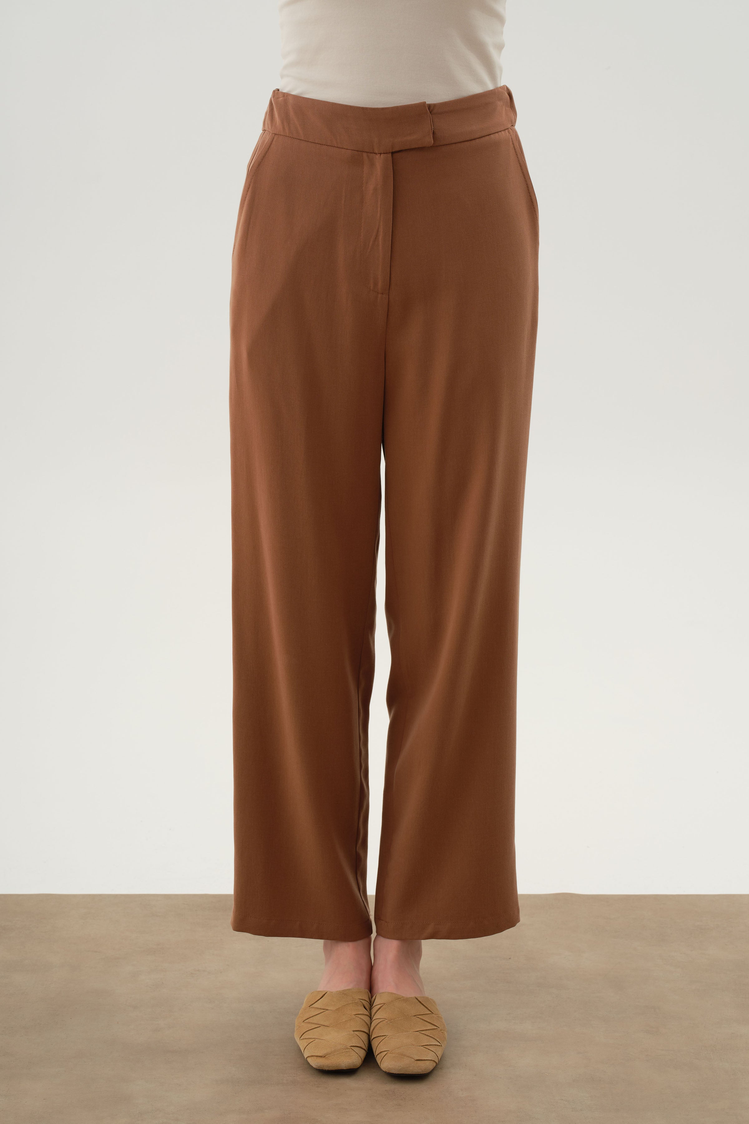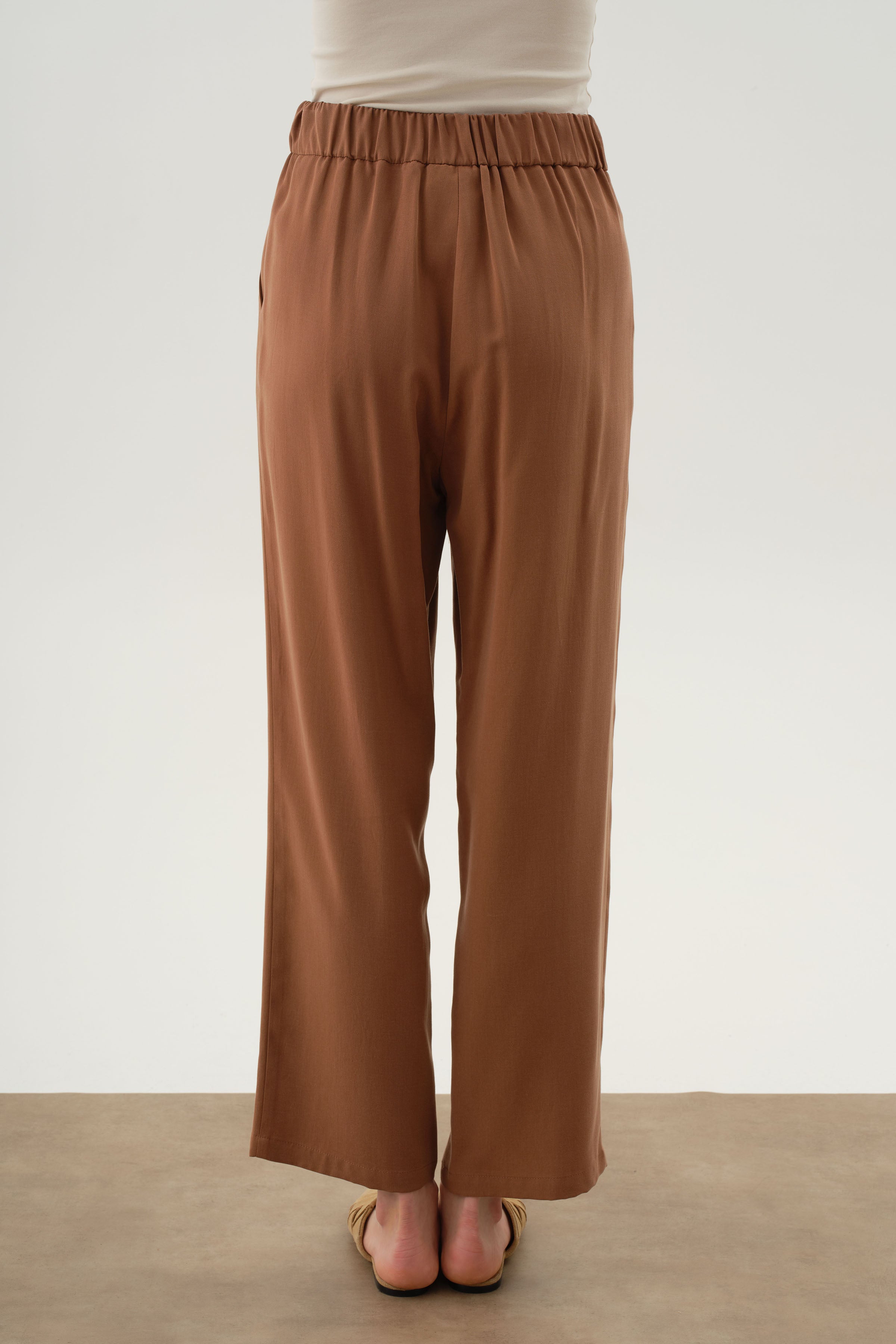 Arka bel kısmındaki lastik detayı sayesinde hem şıklık hem de konfor sunan bu pantolon, hareket özgürlüğü sağlar. Düz ve sade formuyla farklı üst parçalarla kolayca kombinlenebilir. Günlük kullanım için pratik ve zarif bir seçenektir.