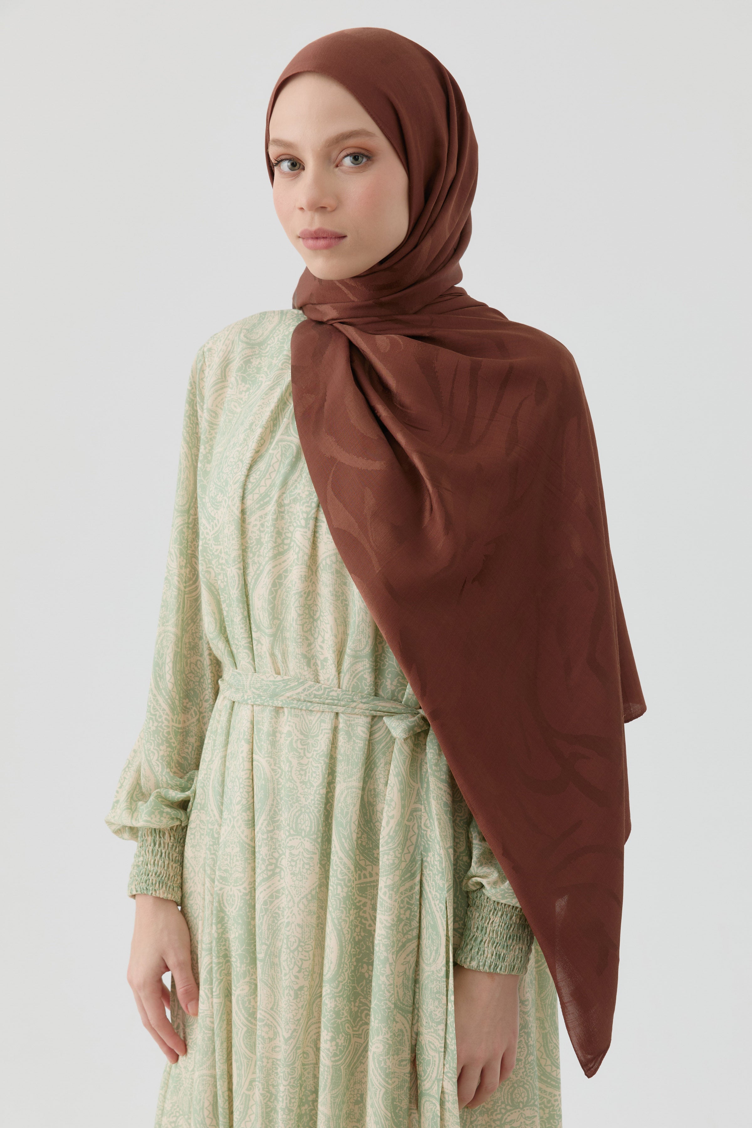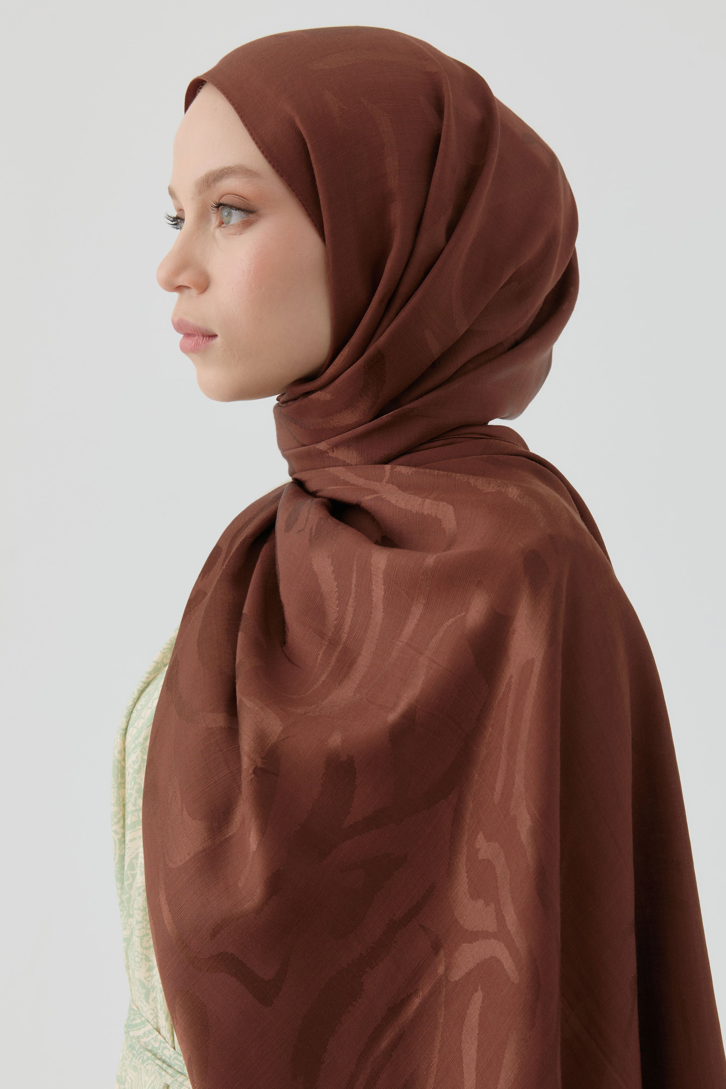 Dalgalı Nida Naturel Şal - Kahve