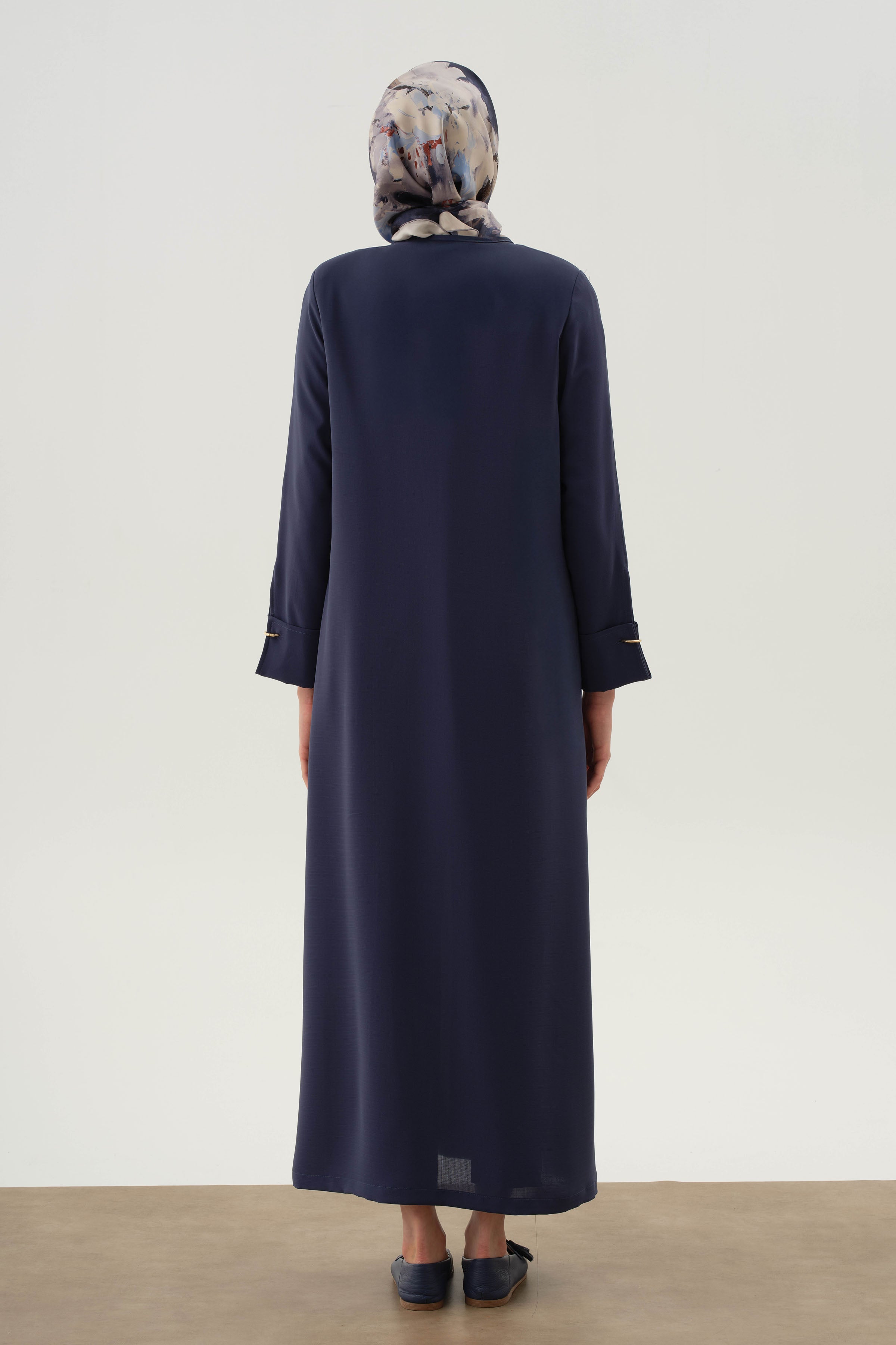 Duble manşet detaylarıyla zarif bir duruş sergileyen bu ferace, sade tasarımıyla şıklığı ön plana çıkarır. Akıcı yapısı ve rahat kesimiyle konforlu bir kullanım sunar. Günlük stilinize modern ve zarif bir dokunuş ekler.