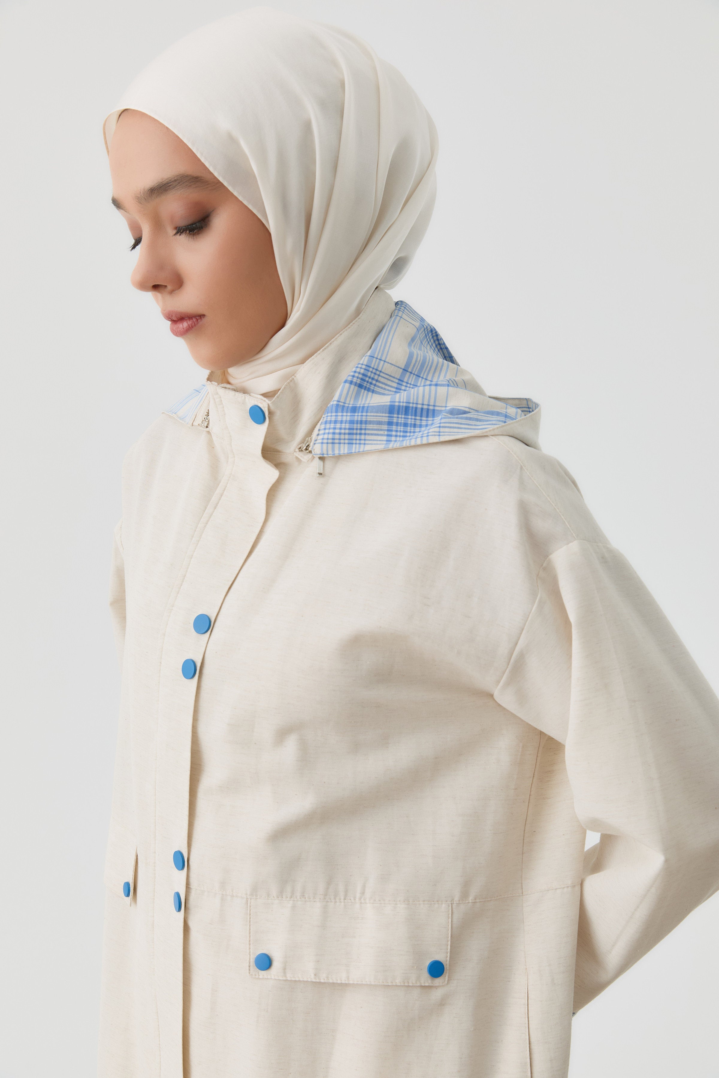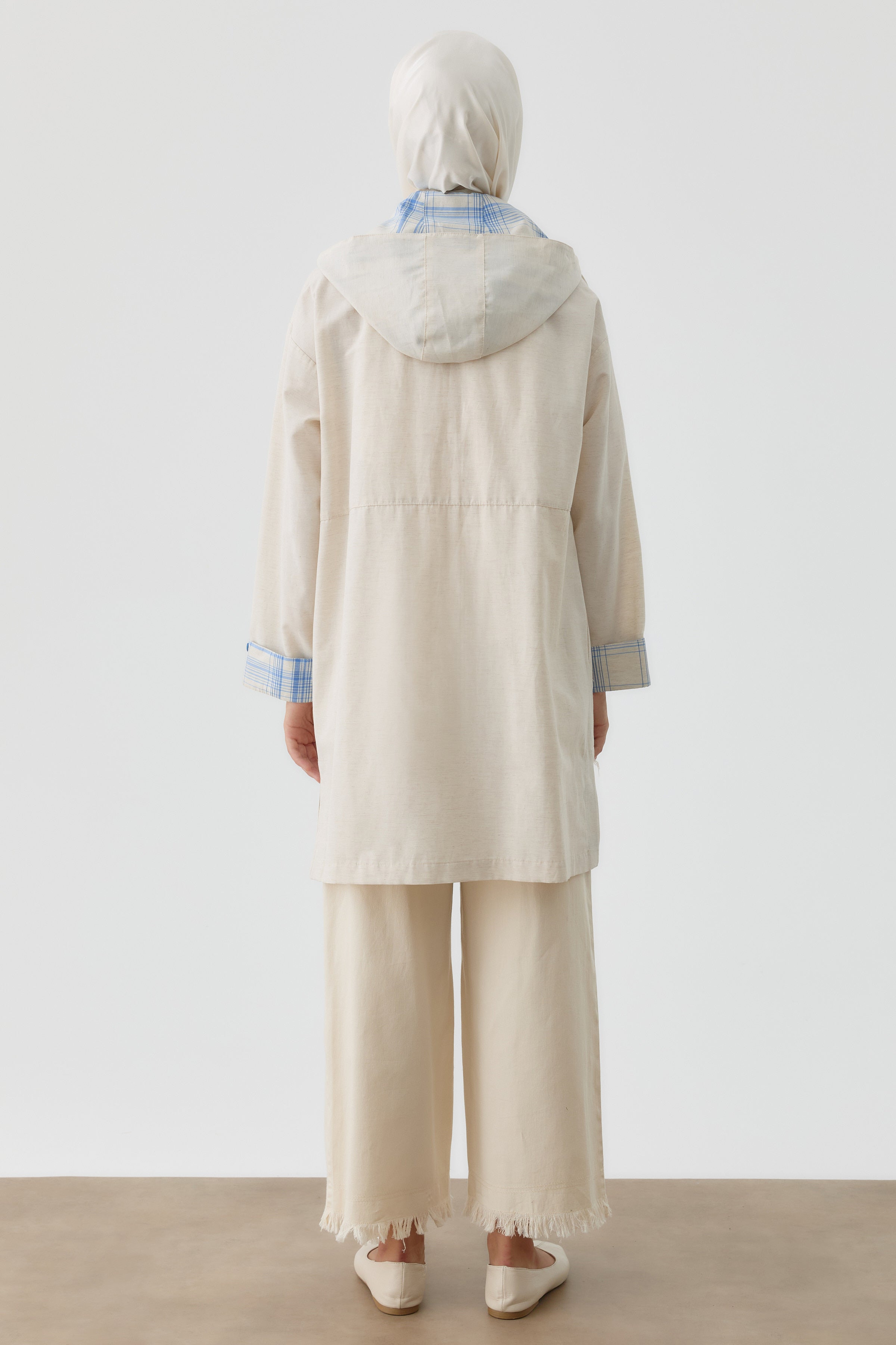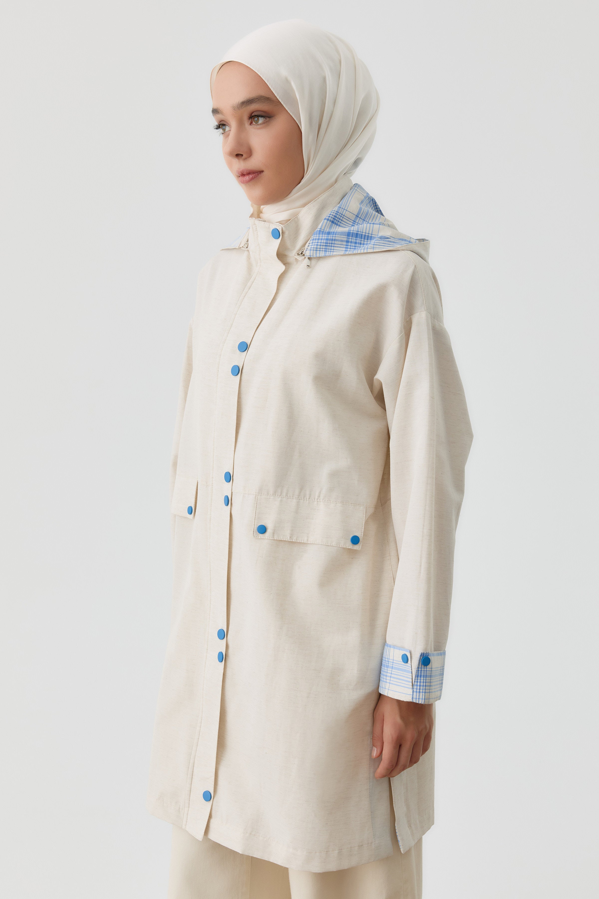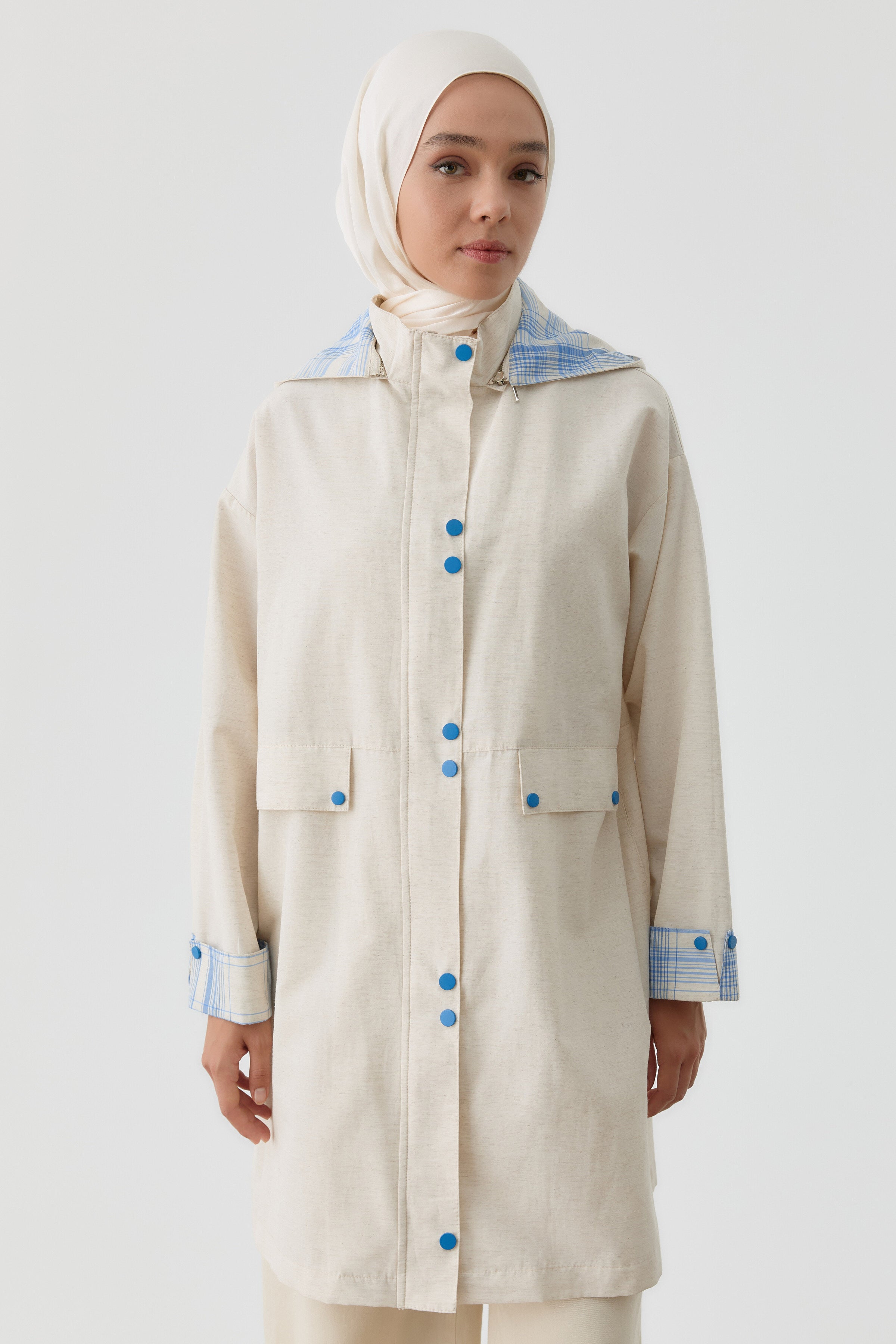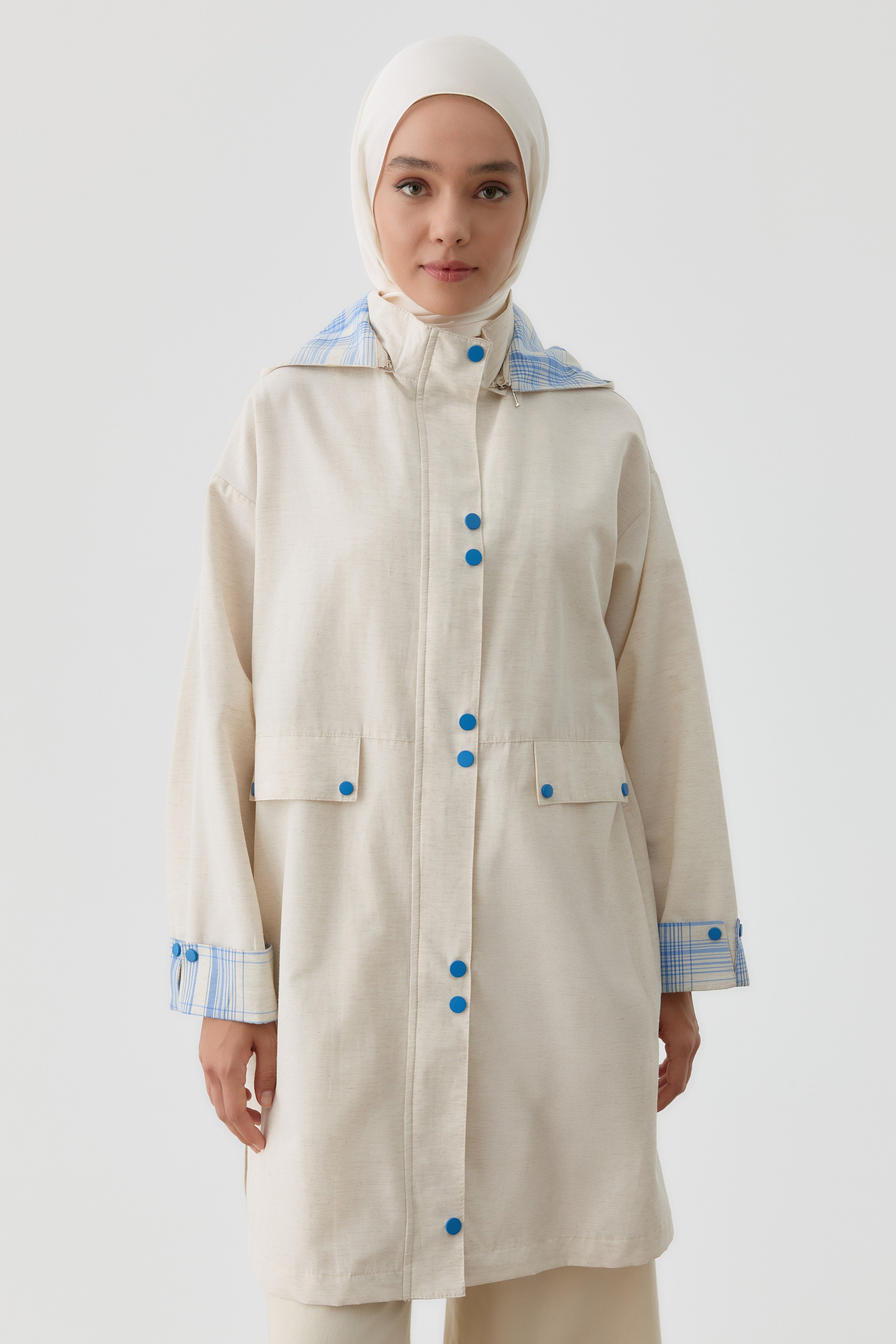 Ekose Kombinli Çıtçıt Detaylı Kap - Bej - İndigo
