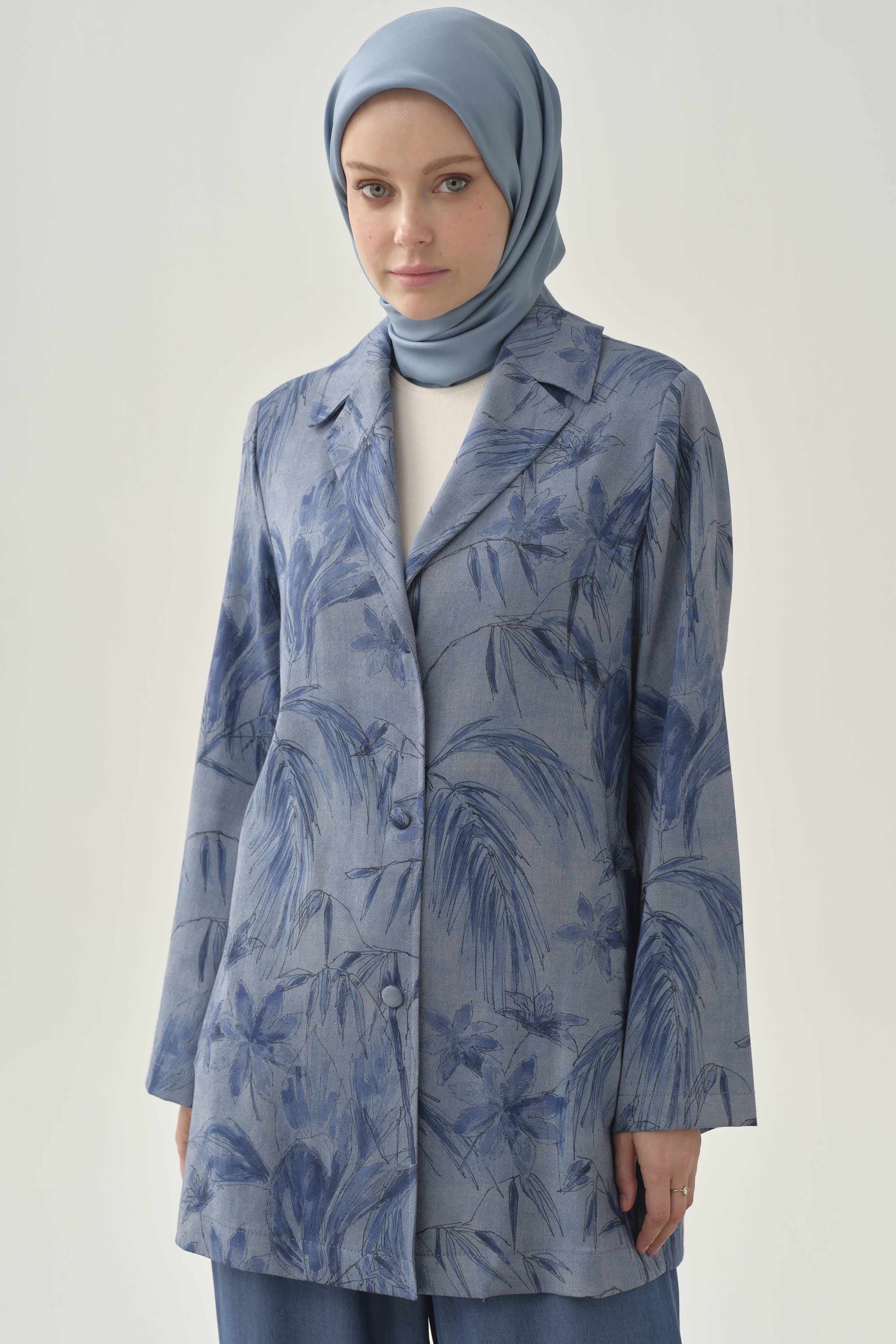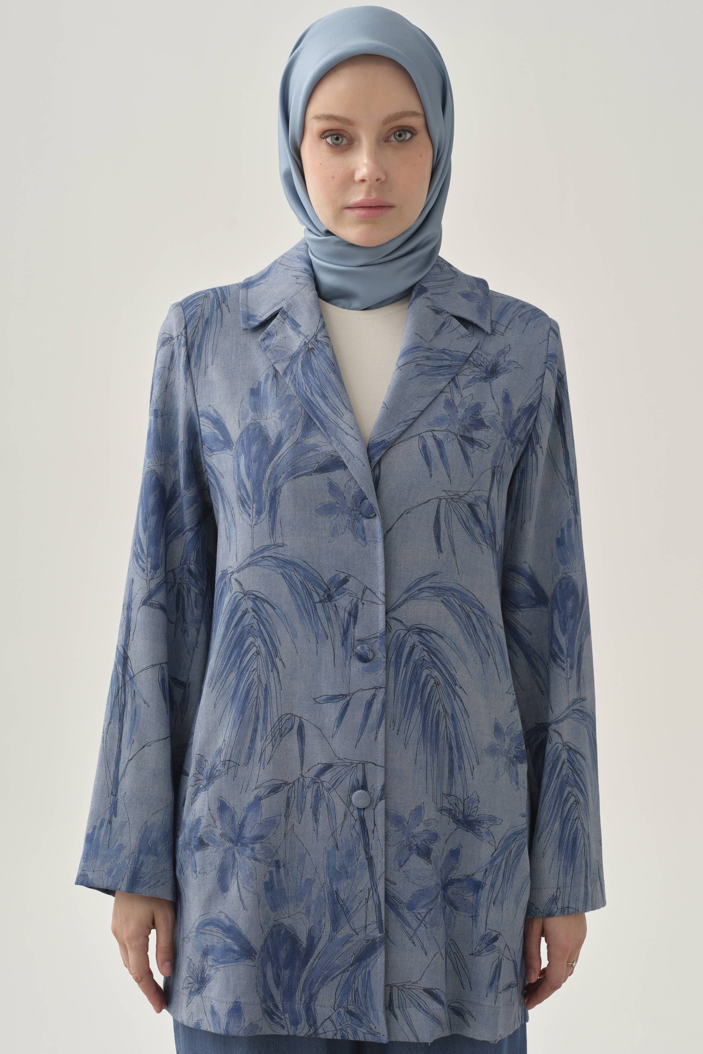 Romantik floral desenlerle bezenmiş bu ceket, klasik kesimiyle zarif bir denge sunar. Hafif yapısı ve çarpıcı deseniyle hem günlük hem özel kombinlerde şıklığı ön plana çıkarır. Modern ve feminen bir stilin tamamlayıcısıdır.