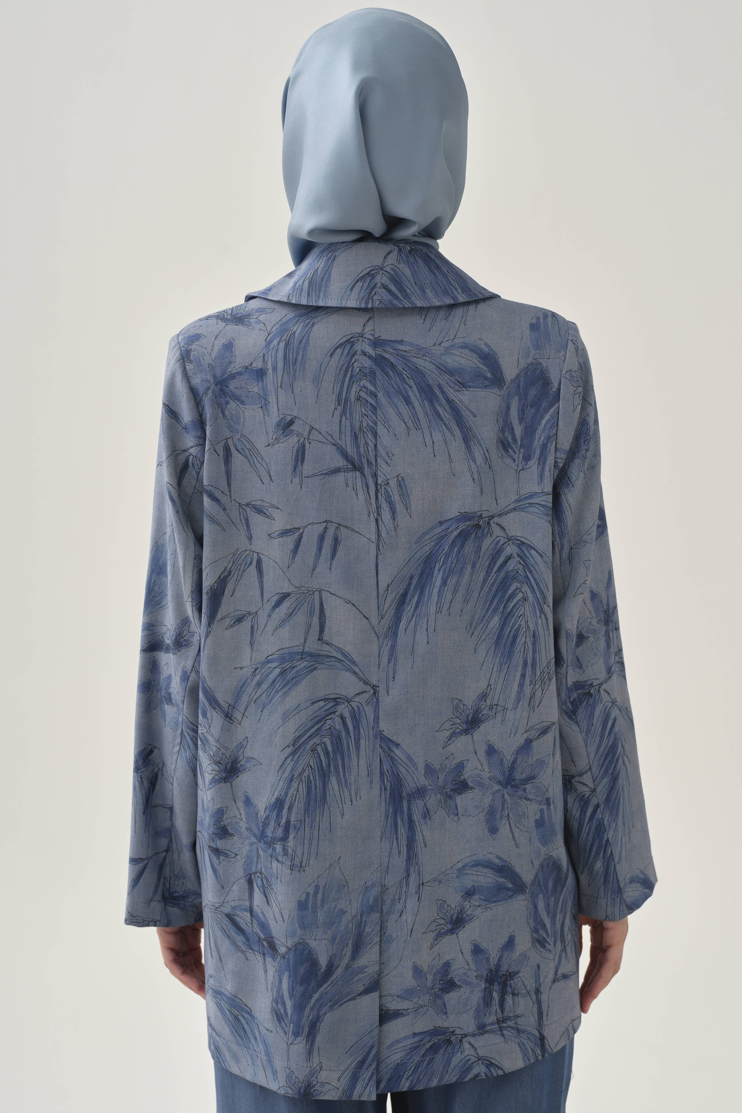 Floral Desenli Ceket - İndigo
