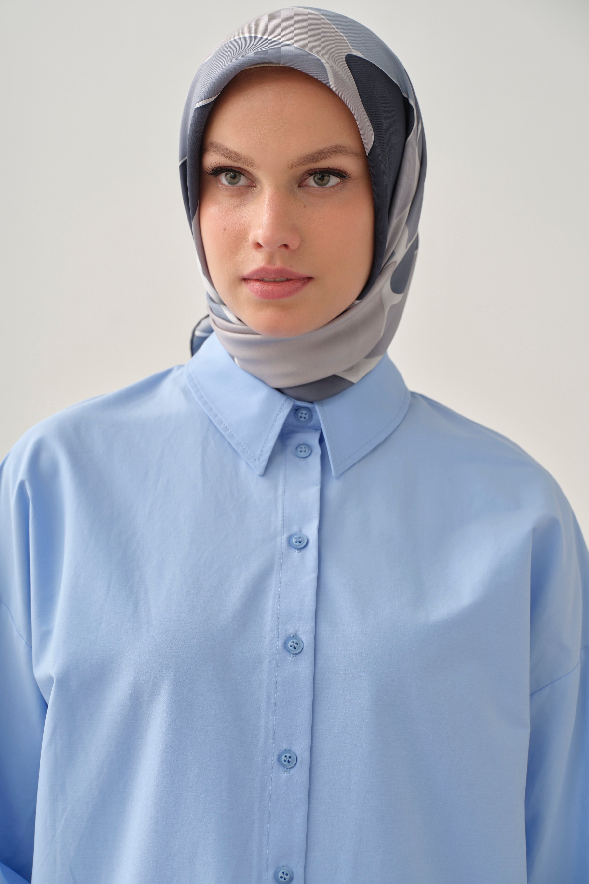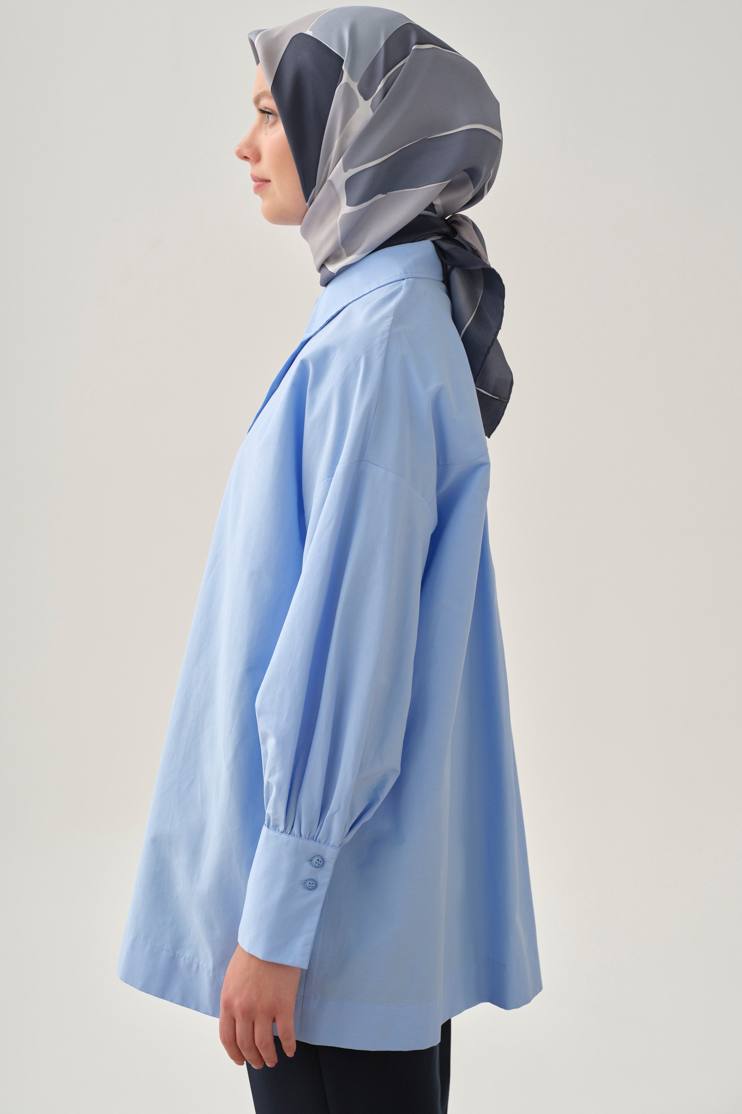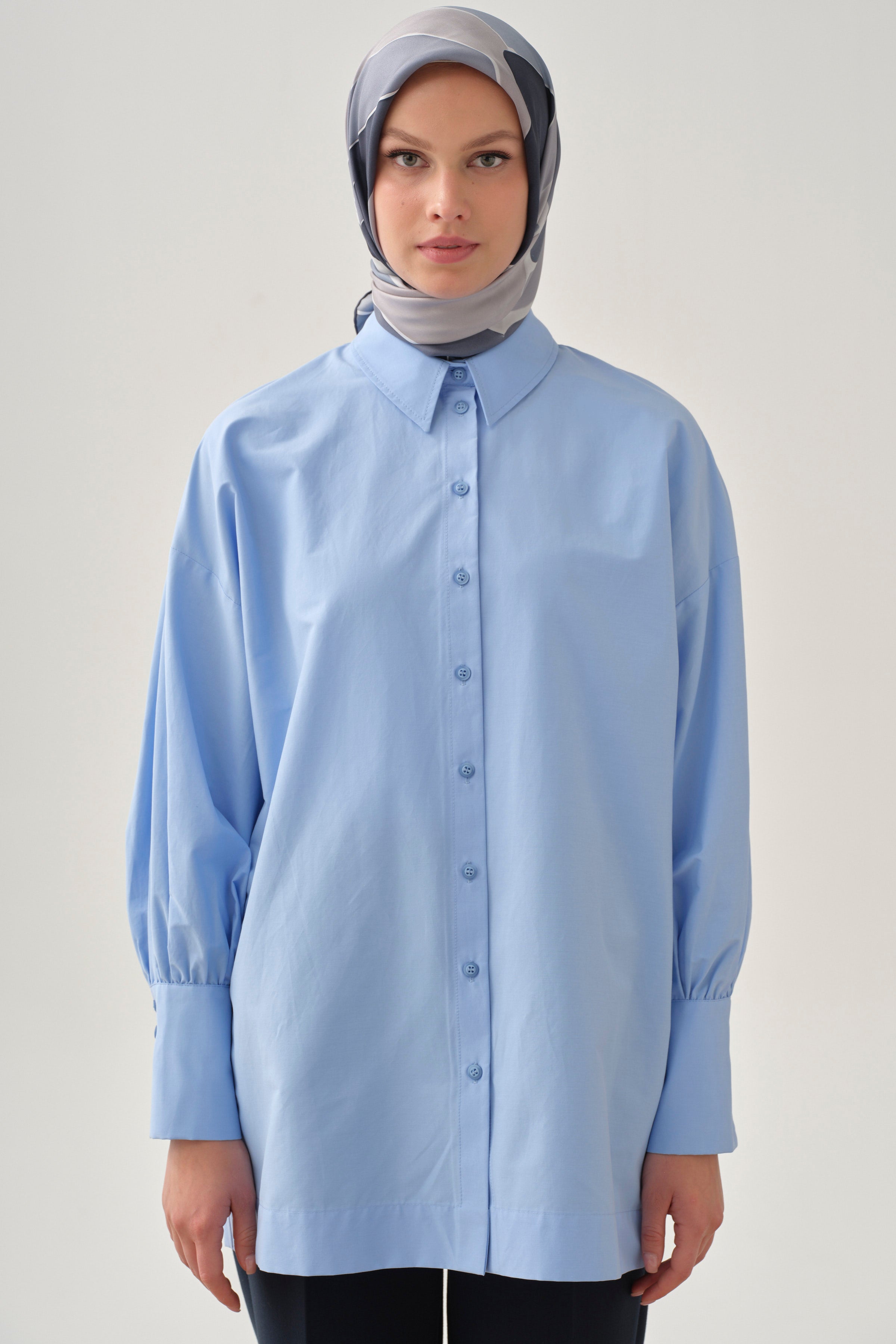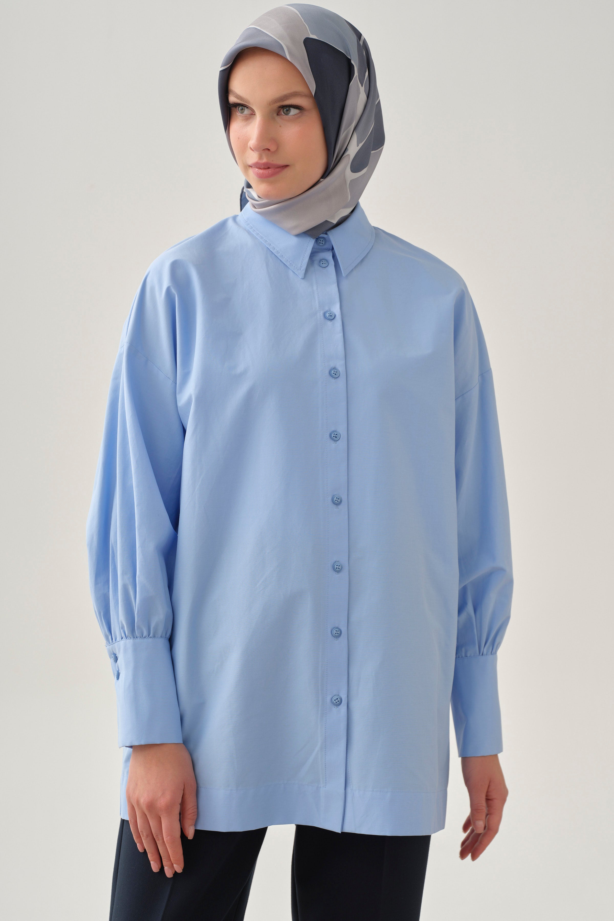 Geniş Manşetli Gömlek - Açık Mavi