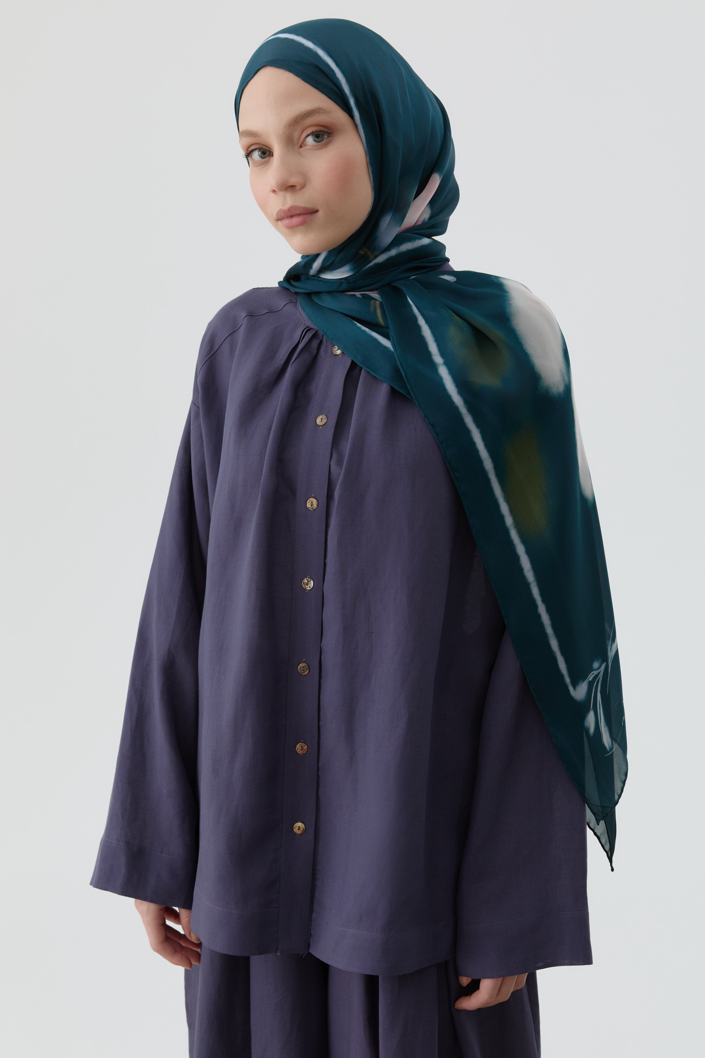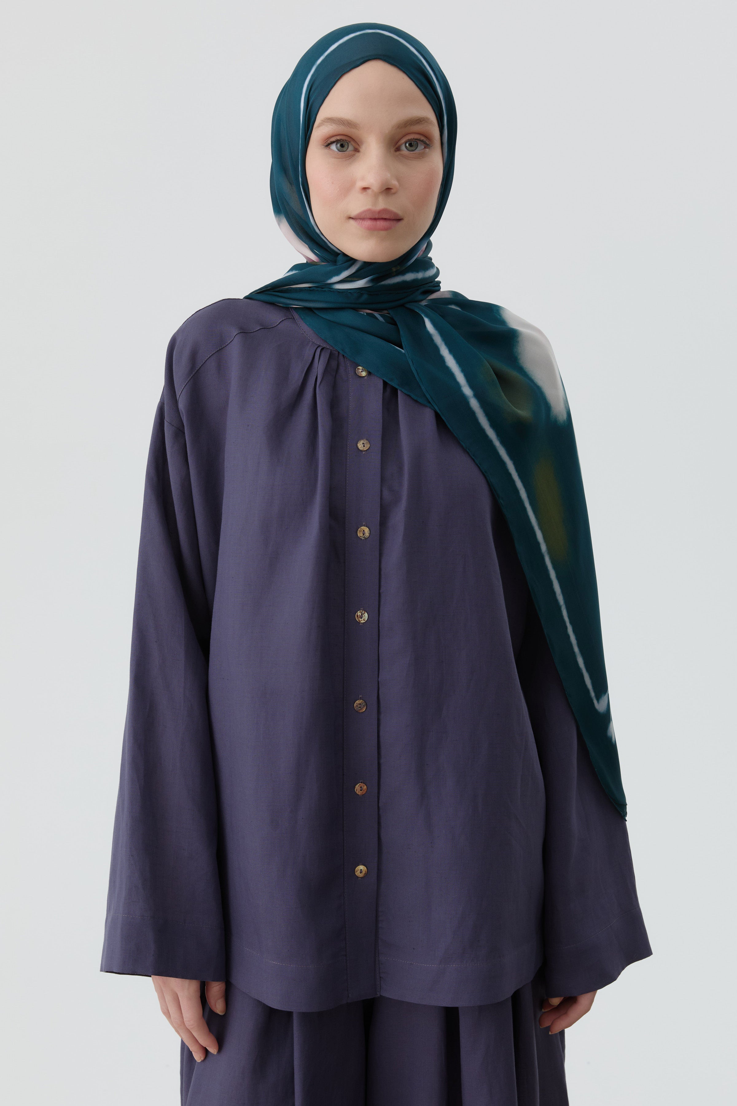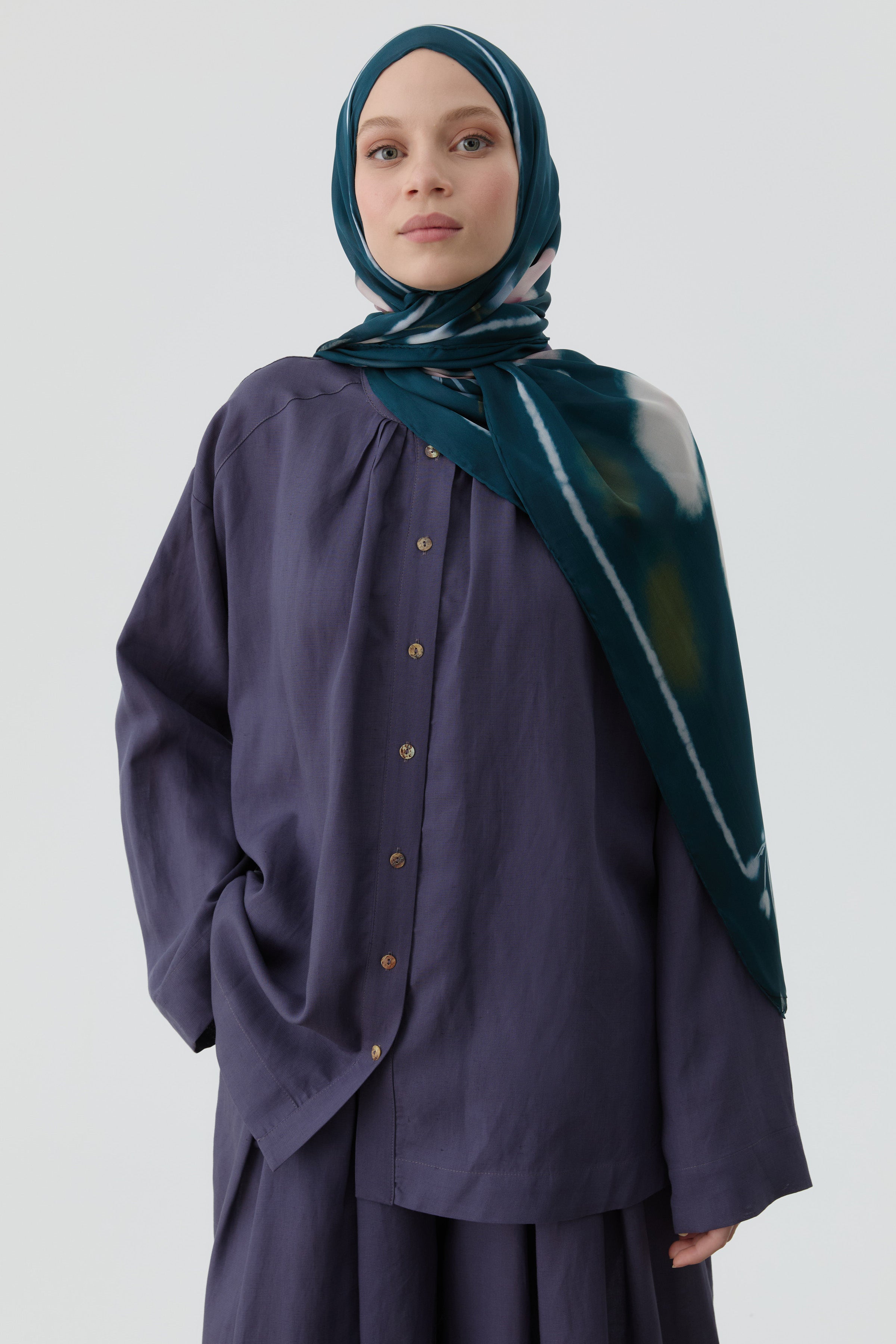 Klasik gömlek kesimini, yan yırtmaç detaylarıyla daha hareketli ve konforlu hale getiren bu tasarım; hem şık hem fonksiyonel.