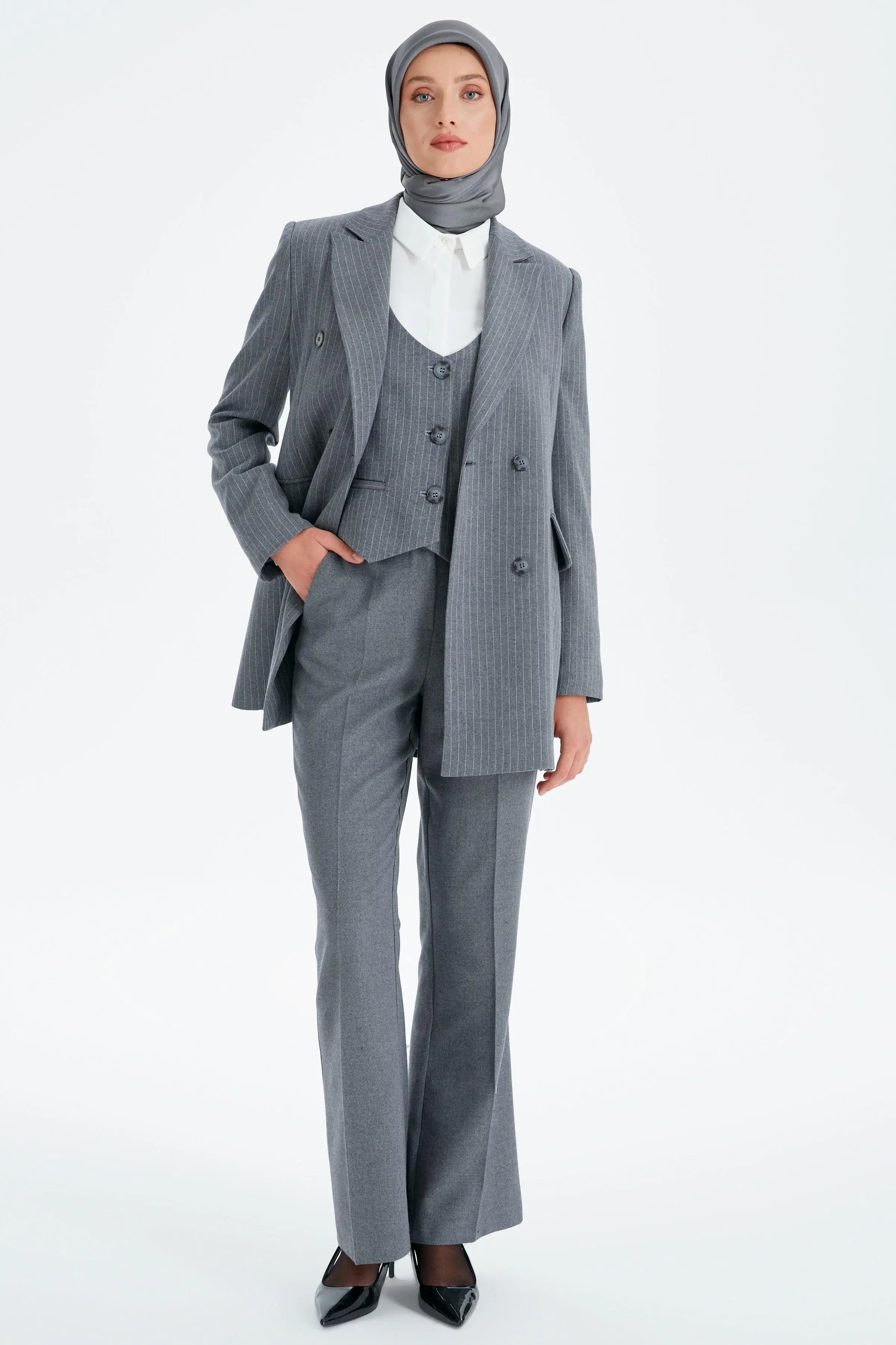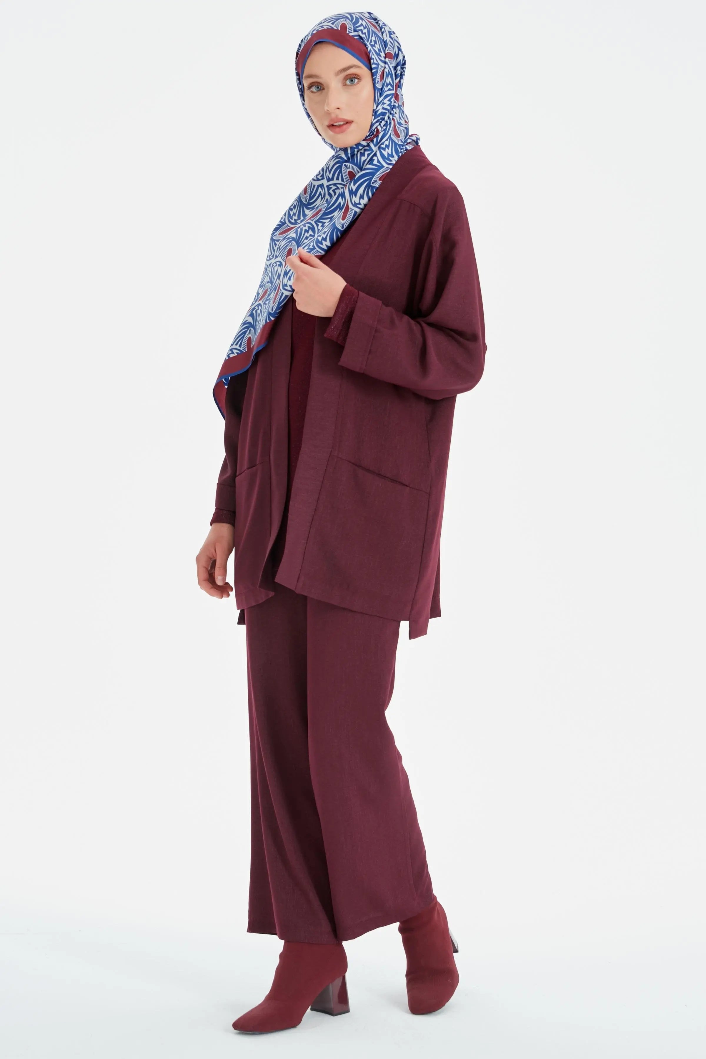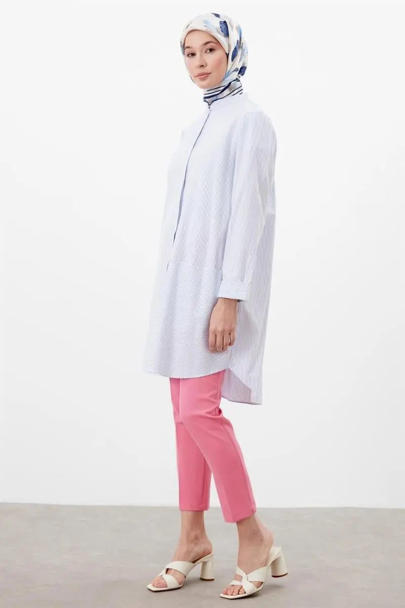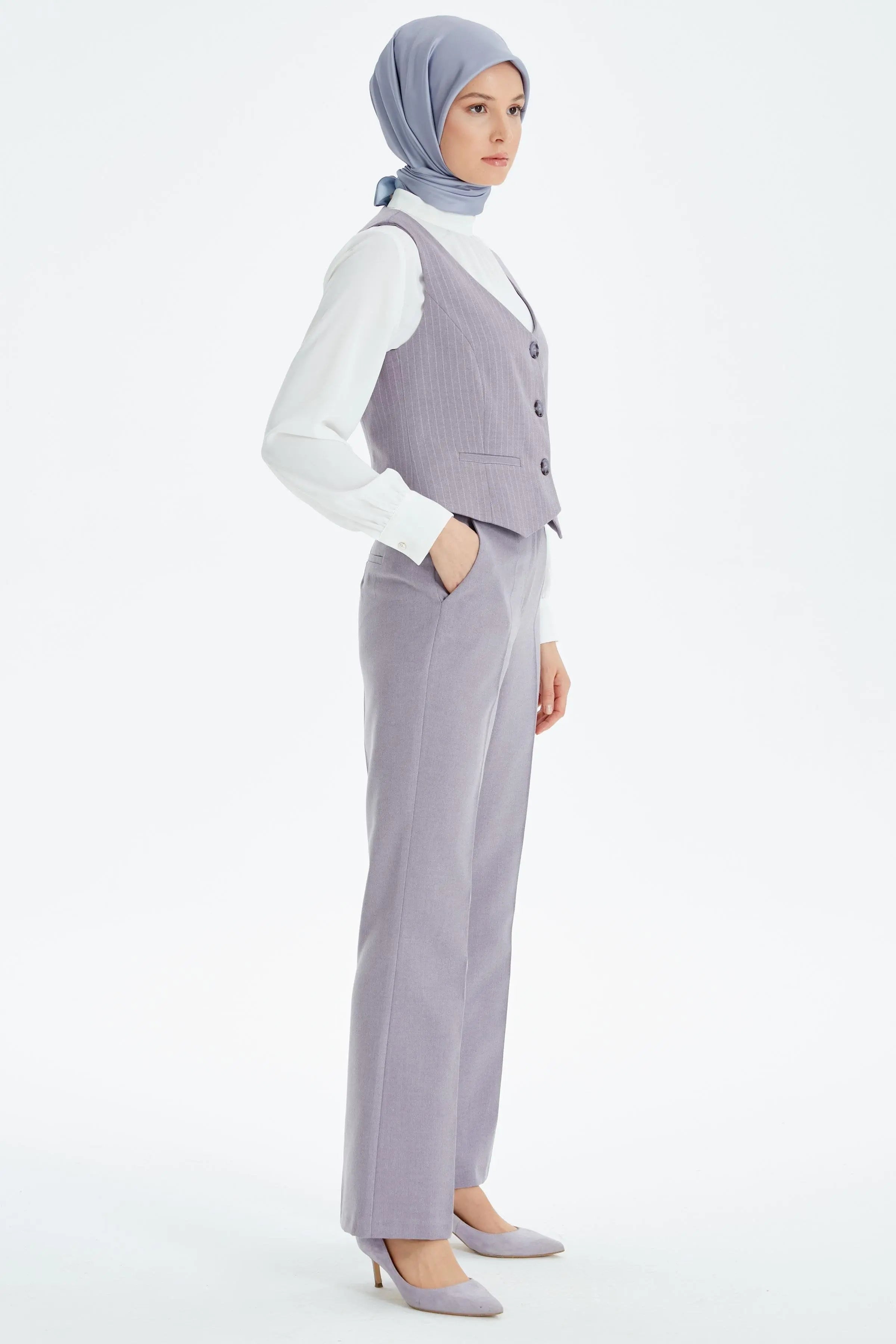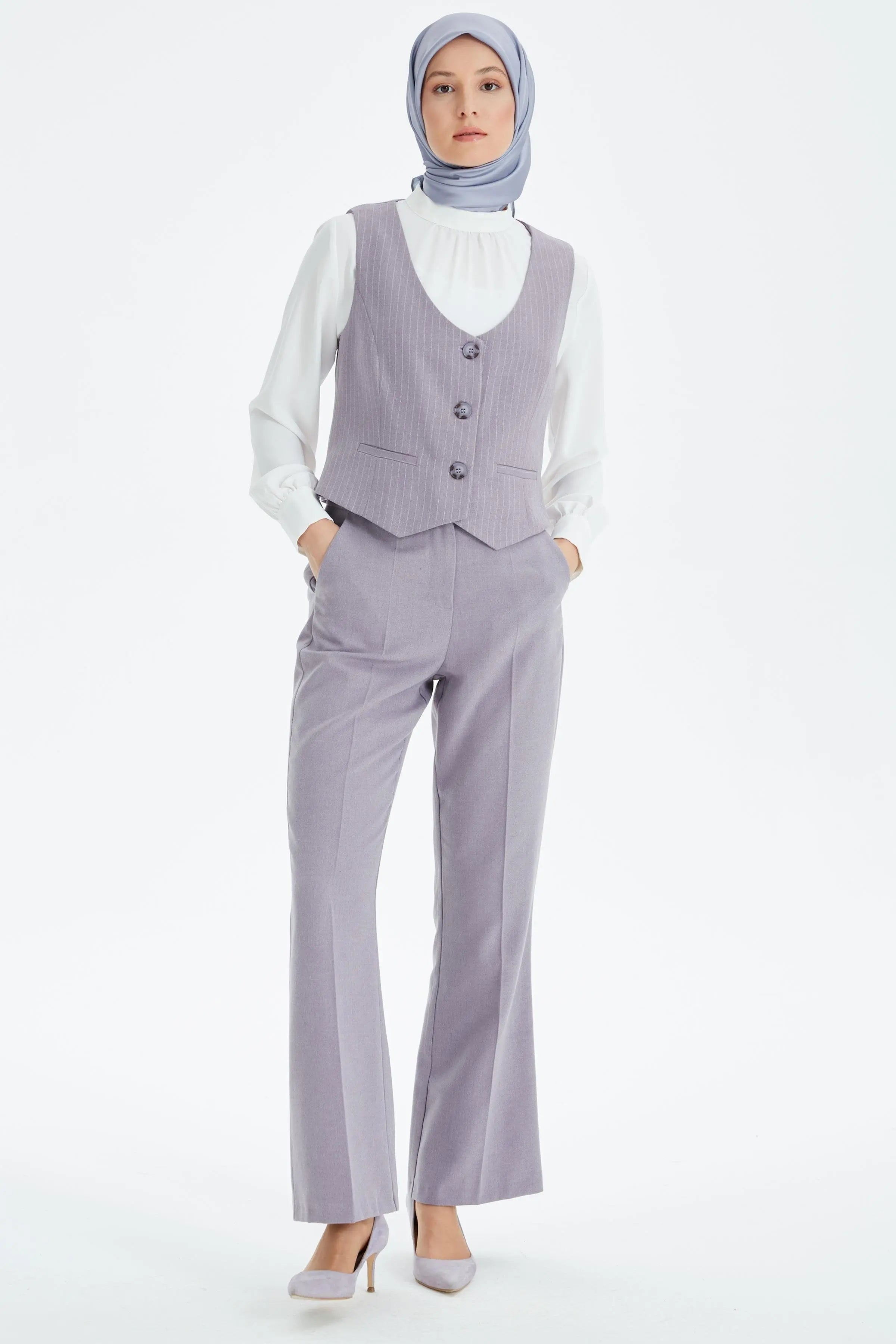 Kumaş kadın pantolon modelleri arasında yaygın olan slim fit kadın modellerini, blazer ceketlerle takım halinde de kullanabilirsiniz.