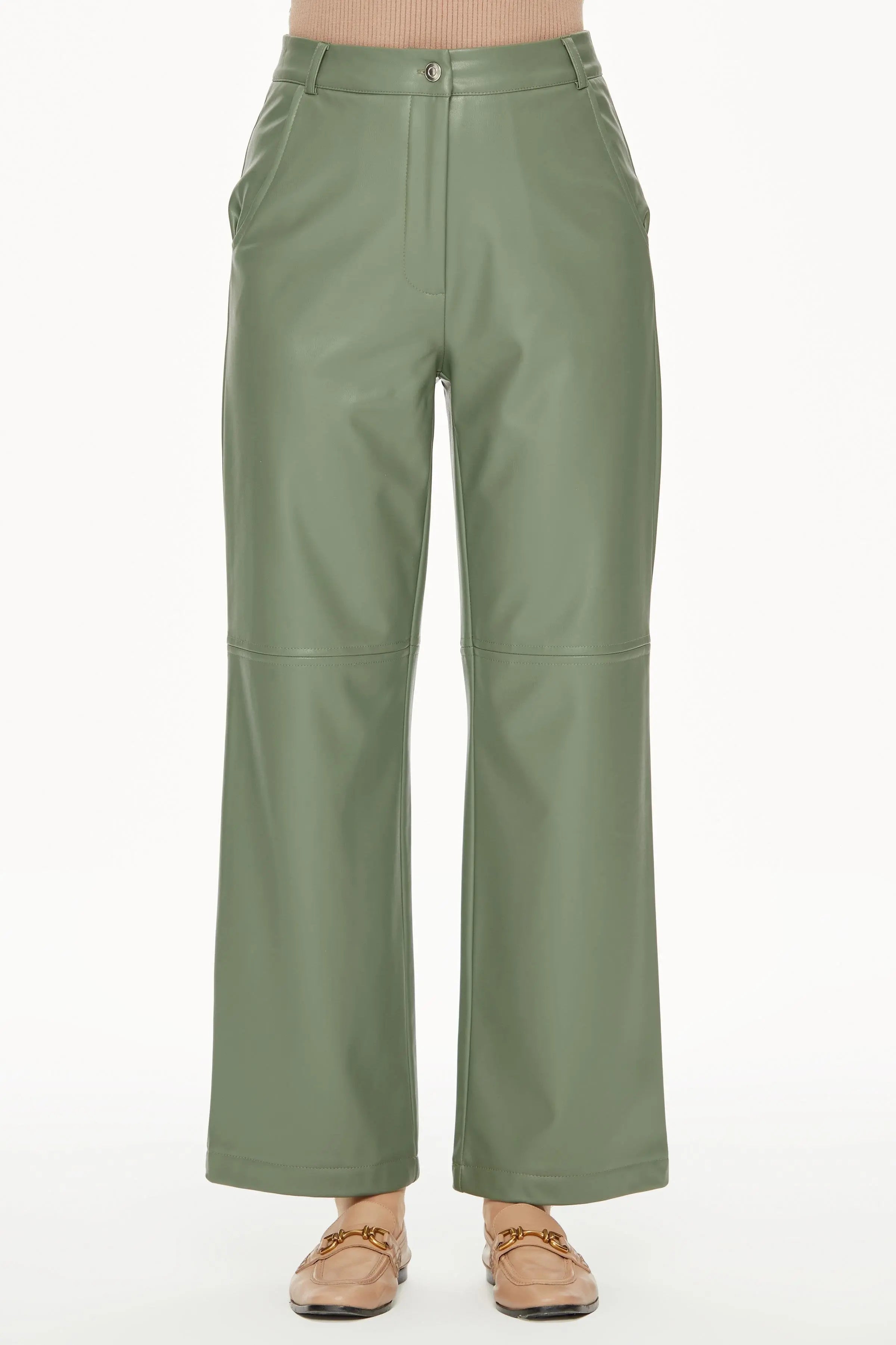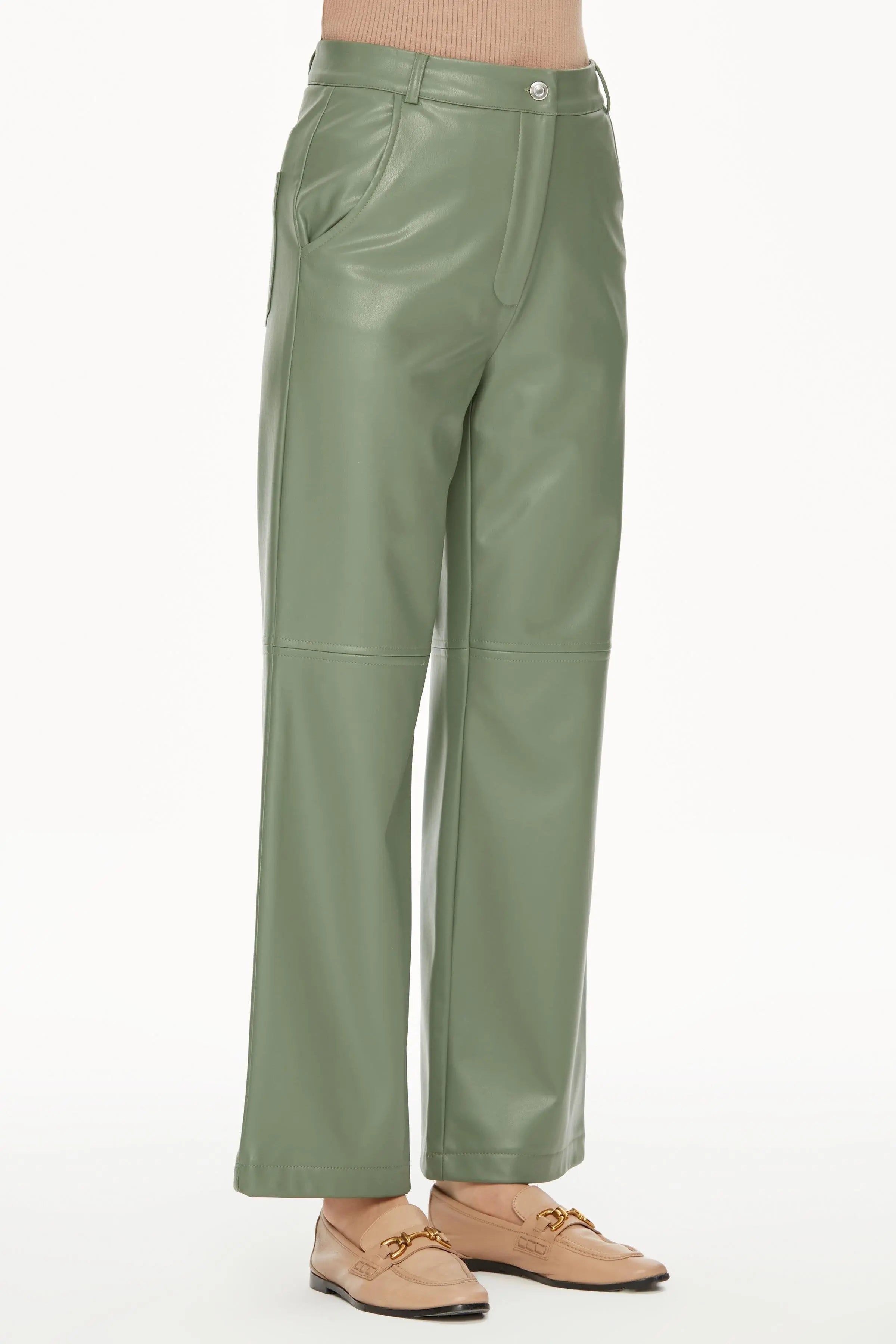 Skinny pantolonlardan palazzo ve culotte çeşitlere kadar derinin havalı ve şık etkisini her detayda hissedebileceğiniz kadın deri pantolon modellerini keşfedin.