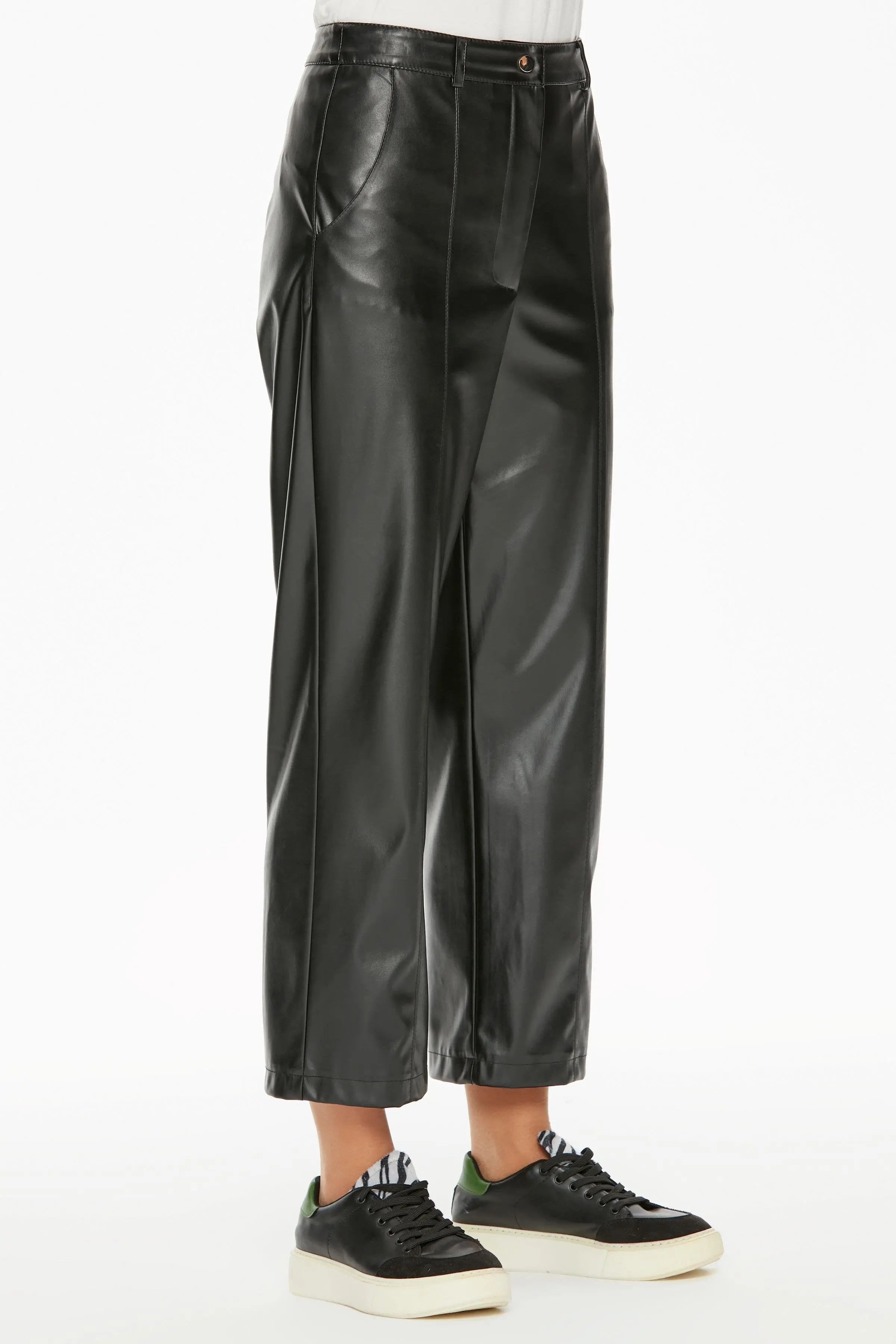 Her kesimde kullanılabilen asi ve havalı görünümüyle sokak modasının vazgeçilmezi, her gardıropta olması gereken deri kadın pantolon modelleri neredeyse her kesimde kullanılabilir.
