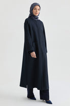 Duble kol tasarımıyla klasik pardesü formuna modern bir derinlik kazandıran bu parça, temiz çizgileriyle şehir stiline sofistike bir hava katar. Akıcı yapısı gün boyu konfor sunarken, yapılandırılmış silueti görünümü zarif bir şekilde tamamlar.