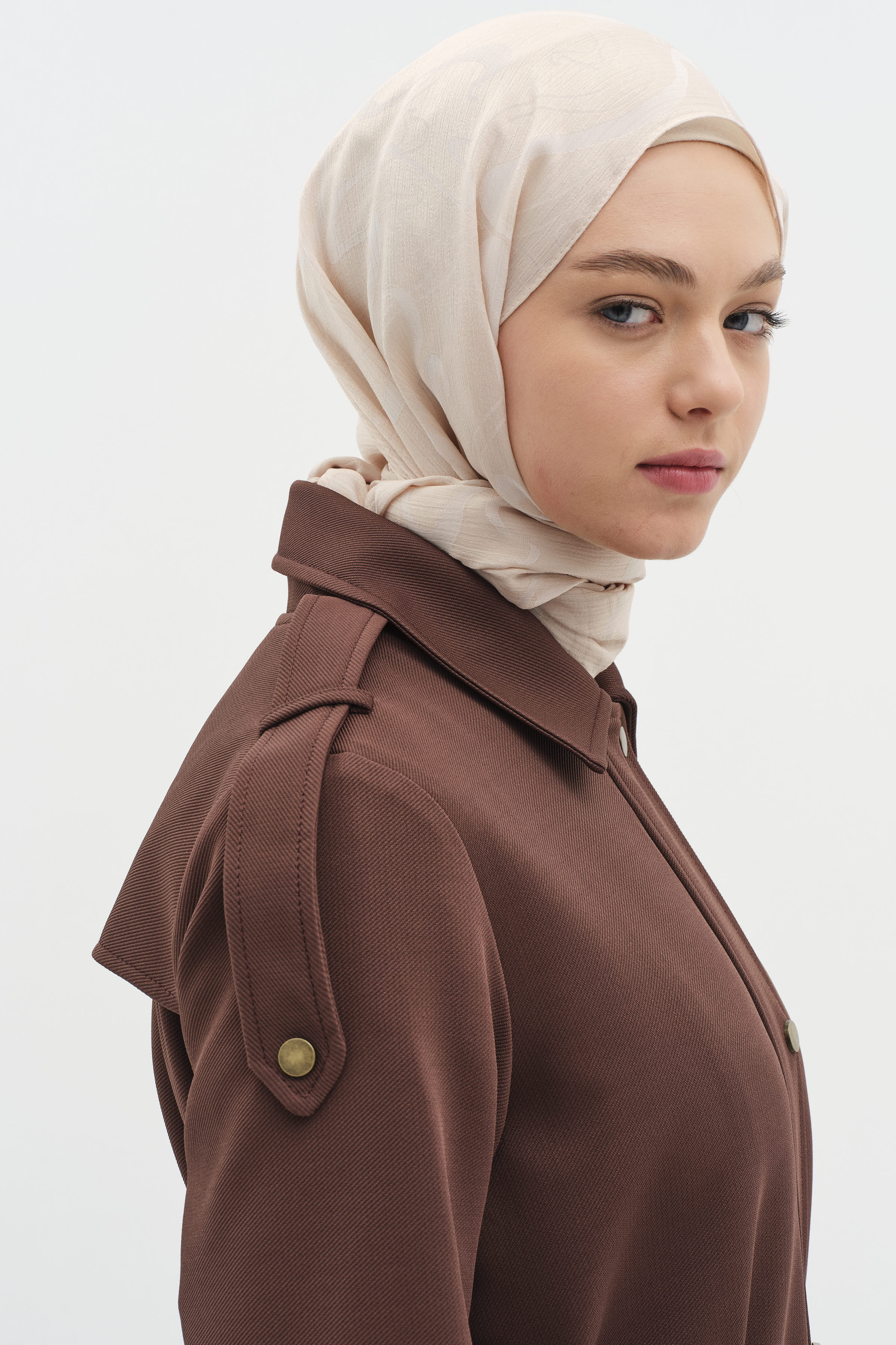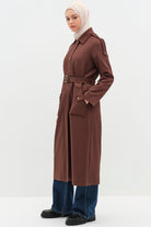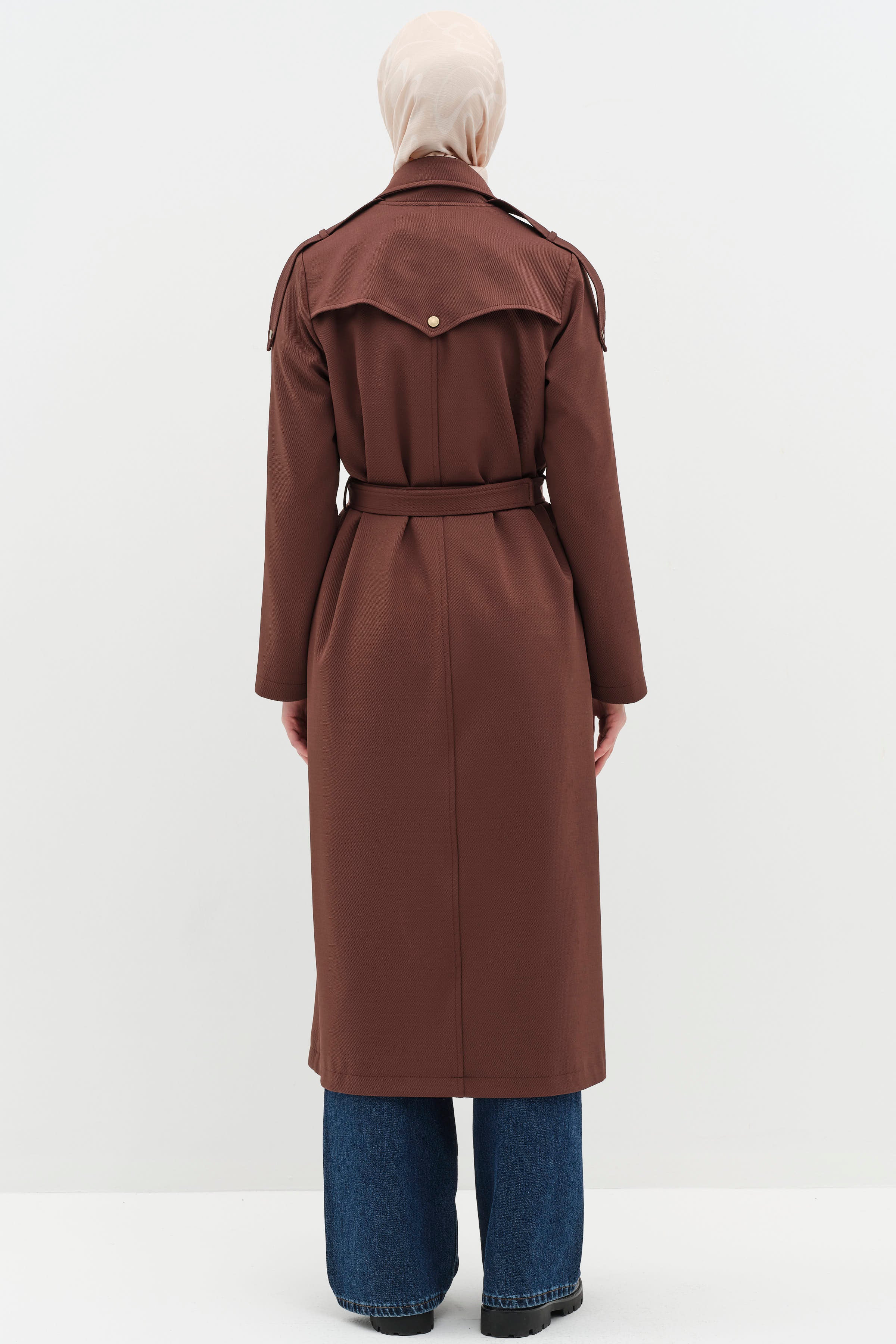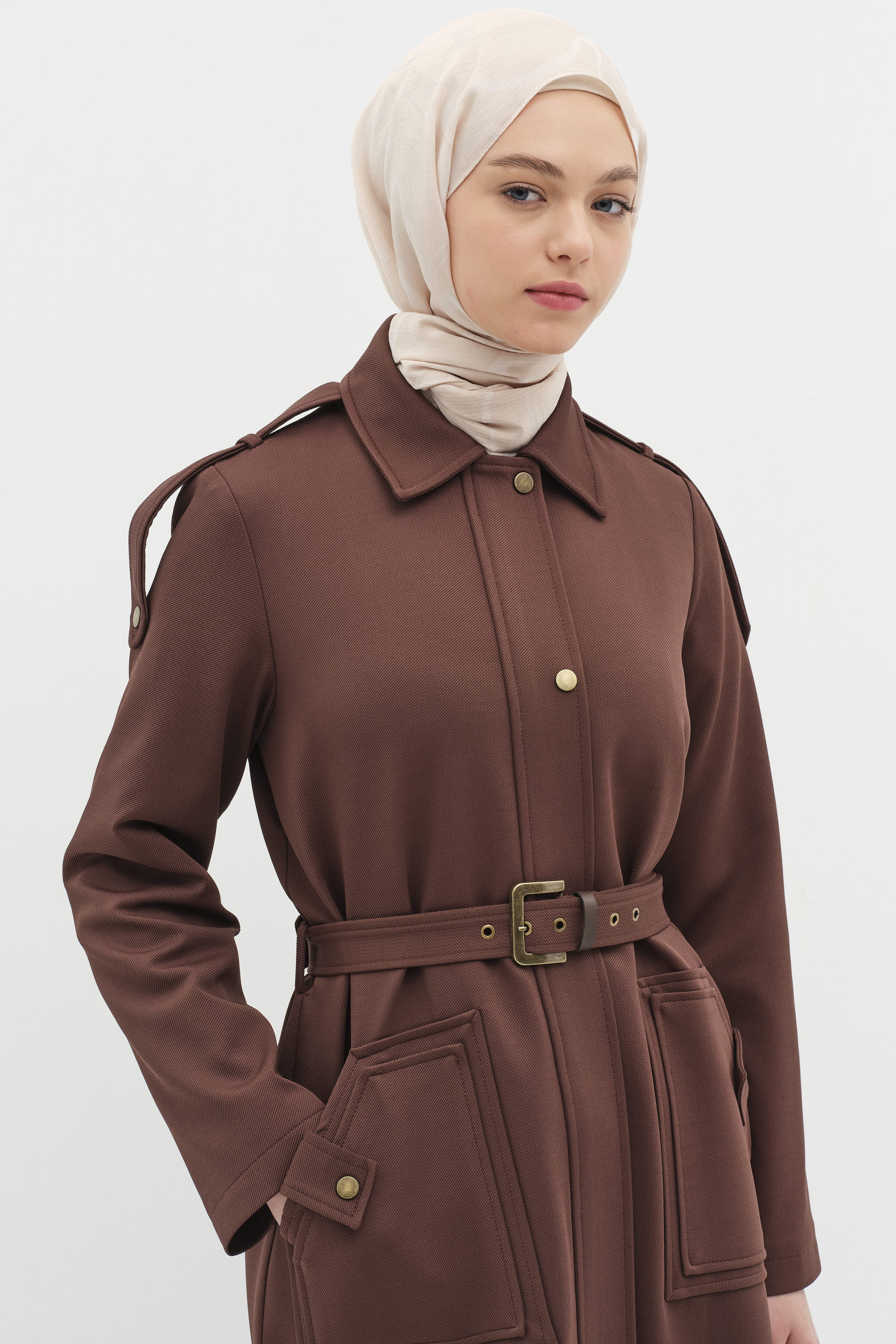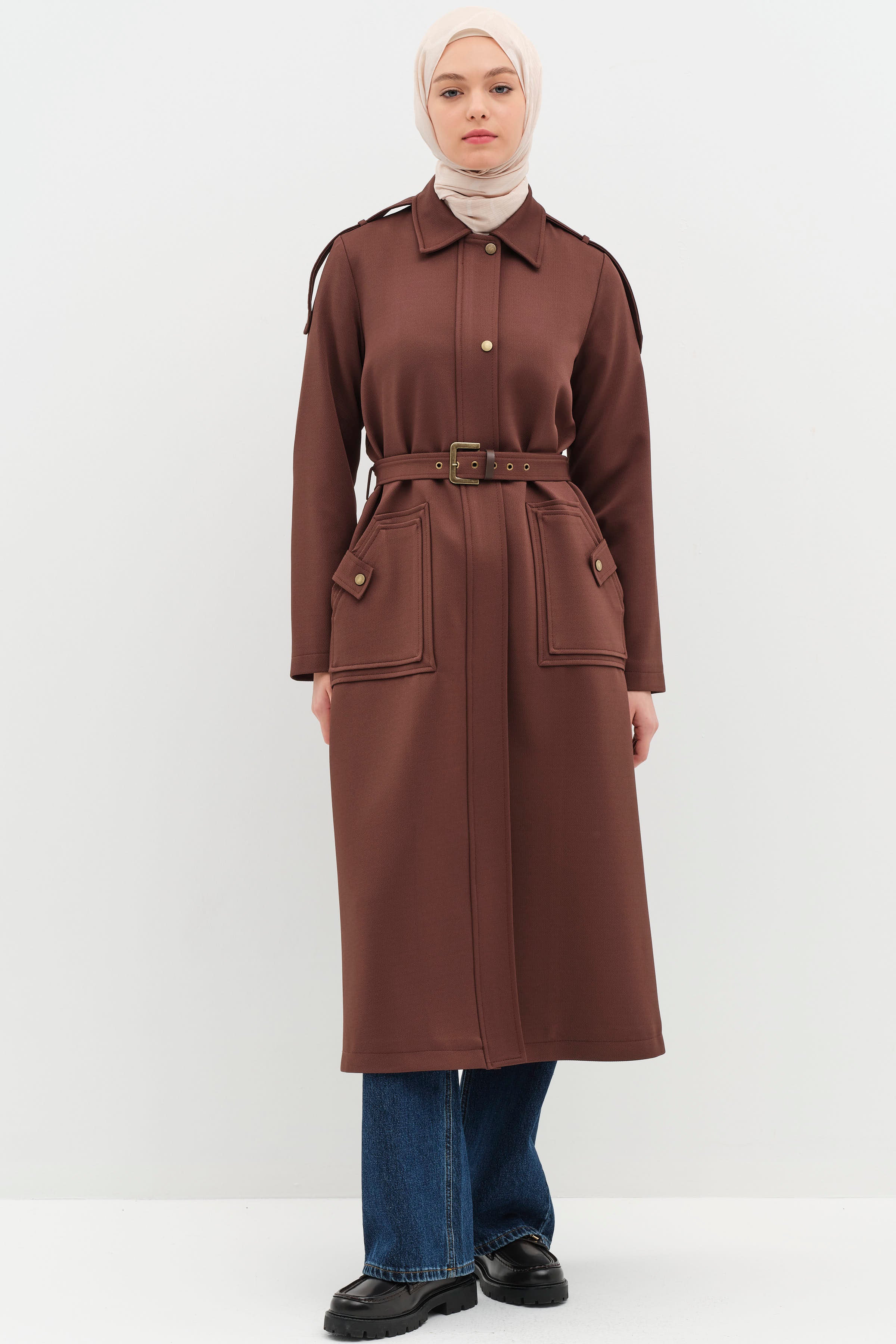 Omuz Bantlı Cep Detaylı Pardesü - Acı Kahve