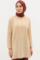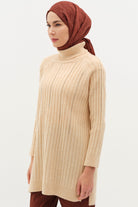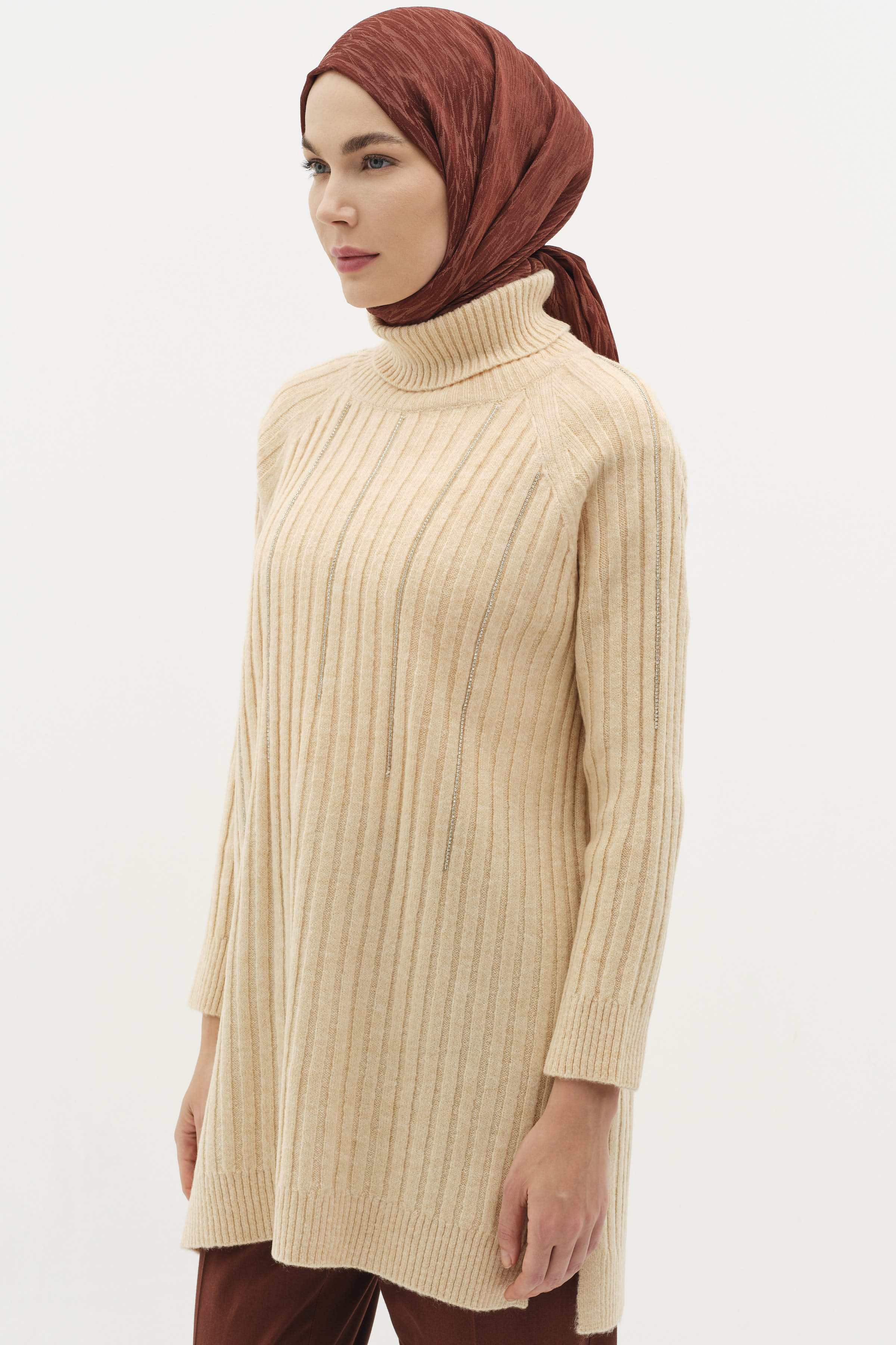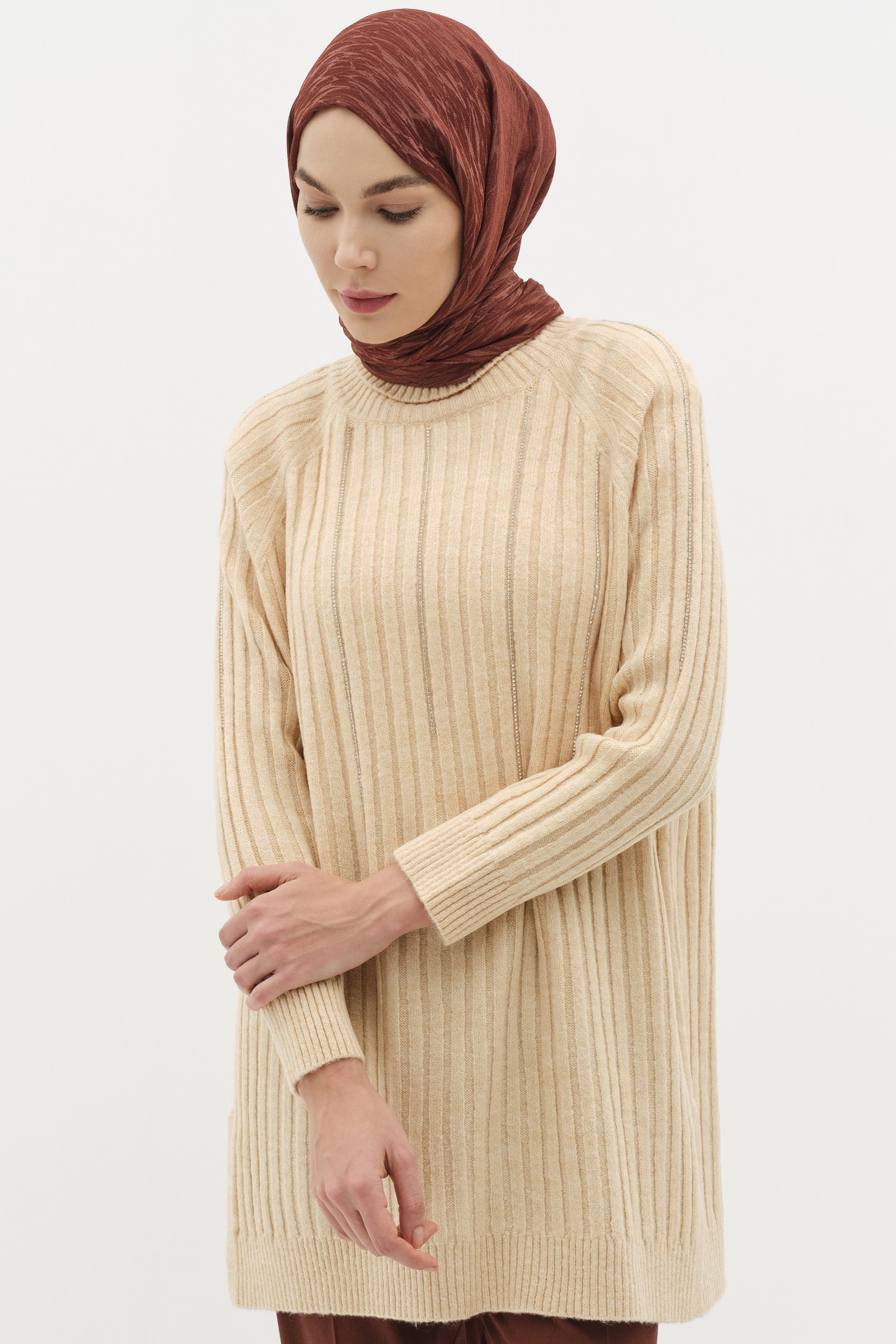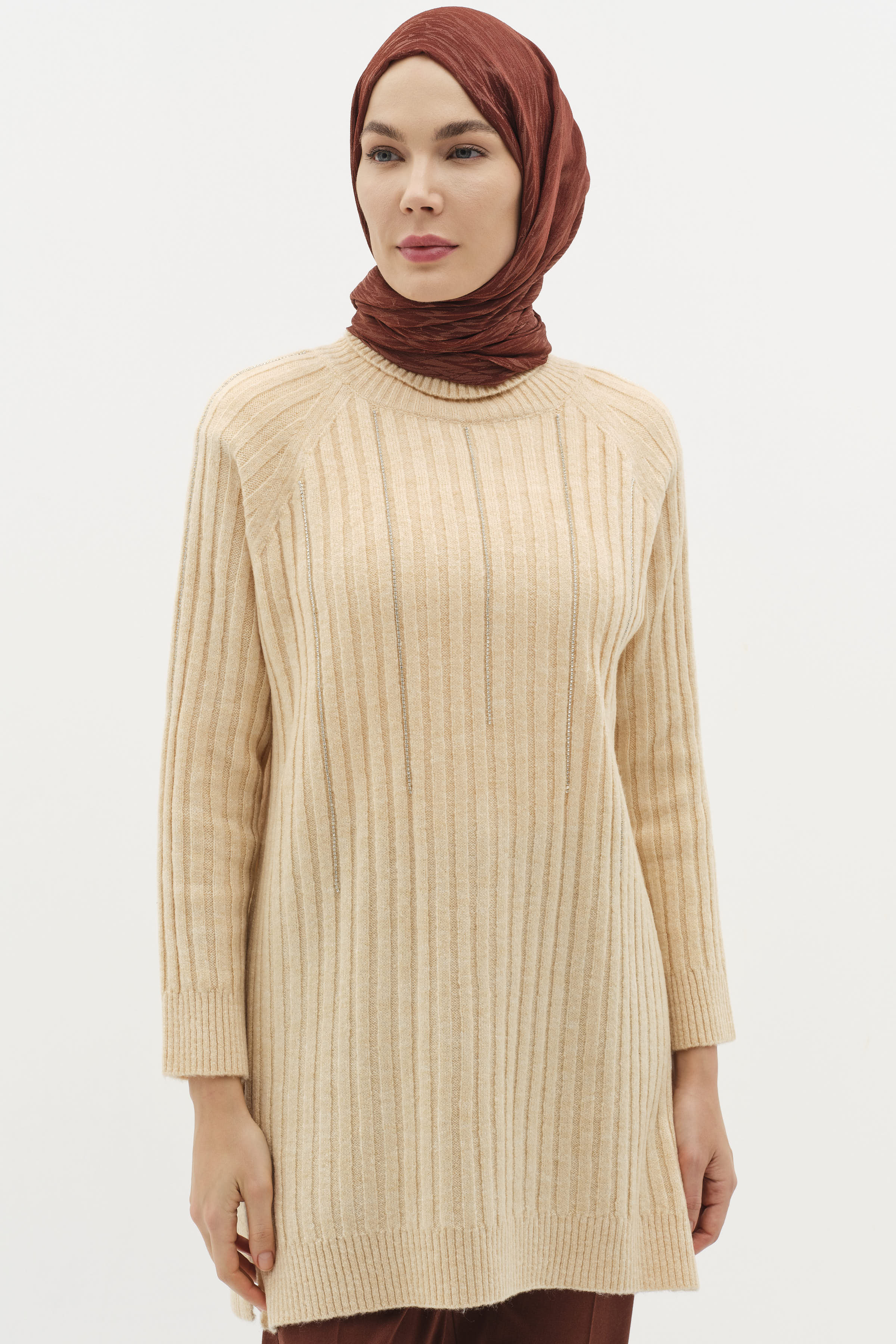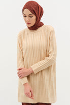 Boğazlı Reglan Kol Triko Kazak - Bej