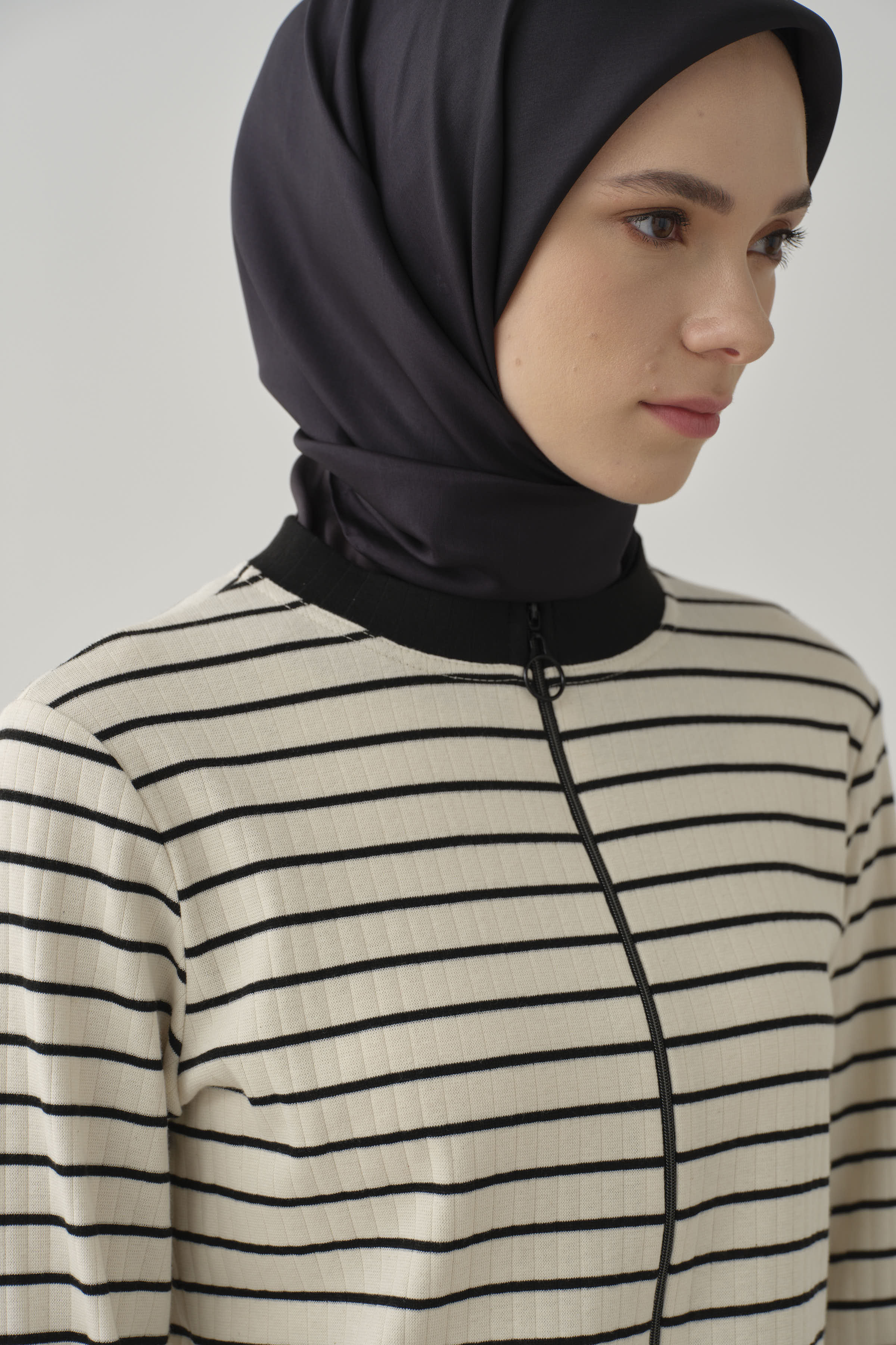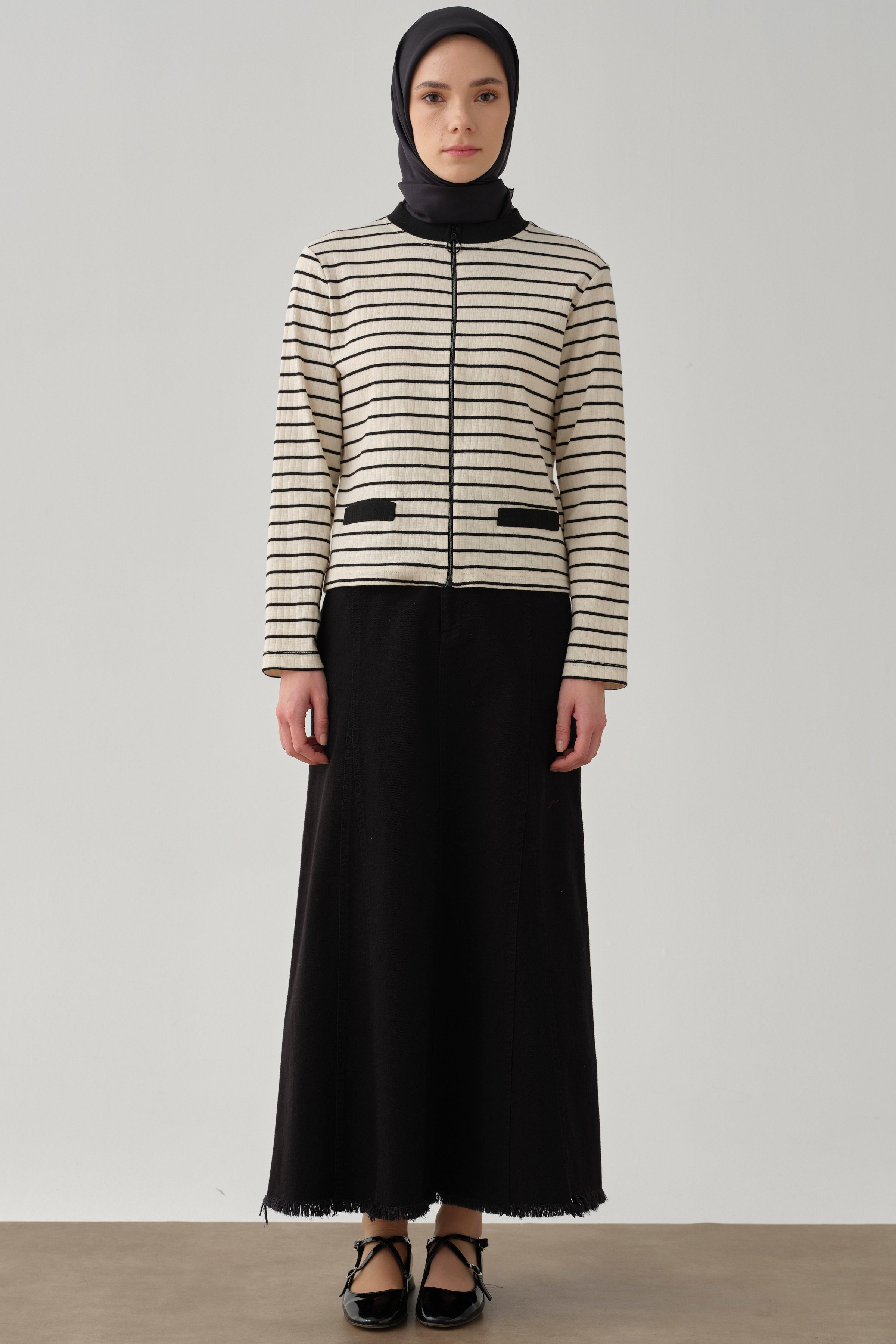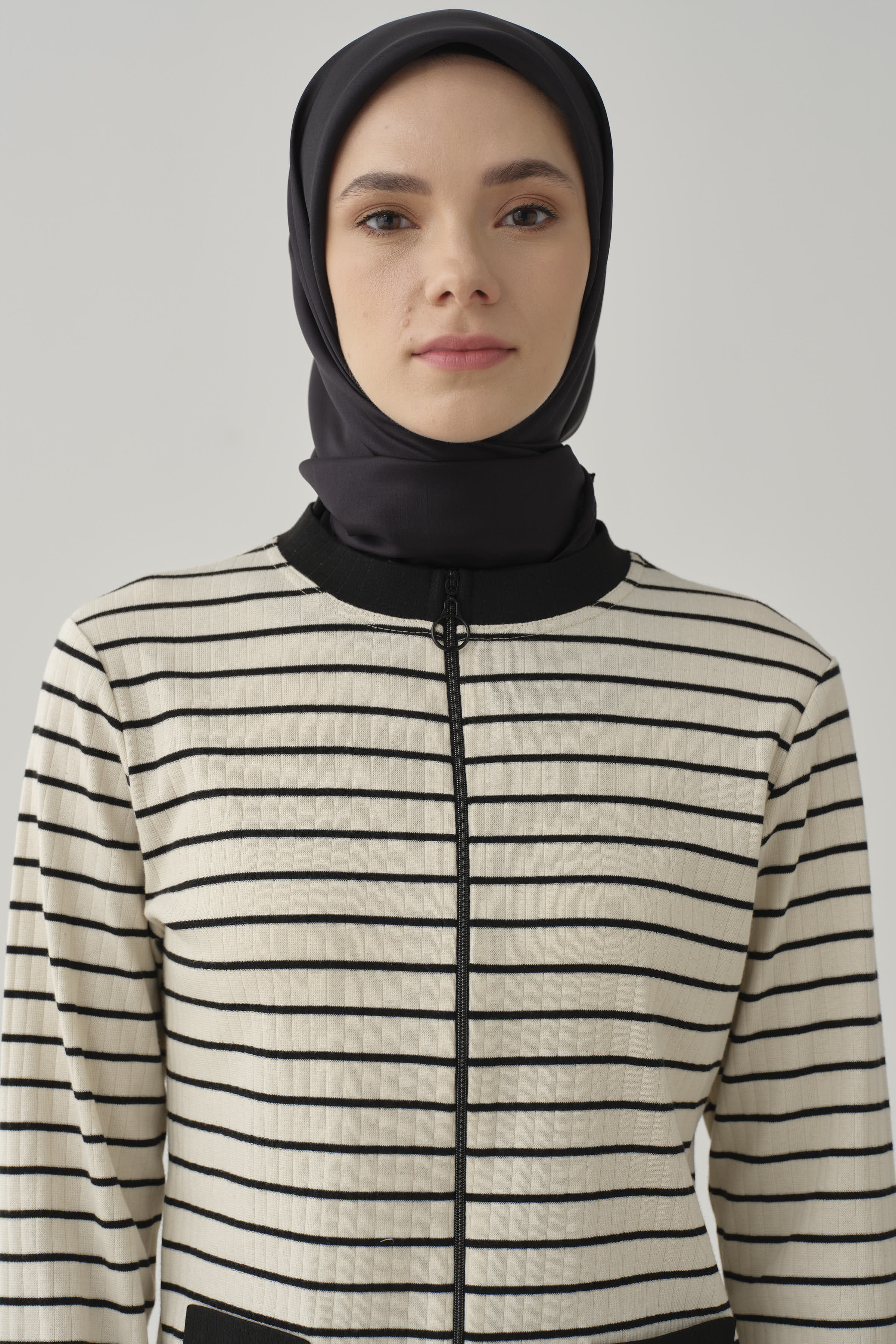 Şıklığı ve rahatlığı bir arada sunan önü fermuarlı çizgili hırka, modern çizgileriyle stilinize dinamizm katarken, fermuar detayı ile fonksiyonel bir kullanım sağlar.